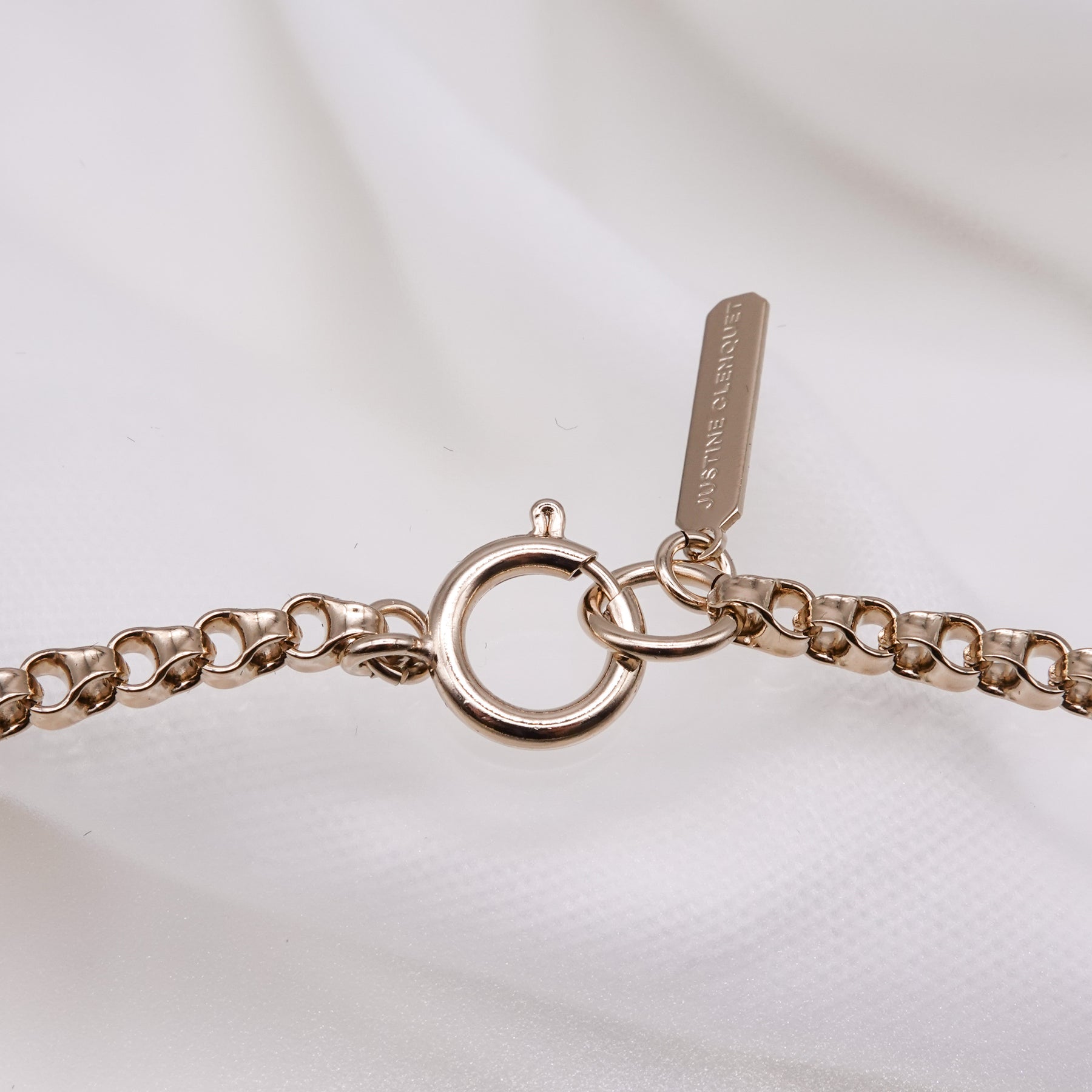 Justine Clenquet(ジュスティーヌ・クランケ)はヴィンテージ&ロックをコンセプトに90年代の優雅さとアンダーグラウンドカルチャーをミックスさせた、フランスのブランド。アイテムは全てパリのアトリエで製作されている。 どんなファッションにも馴染みやすくかつアクセントになってくれるアイテムが多い。メタルに関しては真鍮にパラジウムや24金をコーティングしたものだが、全てニッケルフリーで肌への負担も配慮されている。