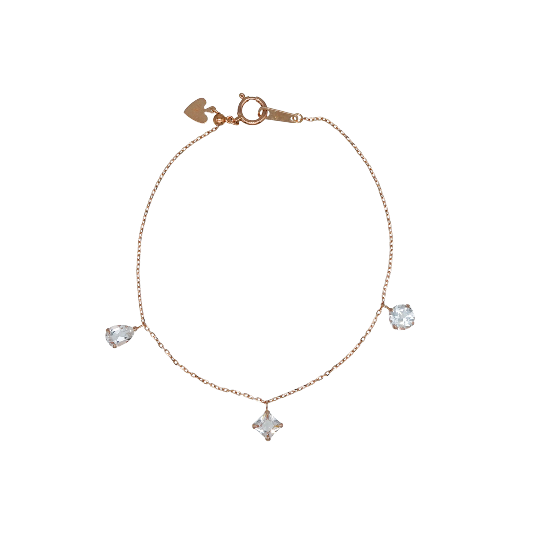 それぞれの石を星に見立て、等間隔に配置したブレスレット。 夜空に浮かぶ星のように決して均一ではなく、個々に個性を放っている様子をイメージし、様々なカラー、様々な形の石をセレクト。こちらは全てホワイトトパーズのタイプです。チェーンは繊細ながらもそれを取り巻く星屑のように、それぞれが主張して手首で華やかに輝きます。 長さ調節のできるアジャスターつき。
