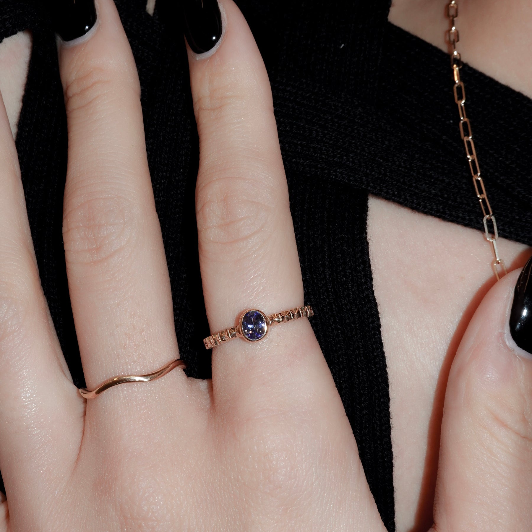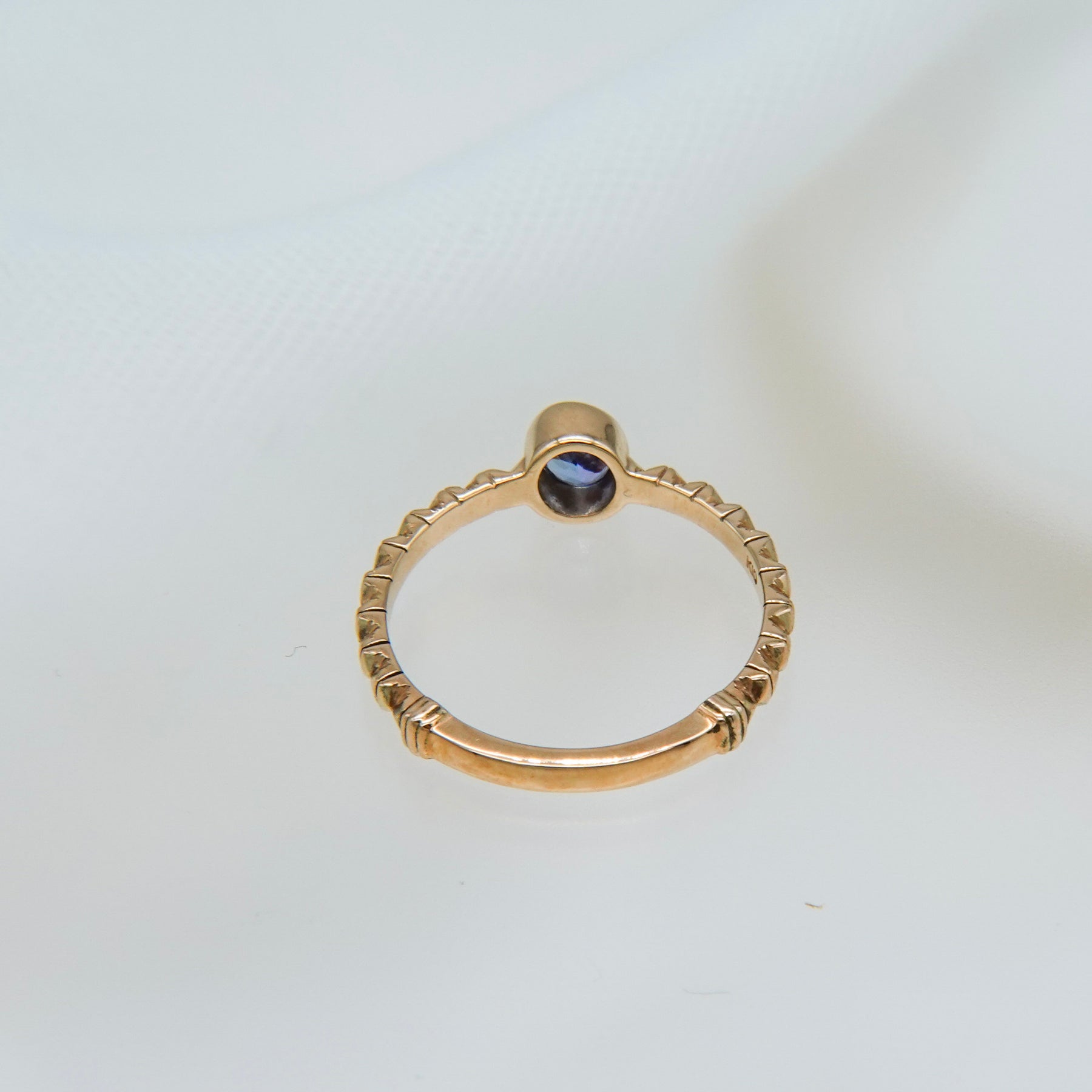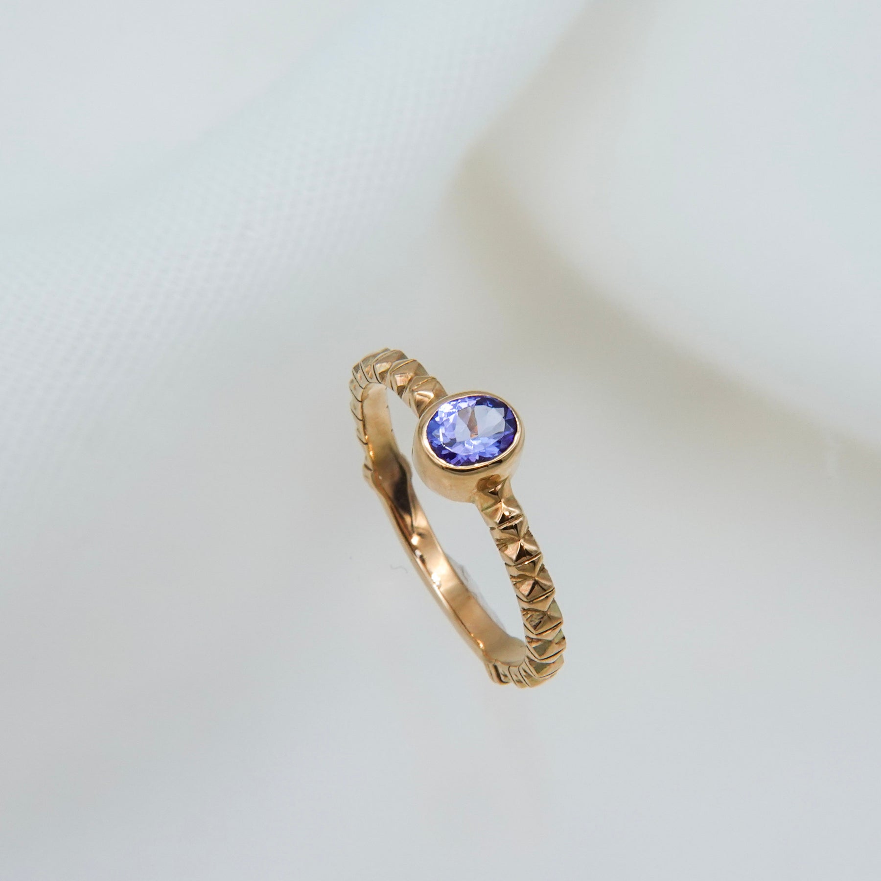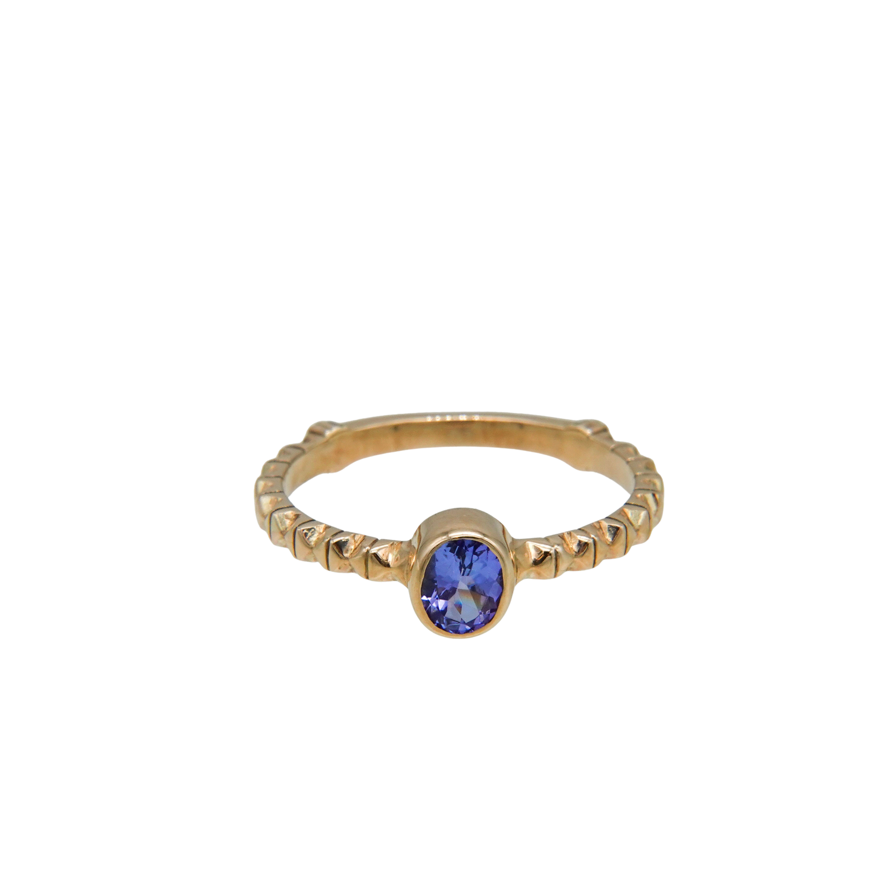イタリア・フィレンツェの伝統技法、フィレンツェ彫りを施したタンザナイトのリング。 オーバルカットのパープルがかった深みのあるブルーのタンザナイト。 アームには全ての仕上げ後に手彫りによる彫りが施されており、全体に石が入っている様な煌めきがあります。 8号〜16号までサイズ直しが可能です(納期約1ヶ月)。ご希望の場合はお問い合わせください。