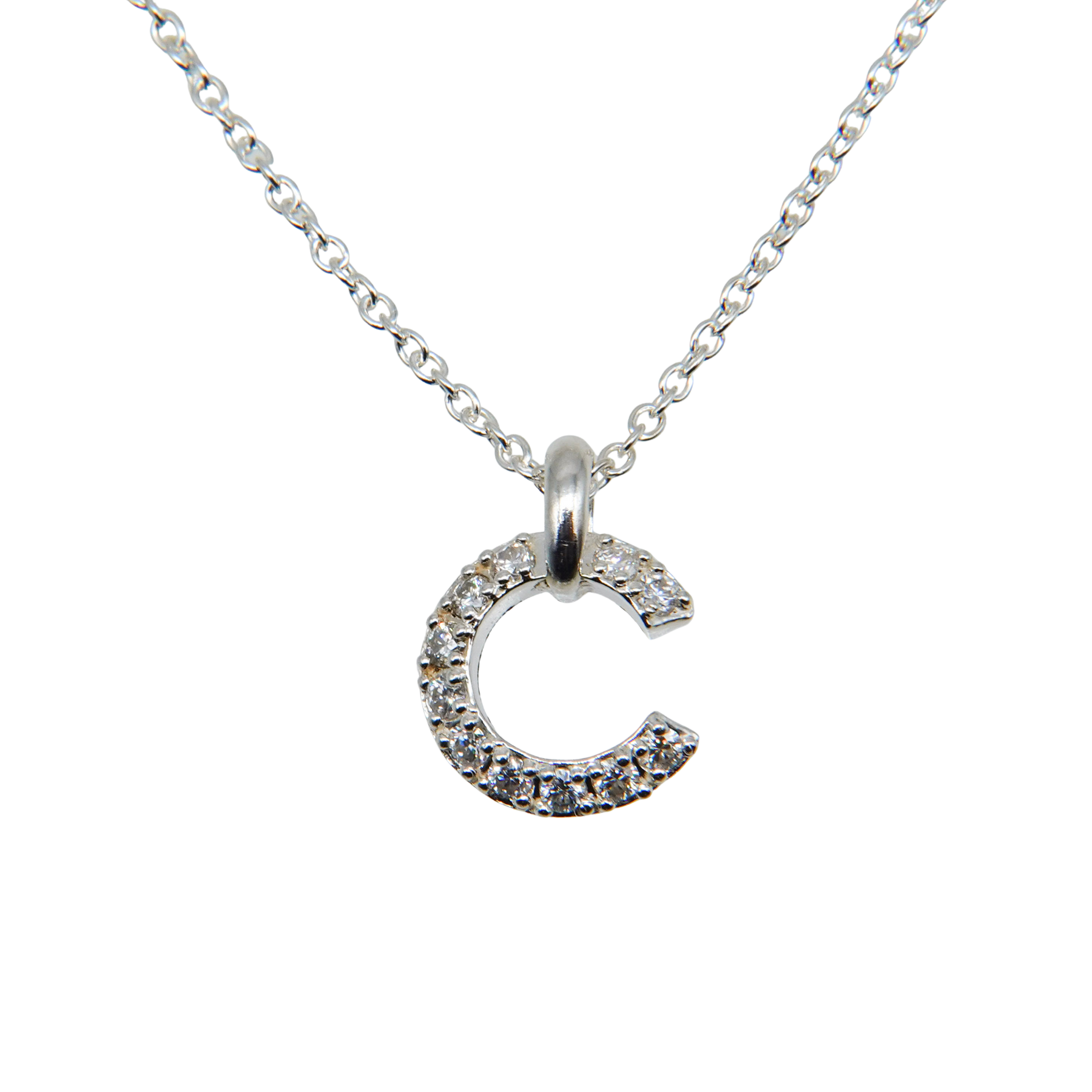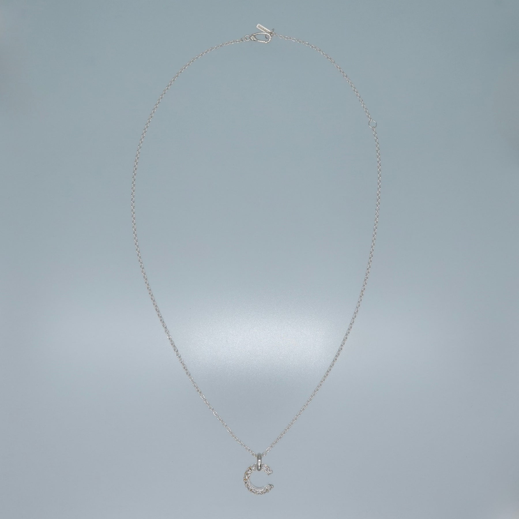 Cの字のモチーフにモアサナイトが敷き詰められたネックレス。38.5cm、45.5cmの2パターンに長さを調整できます。