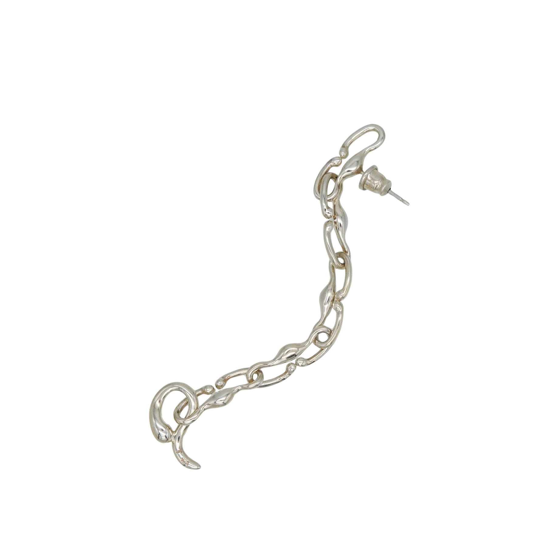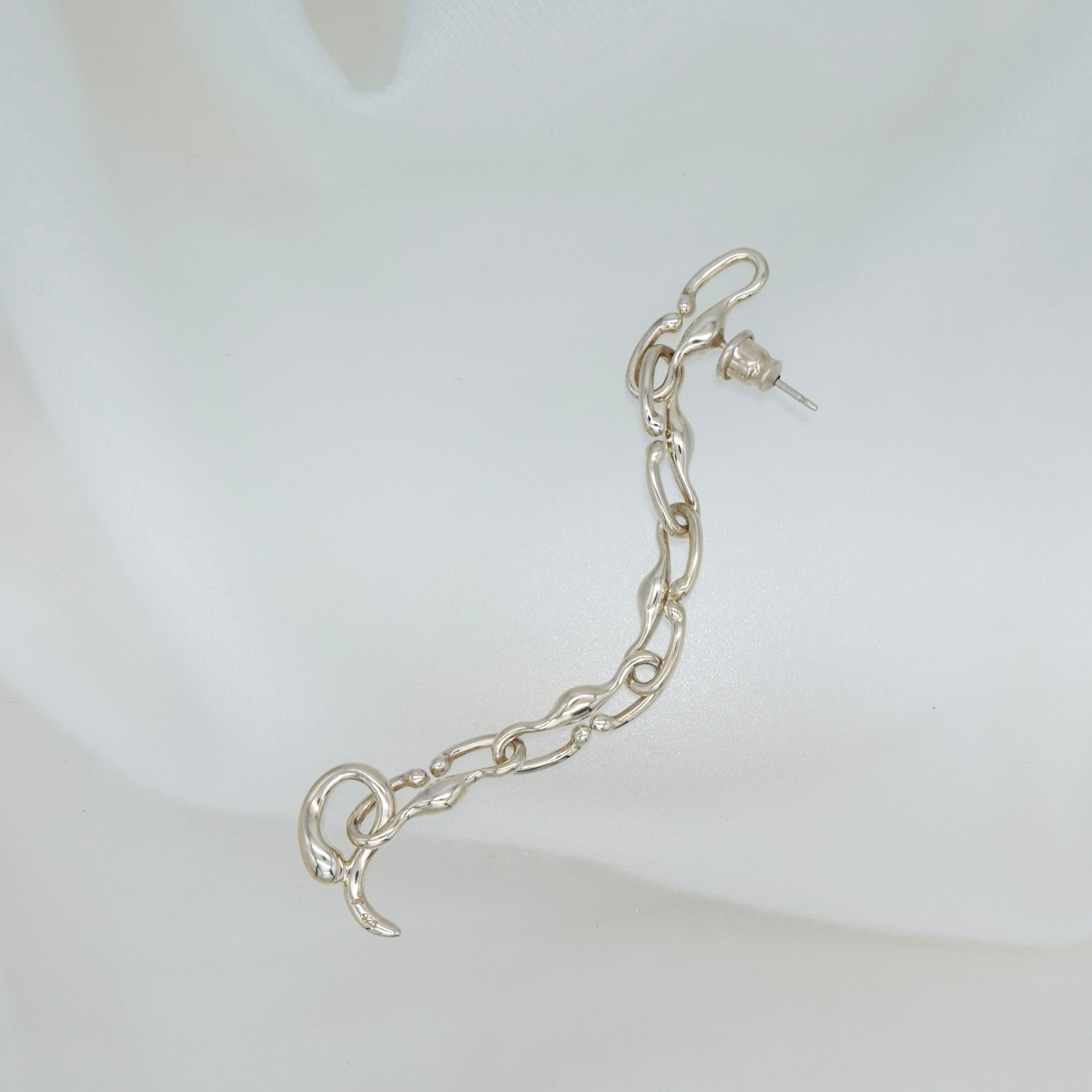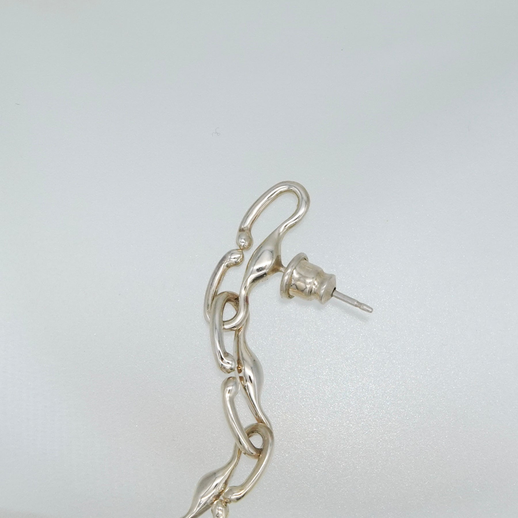 有機的なパーツが連なり、縦方向へ流れるラインが印象的なドロップピアスです。