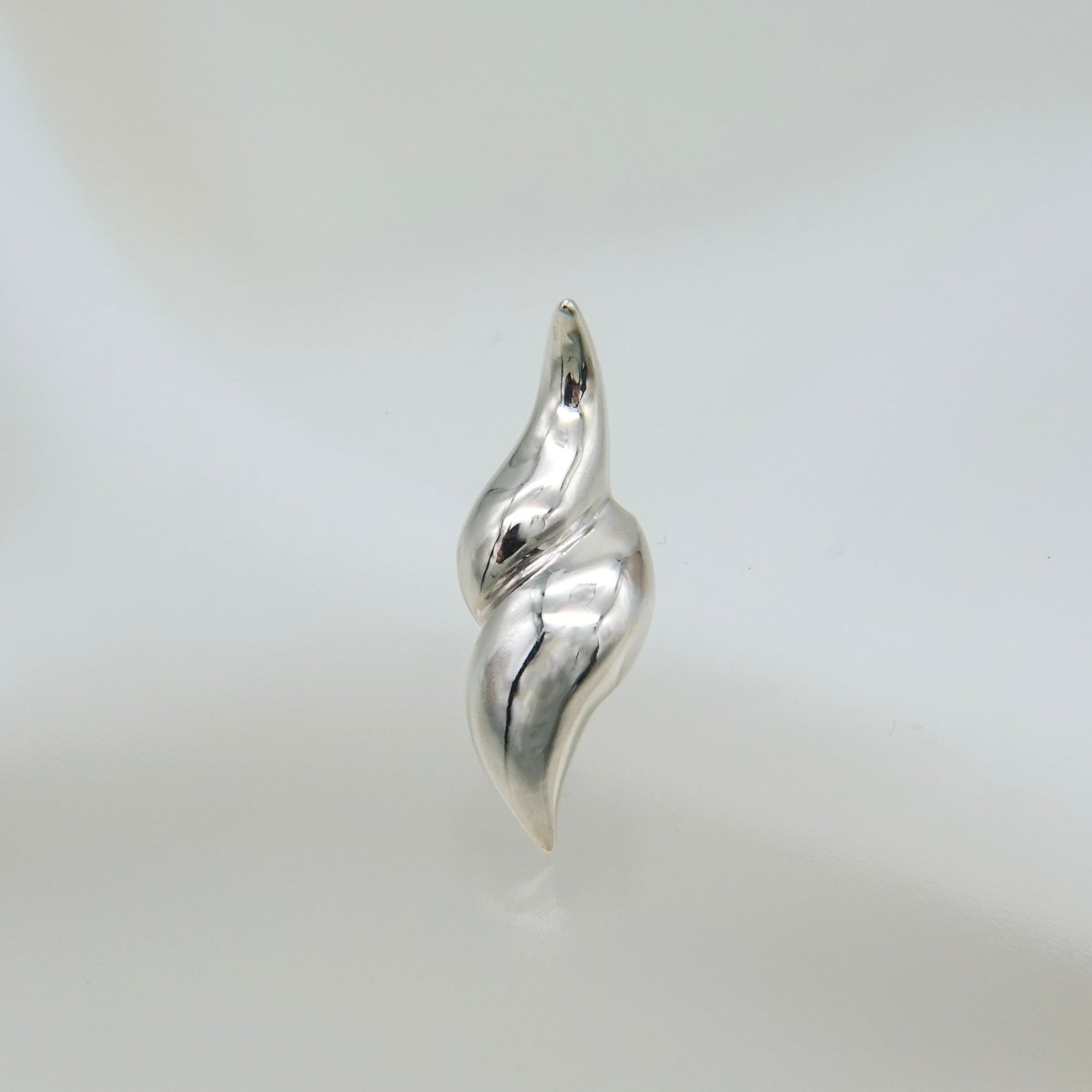 軸を中心にひねりを加えたような立体フォルムが印象的なピアスです。