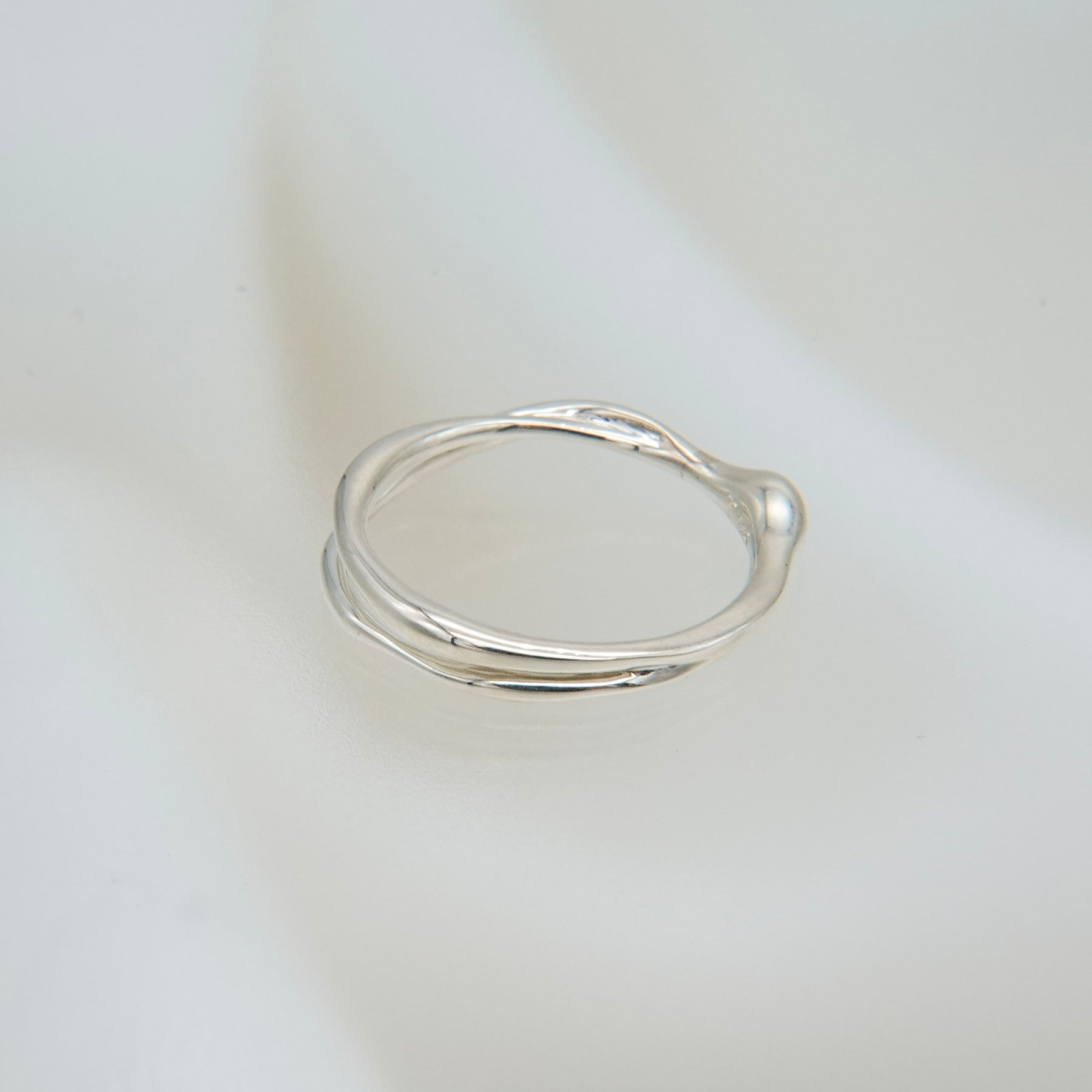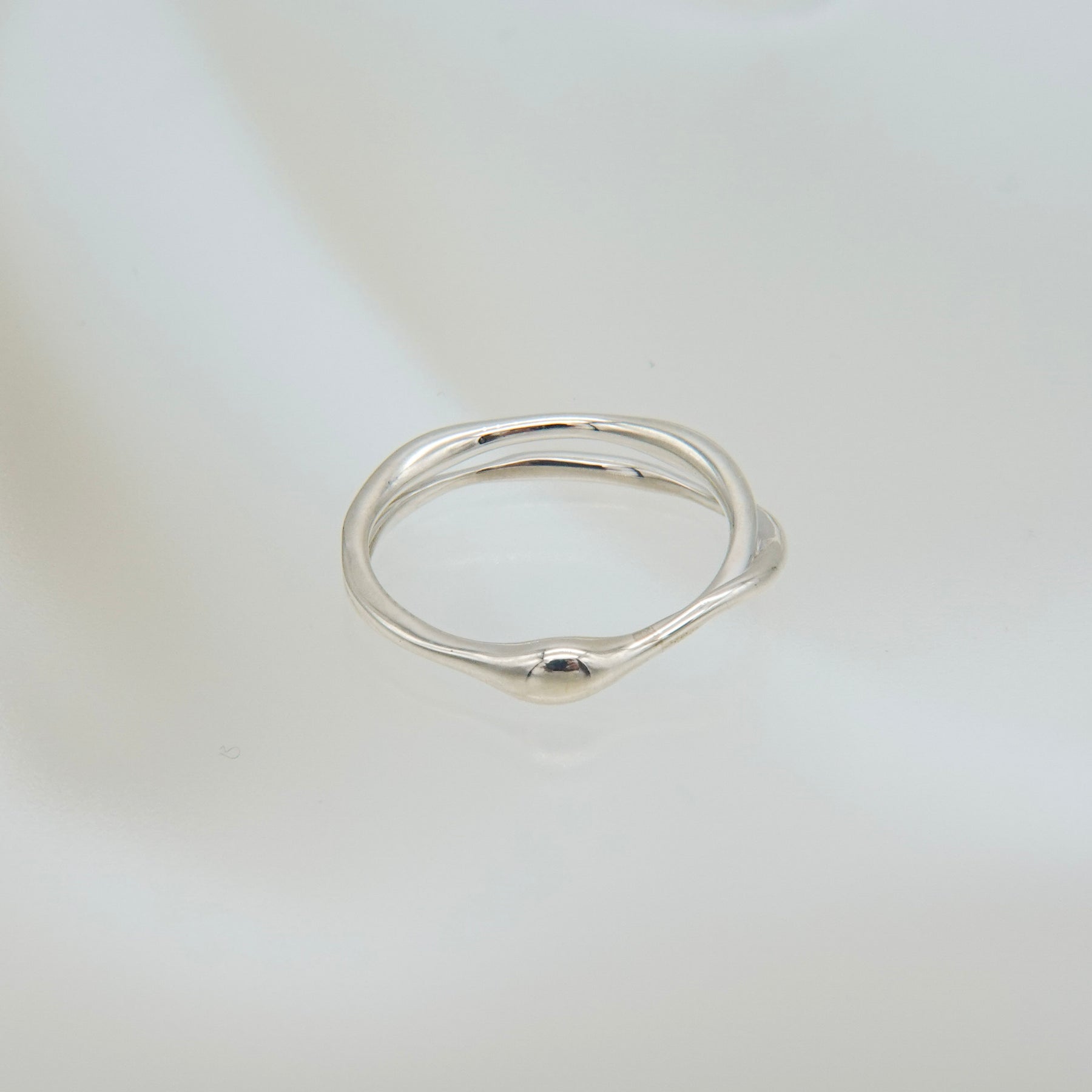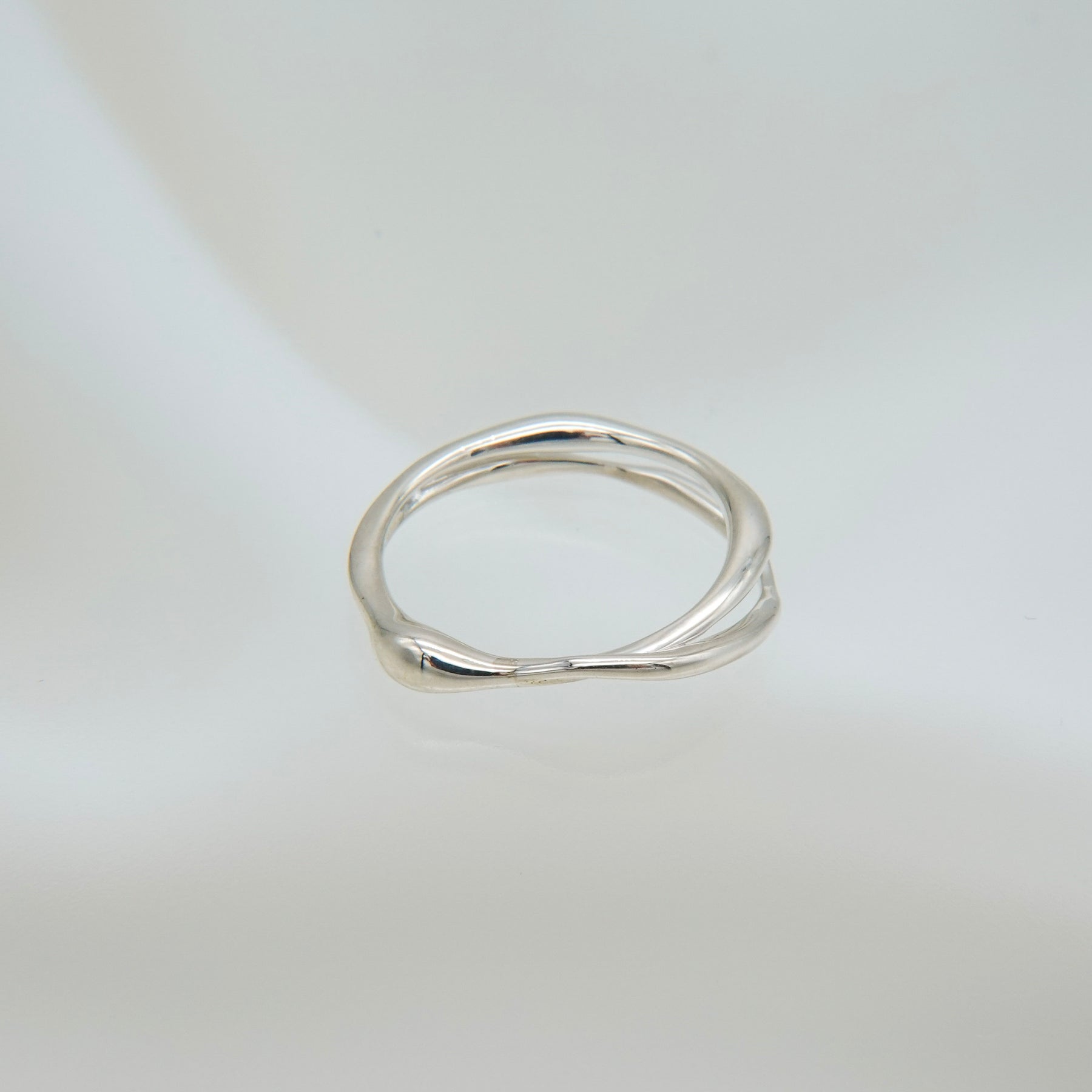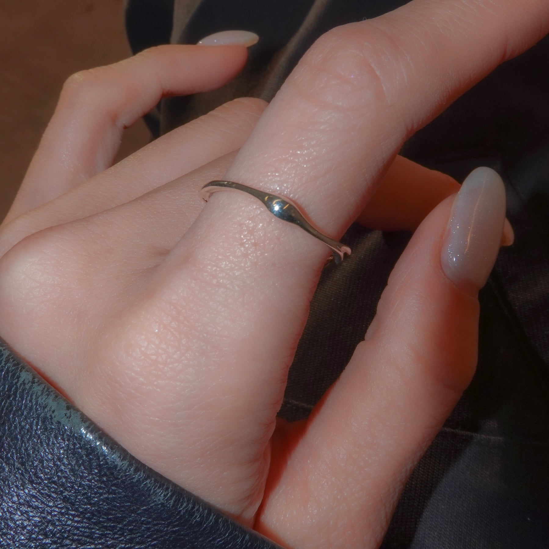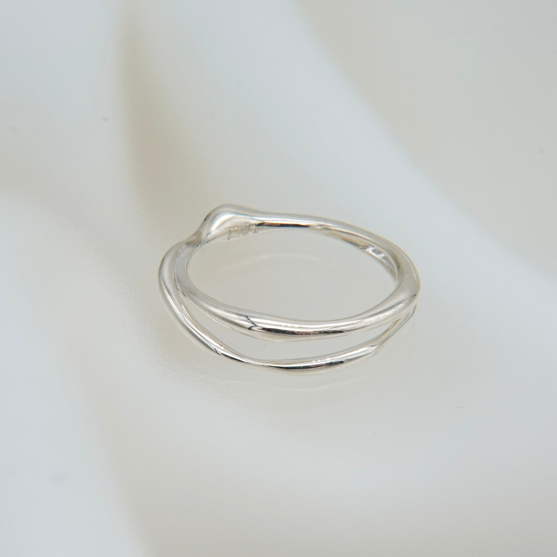 二本のラインを一体で構成したデザインで、単体でも他のリングと組み合わせても自然に馴染むフォルムです。