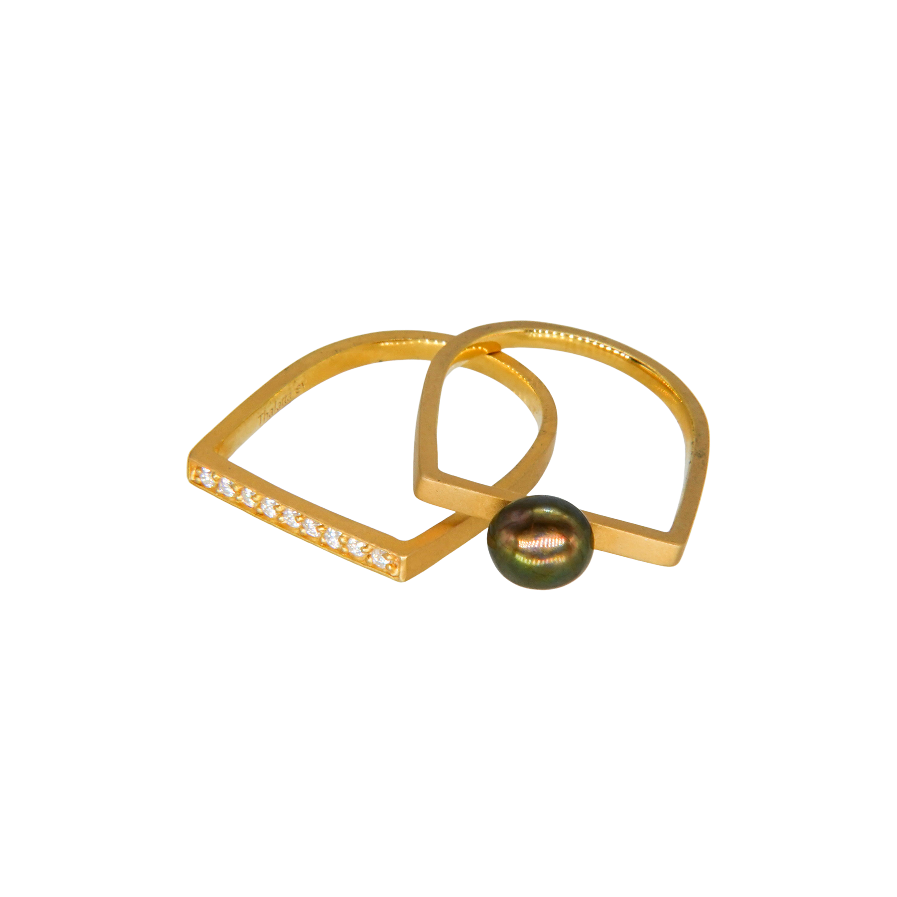 敷き詰められたメレのモアサナイトのリングとパールのリングの2本セット。