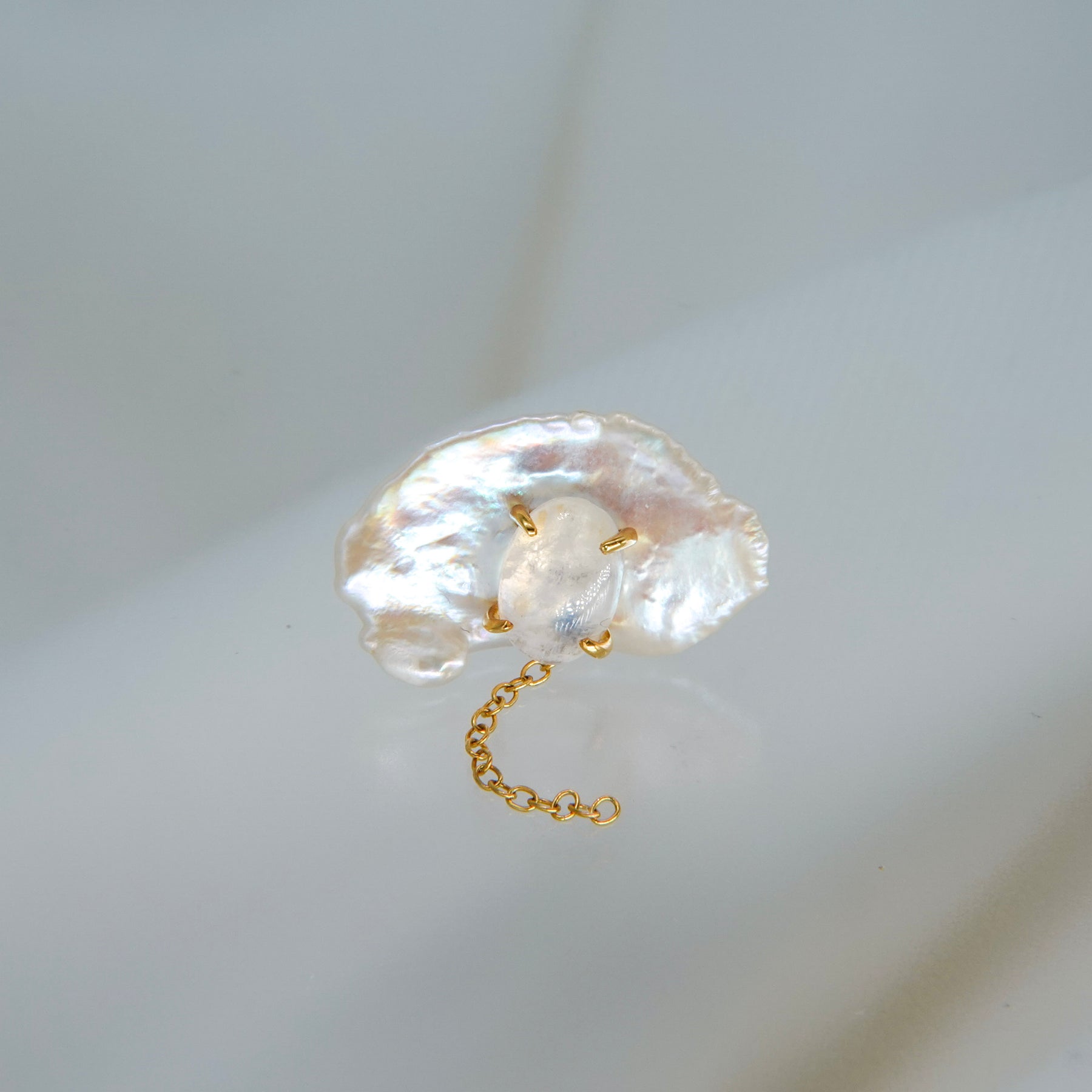 こちらはナチュラルなフォルムが愛らしいパールとムーンストーンを使用。