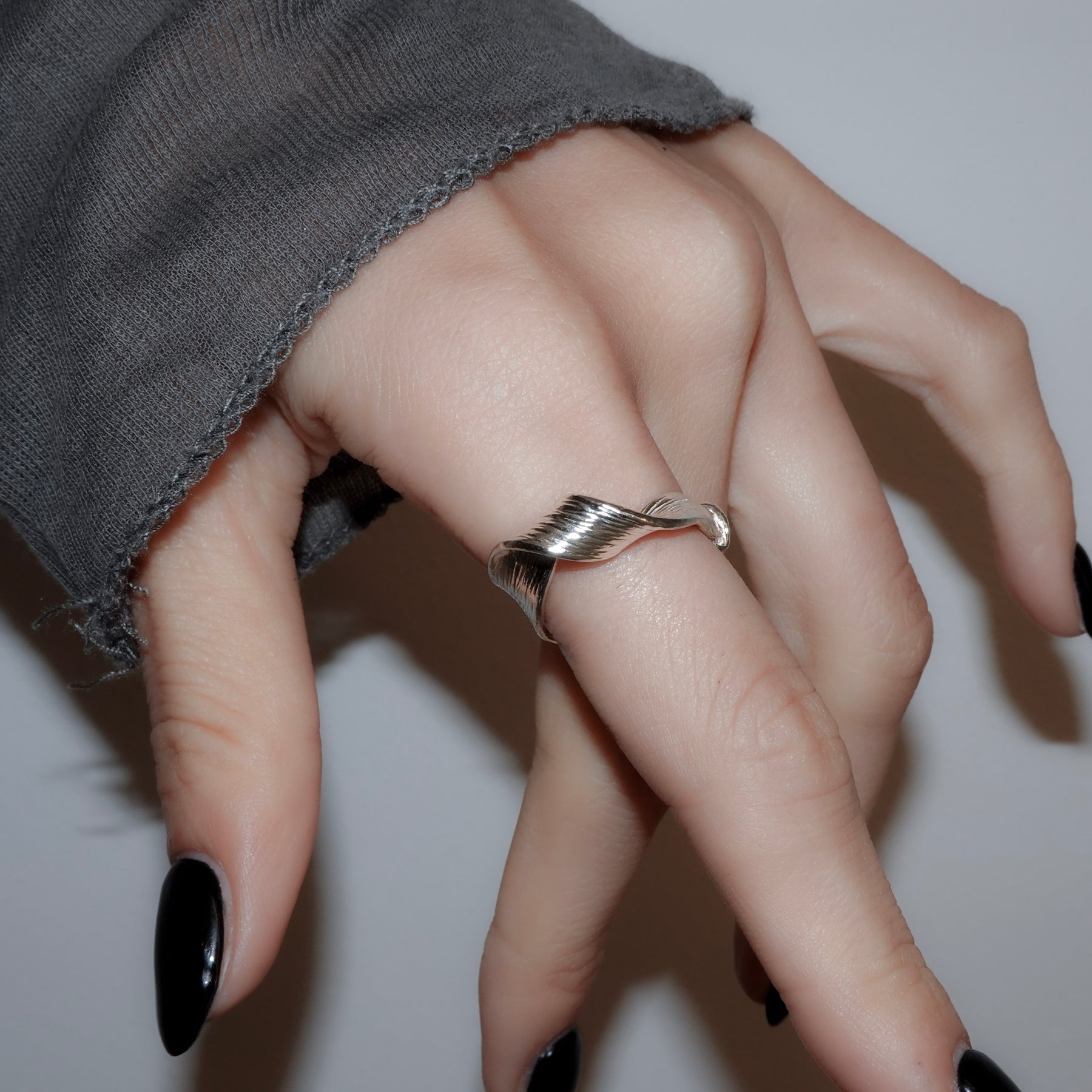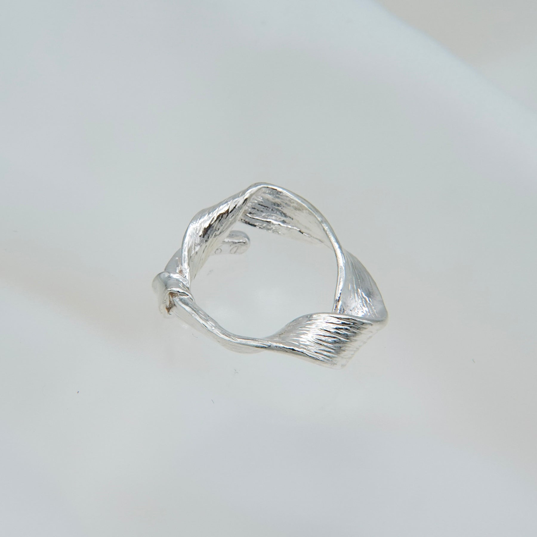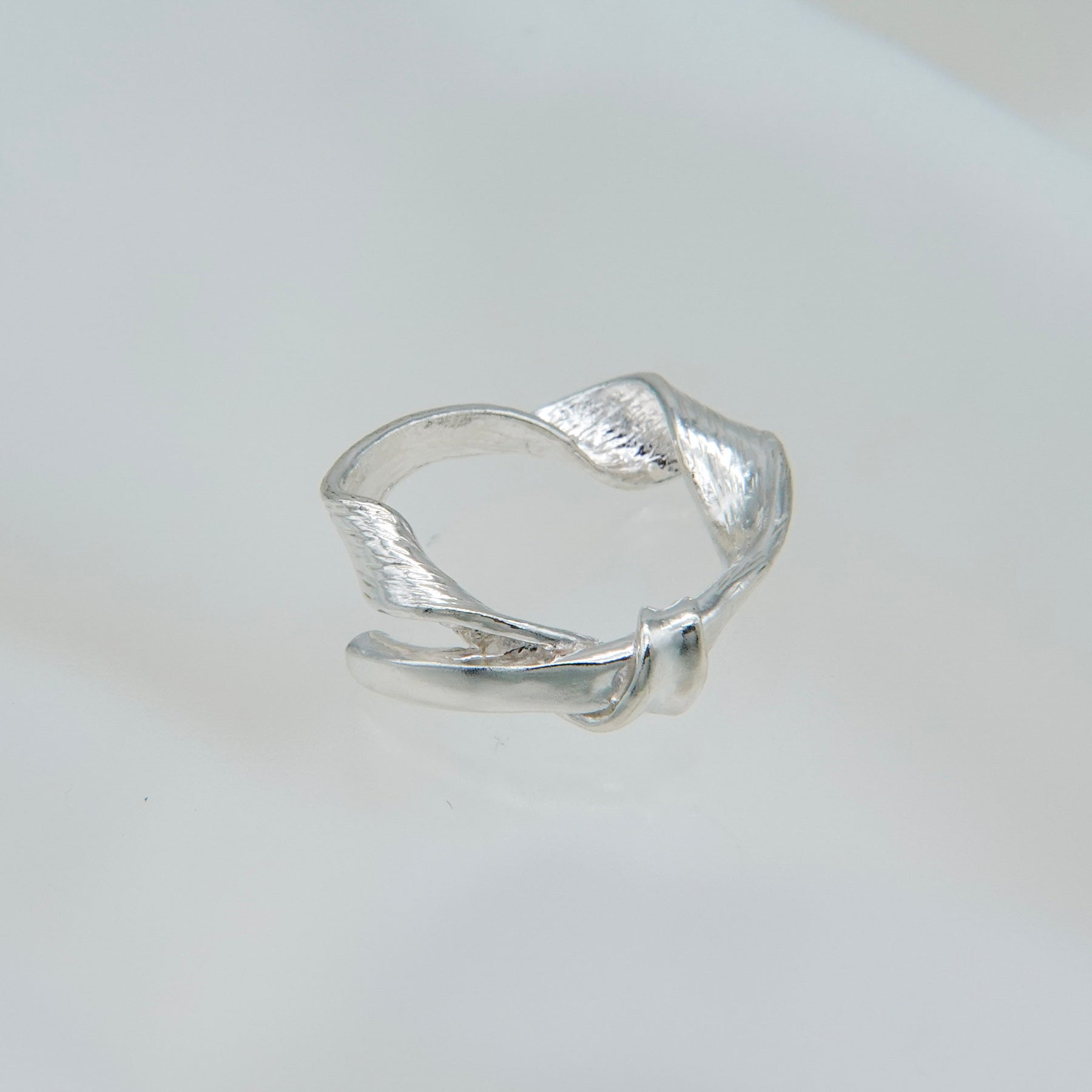 細長い葉が指に巻きついたようなイメージのリング。 あえて仕上げをマットにすることで葉脈が表現されています。