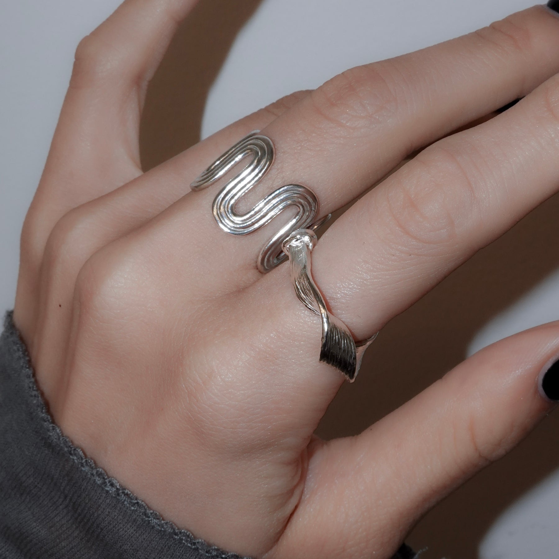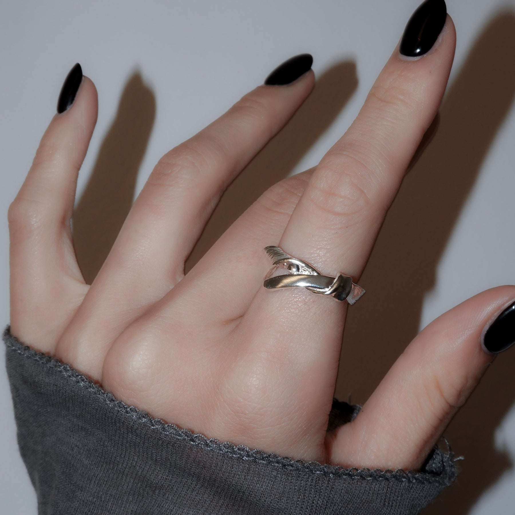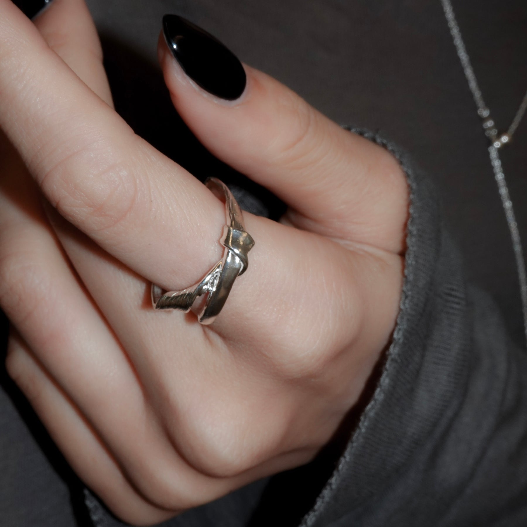 細長い葉が指に巻きついたようなイメージのリング。 あえて仕上げをマットにすることで葉脈が表現されています。
