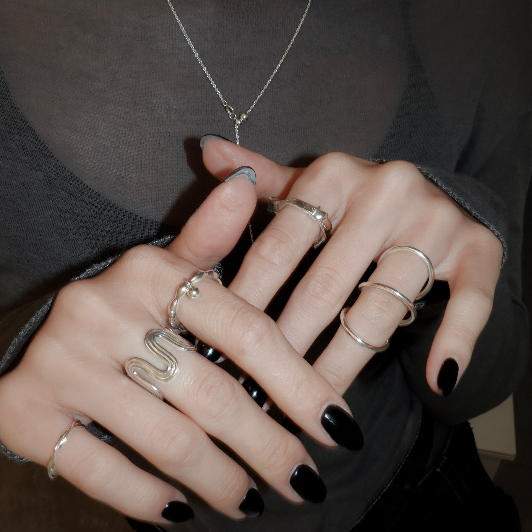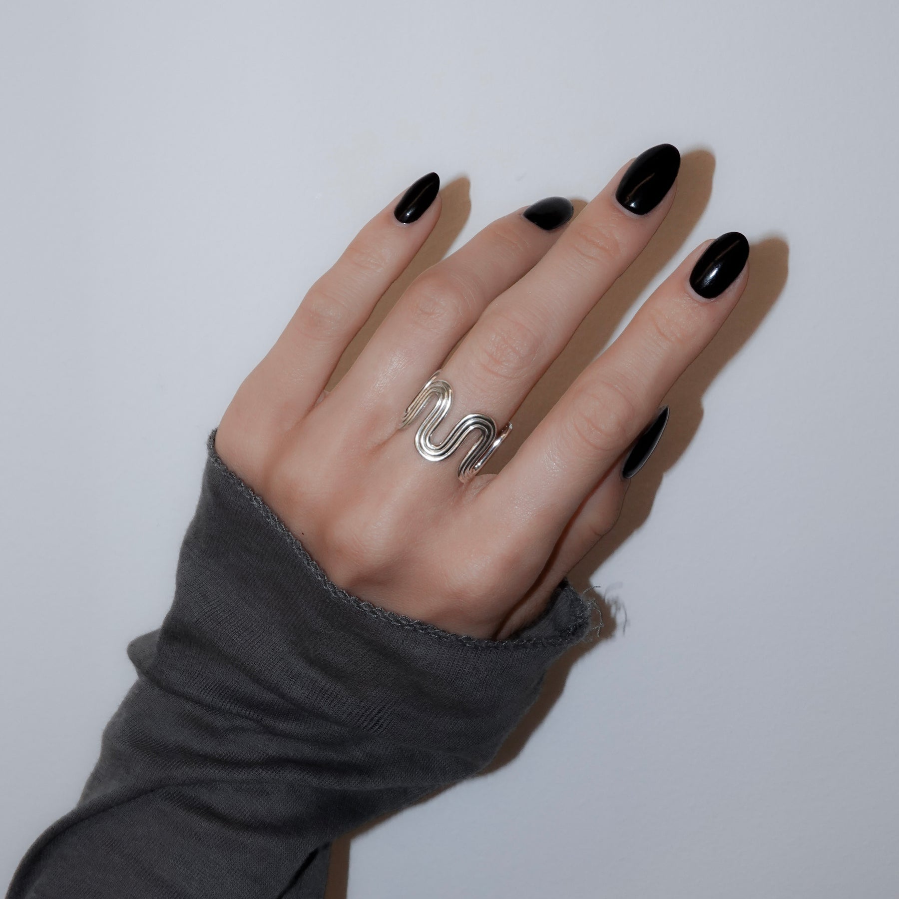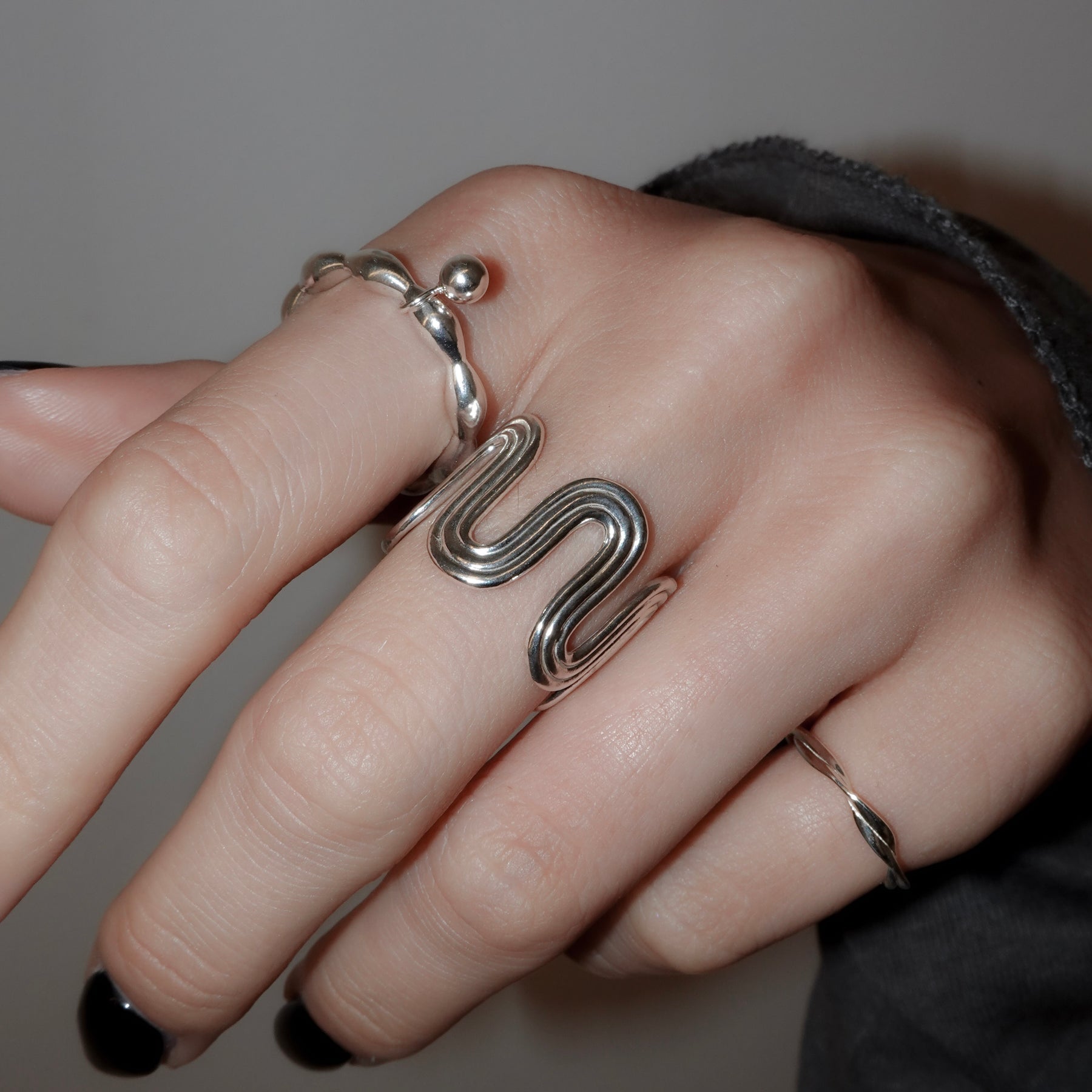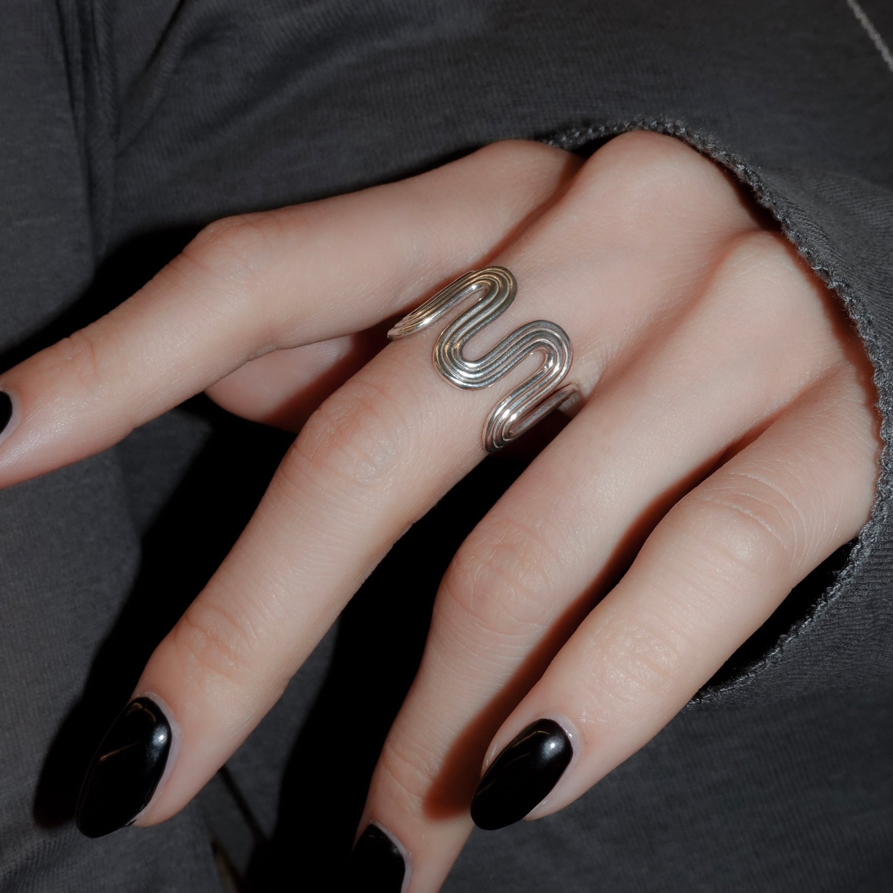 ユニークな形が目を惹くリング。