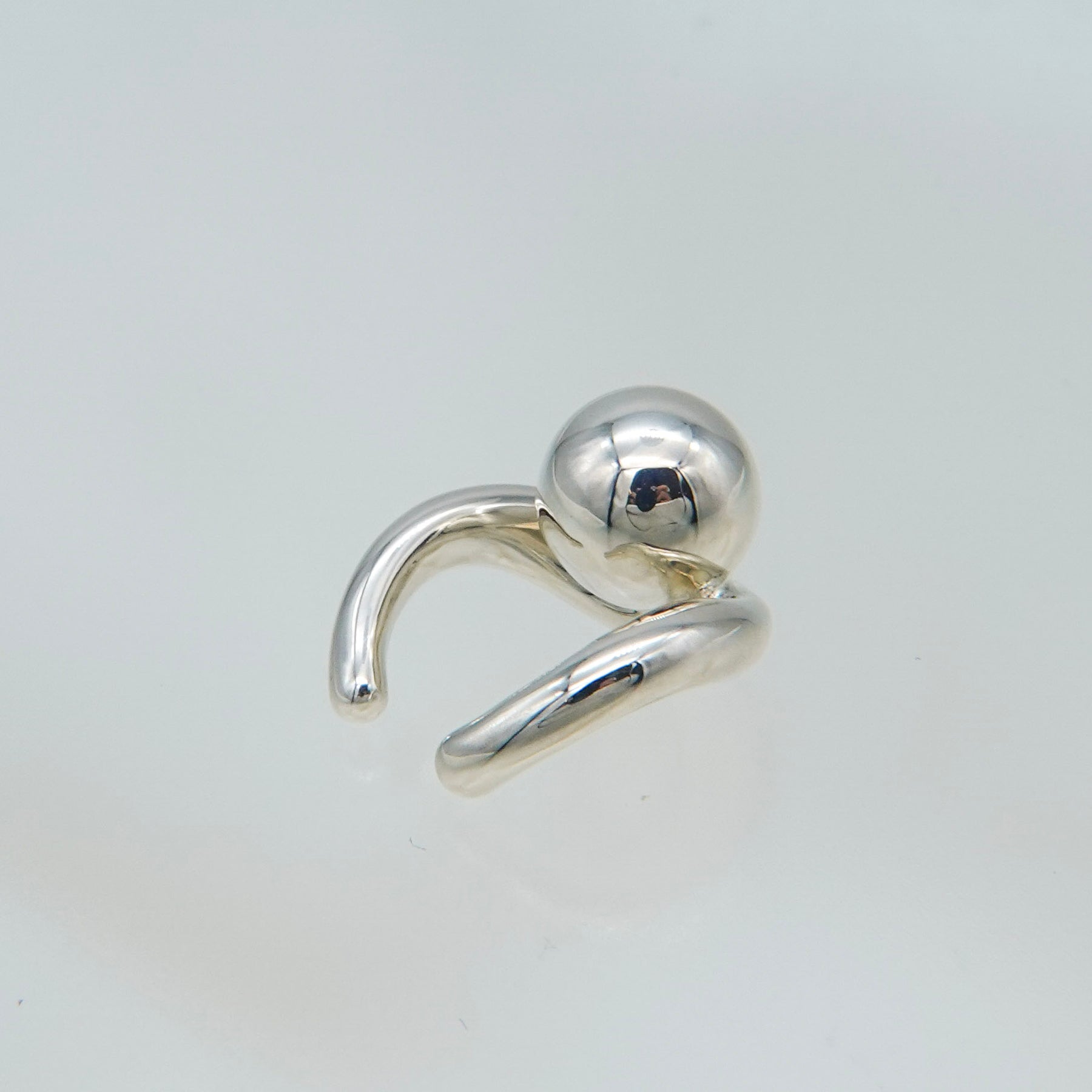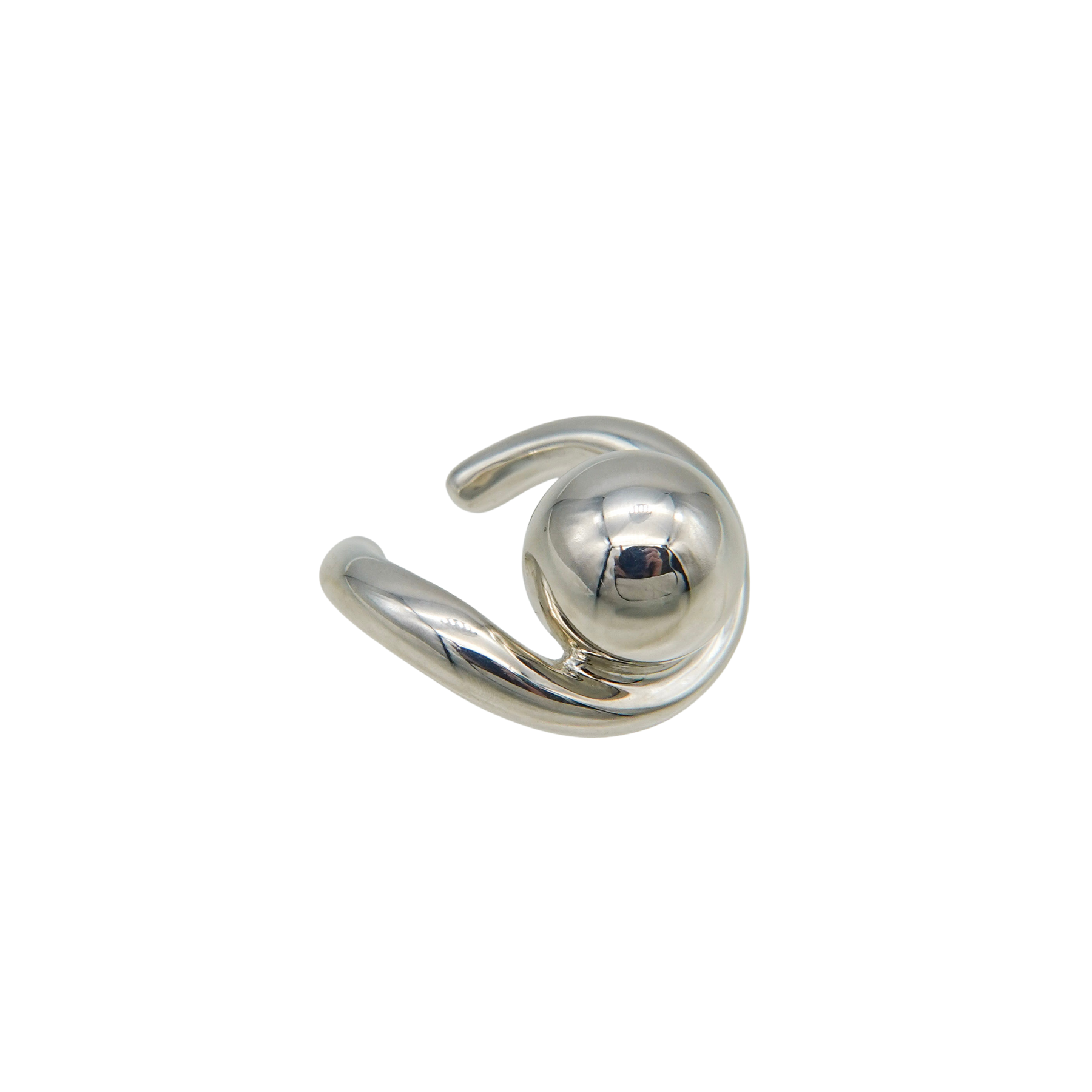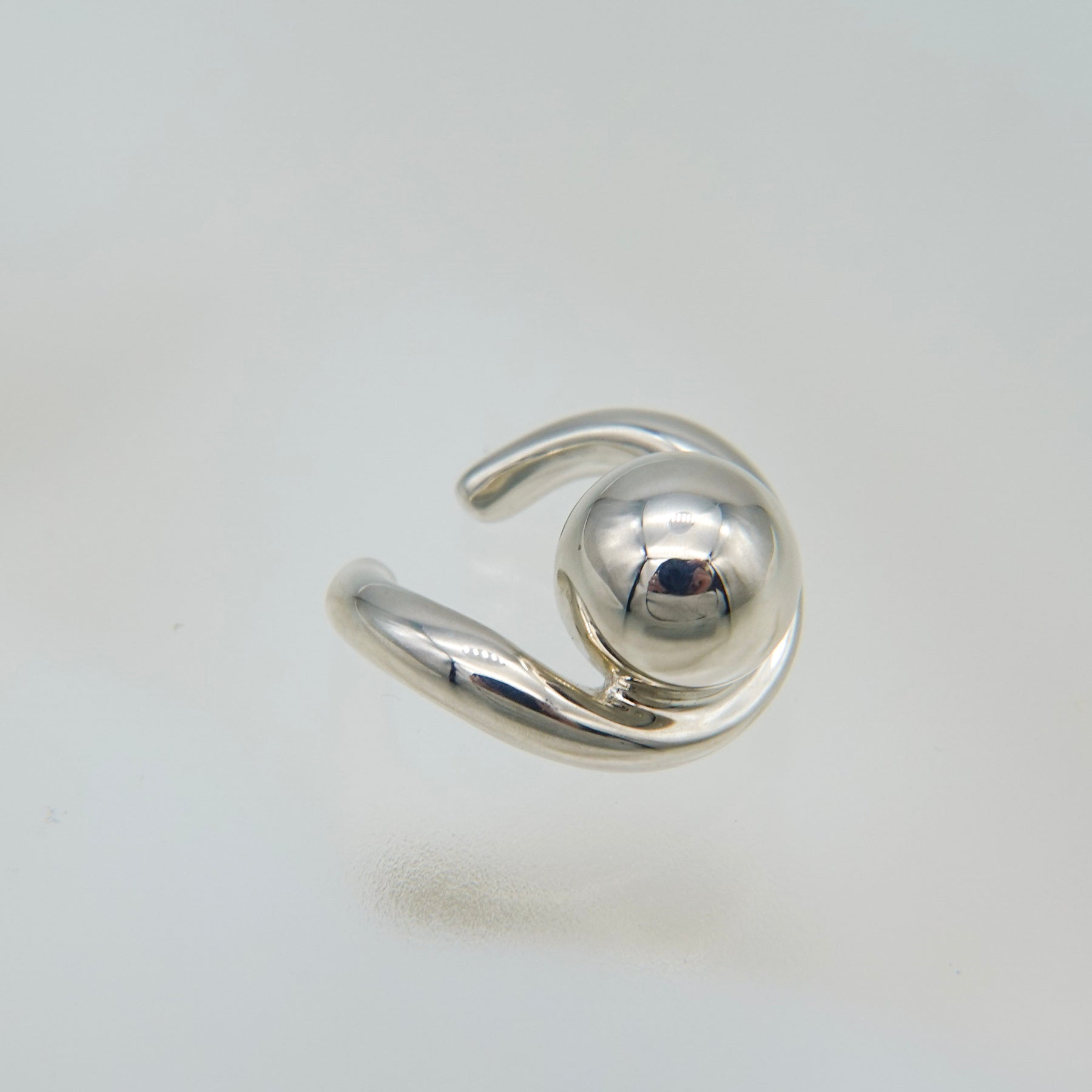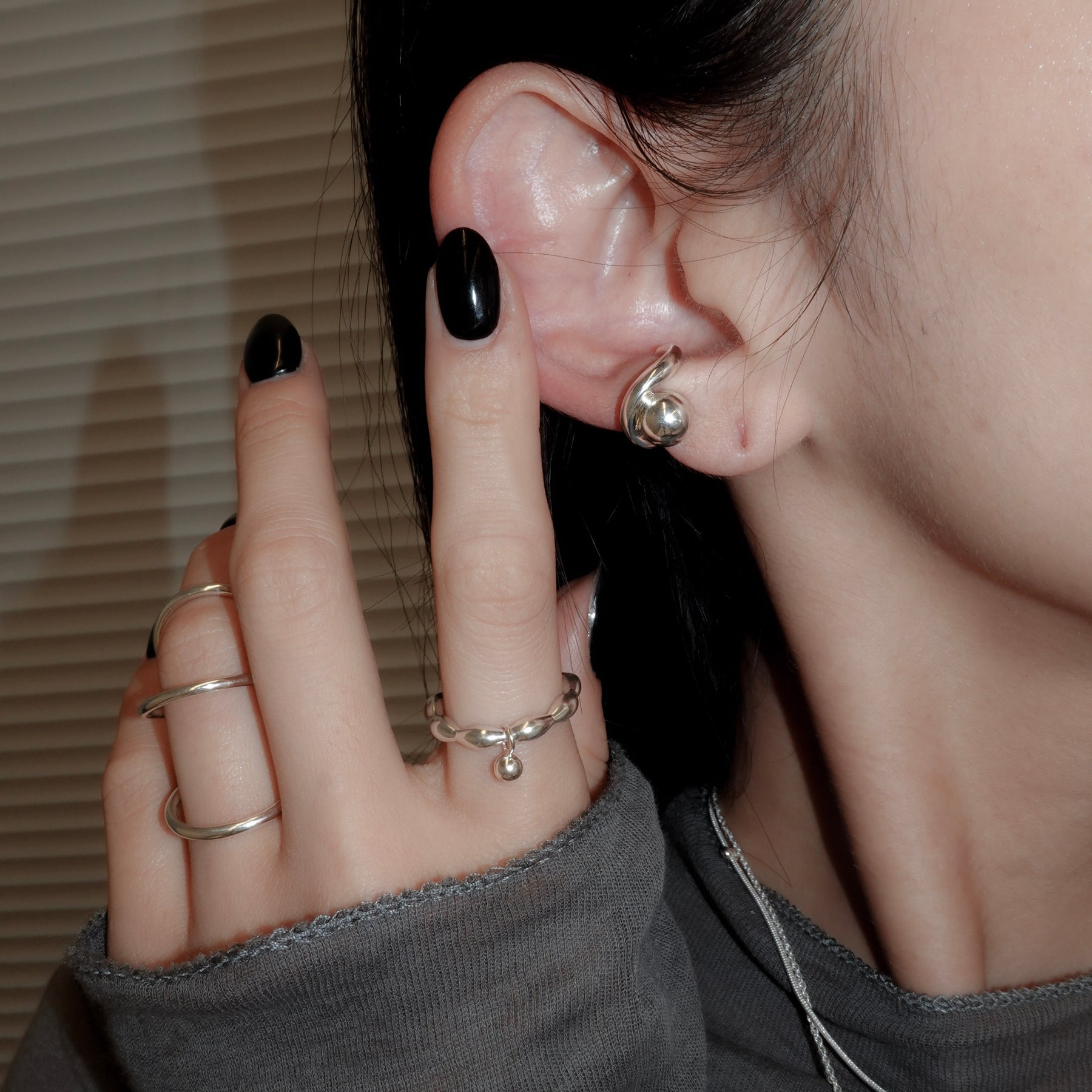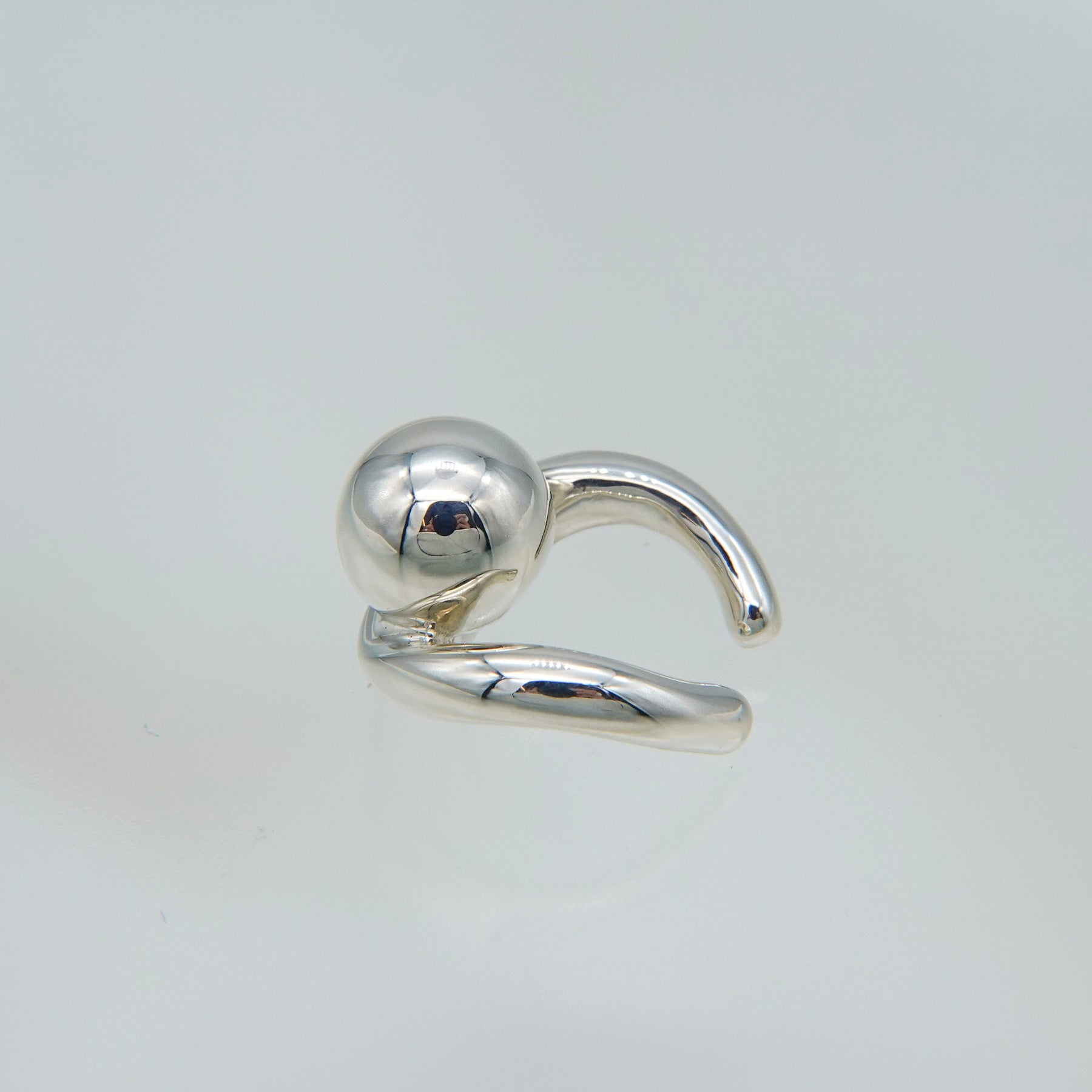 耳に沿うようなフォルムと、目を惹く丸玉モチーフが特徴的なデザイン。全体的にぷっくりとしたボリュームがあり、ひとつで雰囲気の出るイヤカフです。上下反対にすることでモチーフの見え方が変わり、表情の違いをお楽しみいただけます。