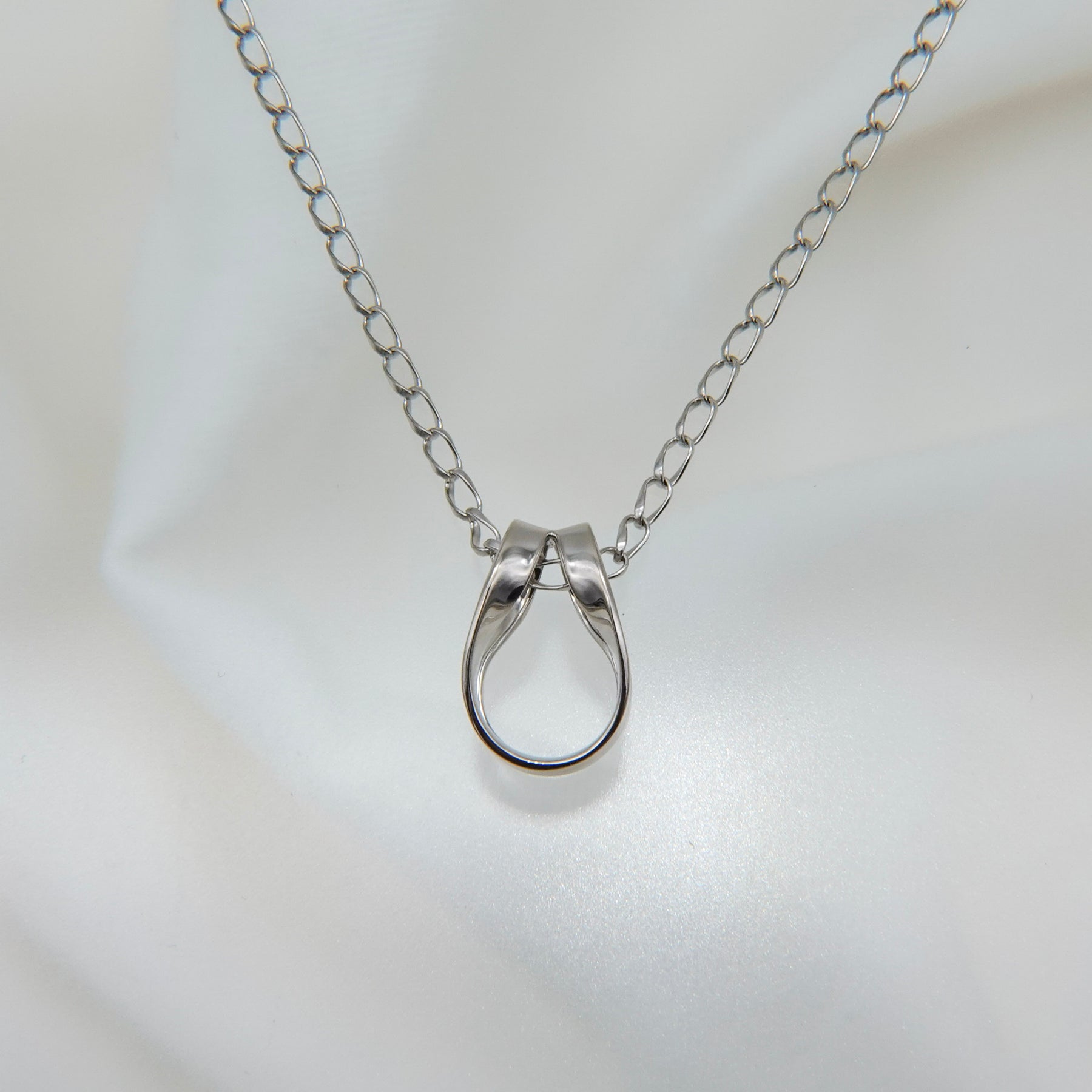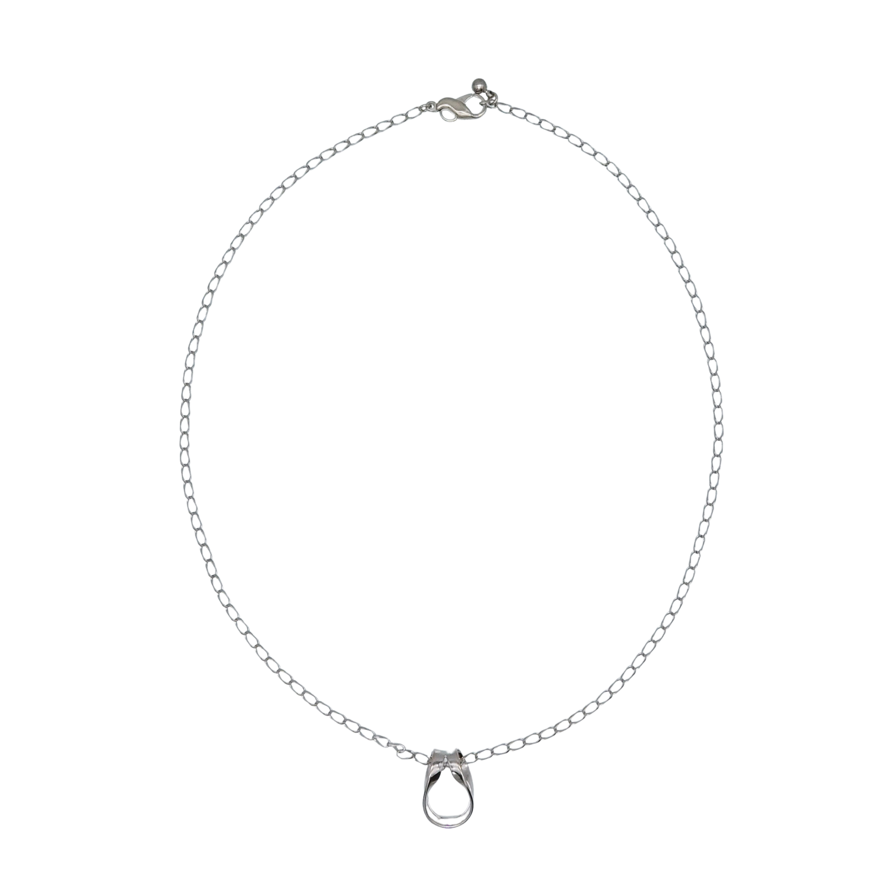 大・中・小のパーツからなるモチーフは、見る角度によって上下が反転して見える独特の造形が魅力。お好みの位置で留められるため、長さを自在に調整して楽しめます。
