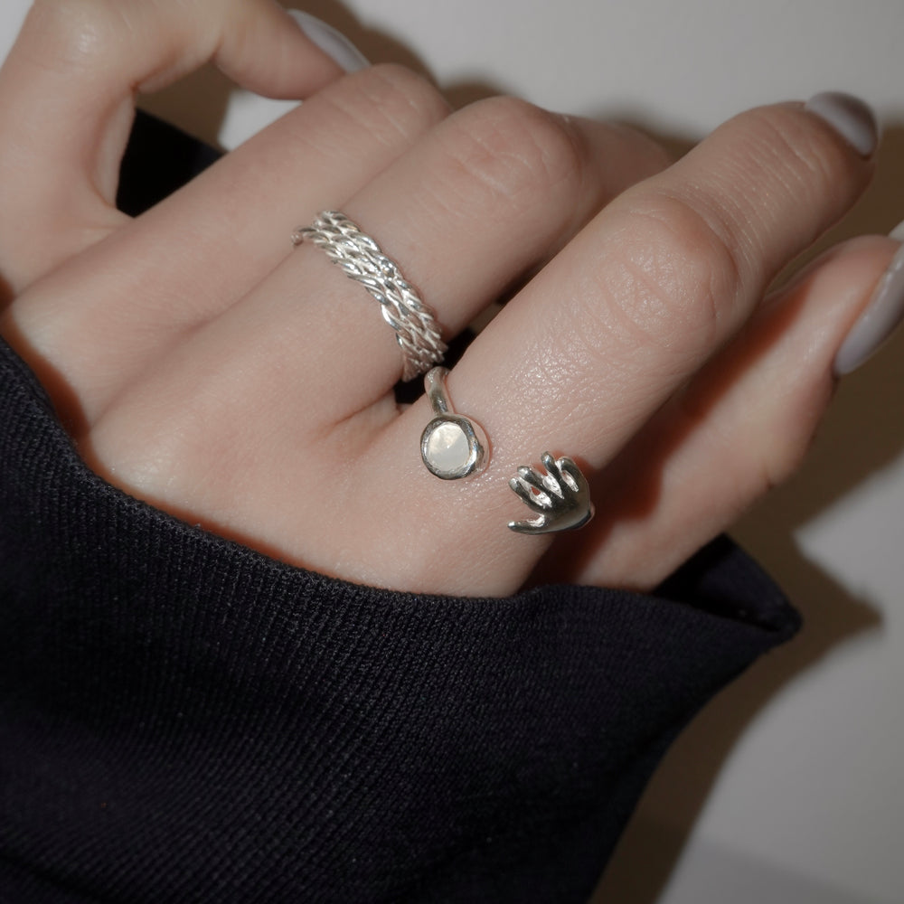 蝶の羽部分をゆっくり開閉し、ご自身の指のサイズに合わせてご着用いただけます。