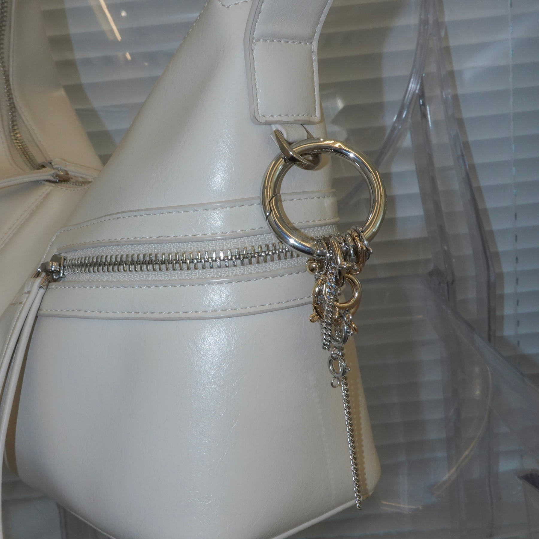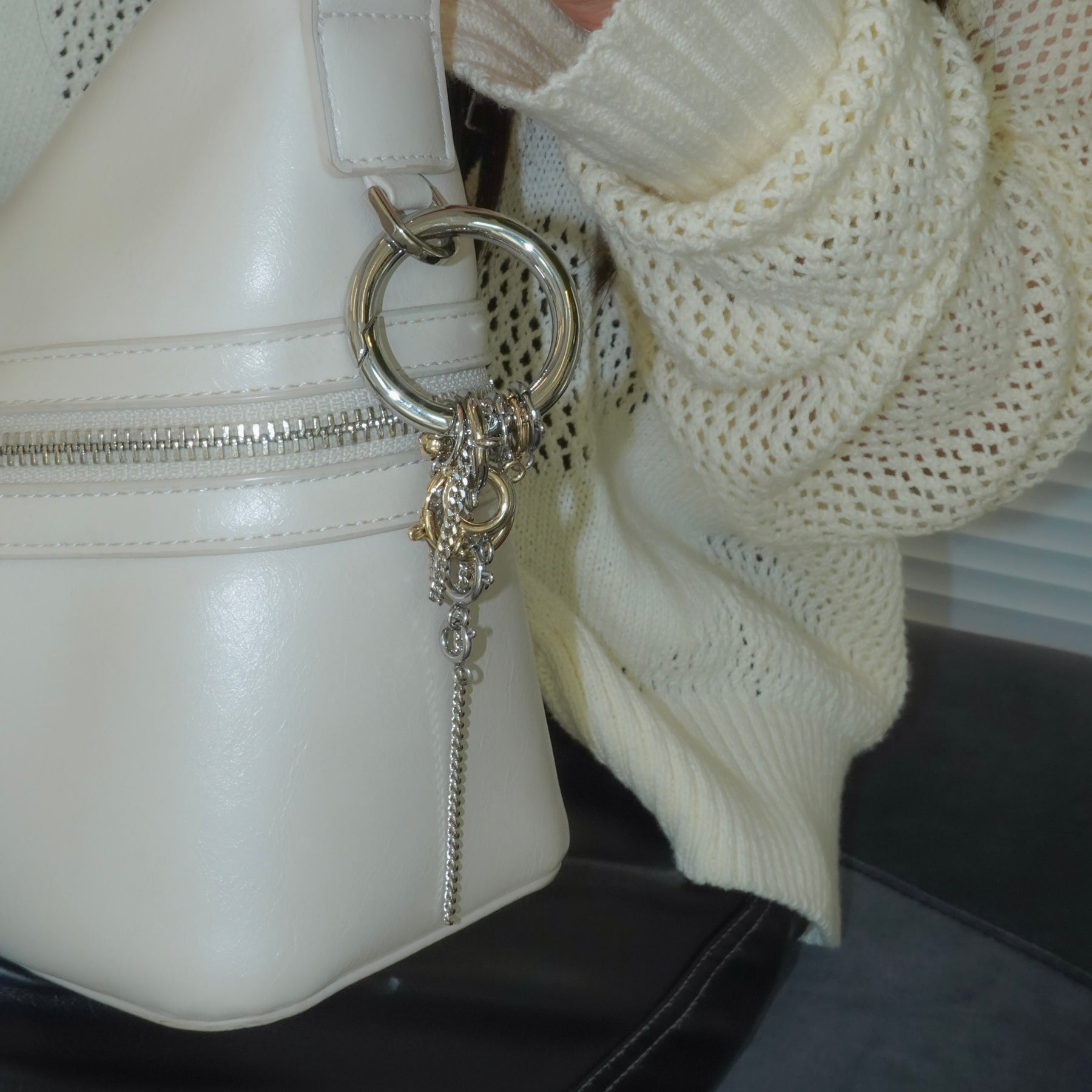 長さの異なるチェーンが連なり、バッグやベルト周りに立体的なアクセントを加えます。