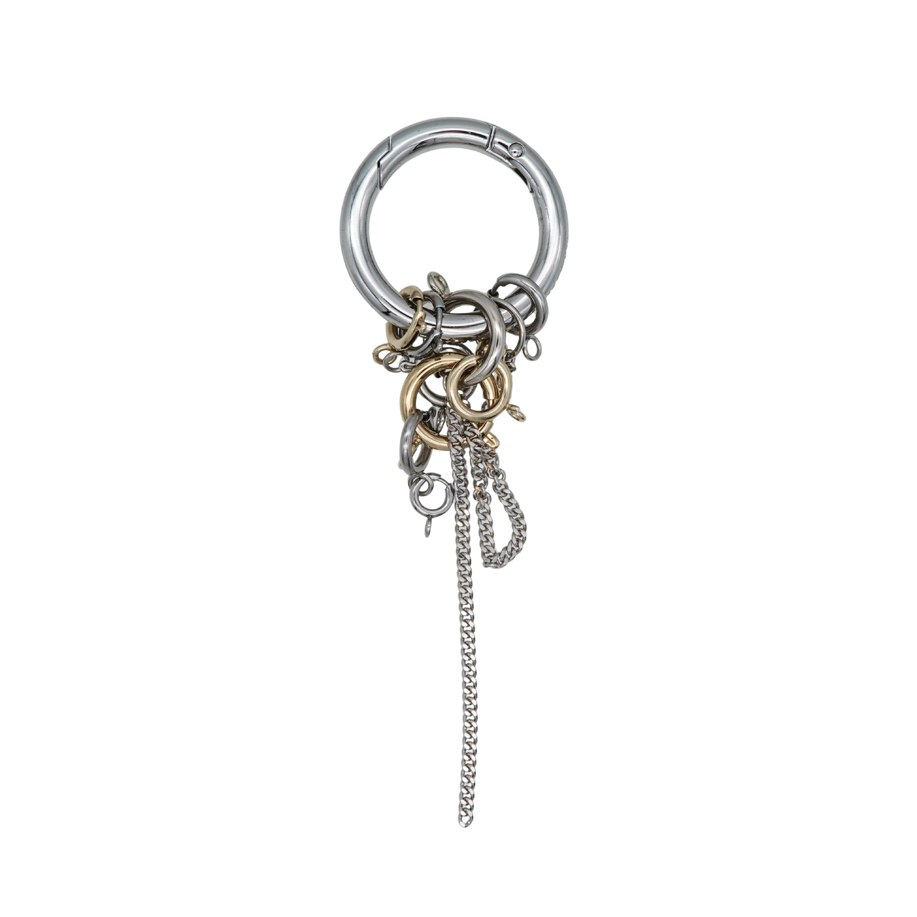 複数のチェーンとパーツを組み合わせた、ボリュームのあるキーチェーンです。