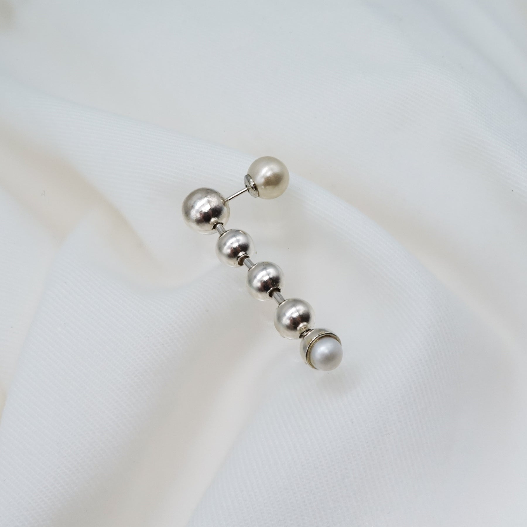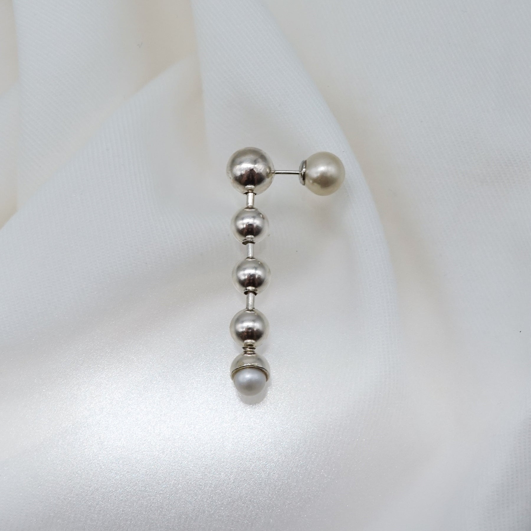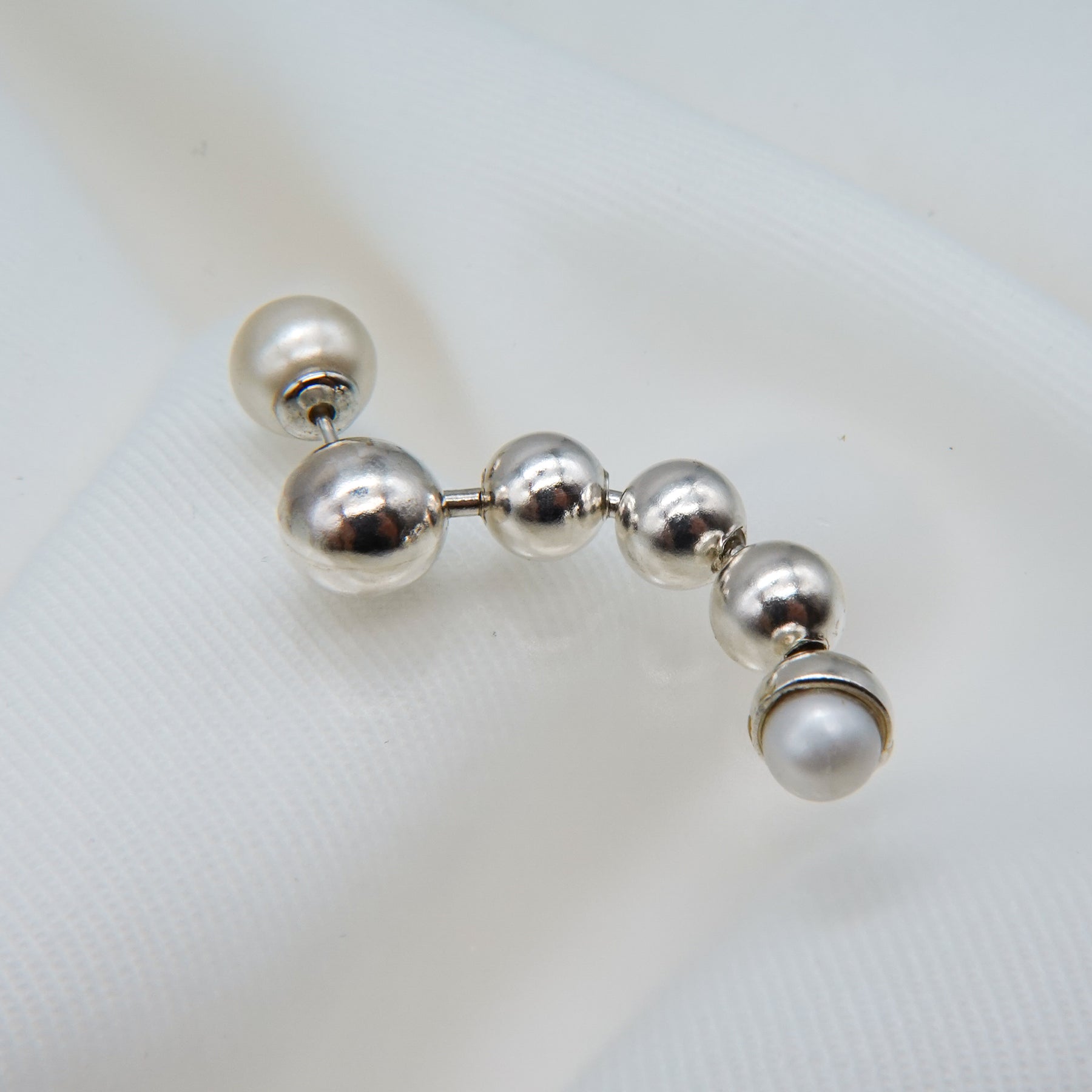 連なるボールと両端のパールが、リズムと緊張感を生むデザイン。構築的で遊び心ある佇まいが魅力です。 こちらのアイテムは片耳での販売となります。