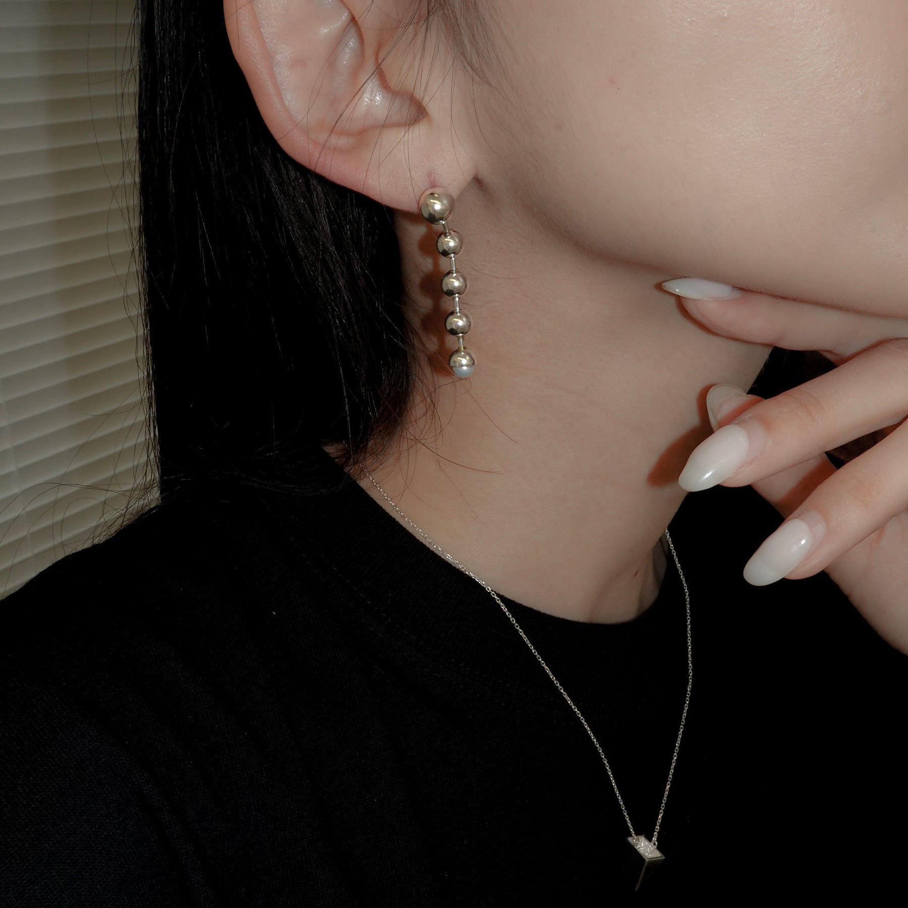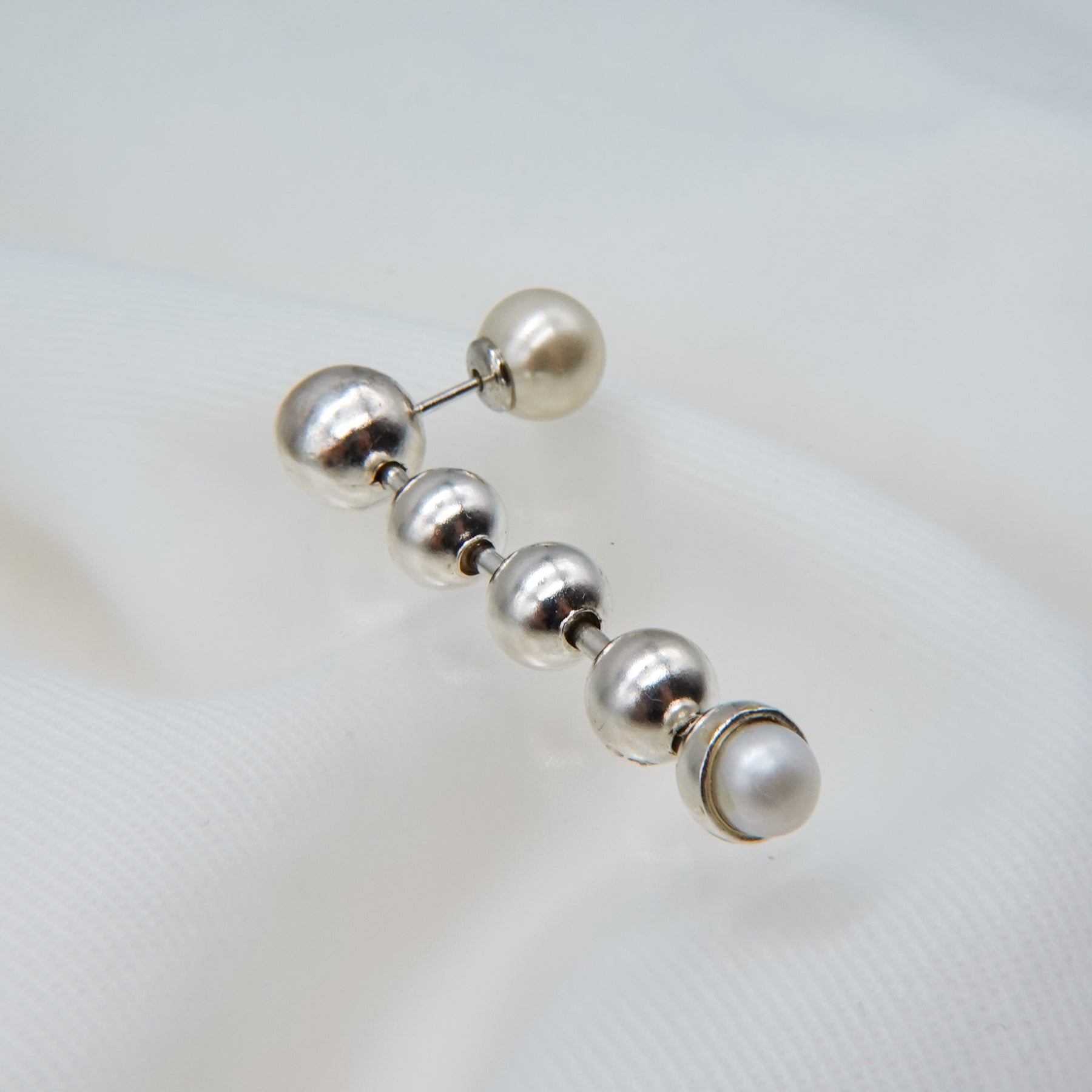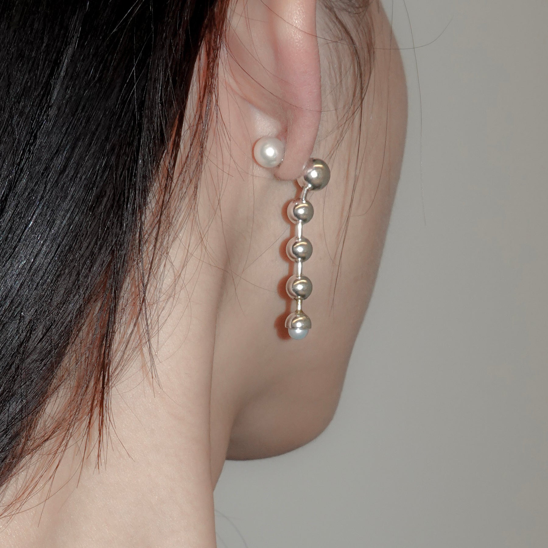 連なるボールと両端のパールが、リズムと緊張感を生むデザイン。構築的で遊び心ある佇まいが魅力です。 こちらのアイテムは片耳での販売となります。