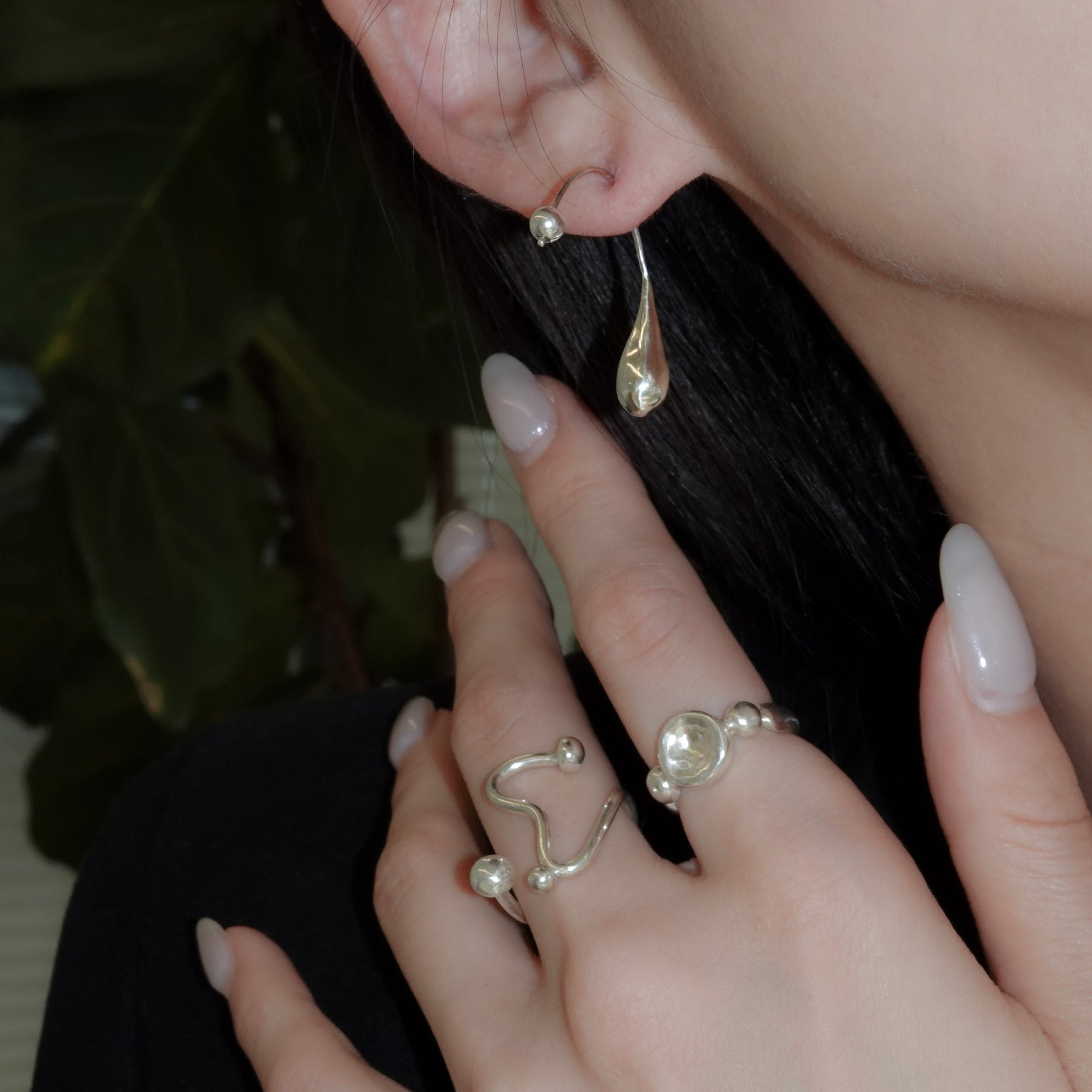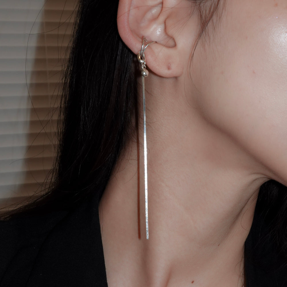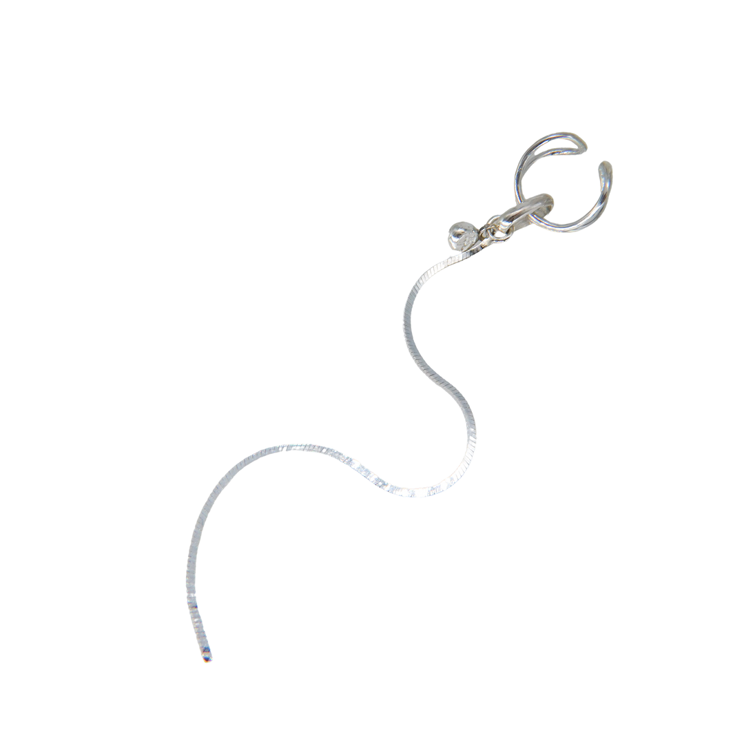 長く伸びる浮遊生物の触手をイメージしたワイヤーピアス。シリコンが入ったキャッチはお好みの位置で留めることができます。