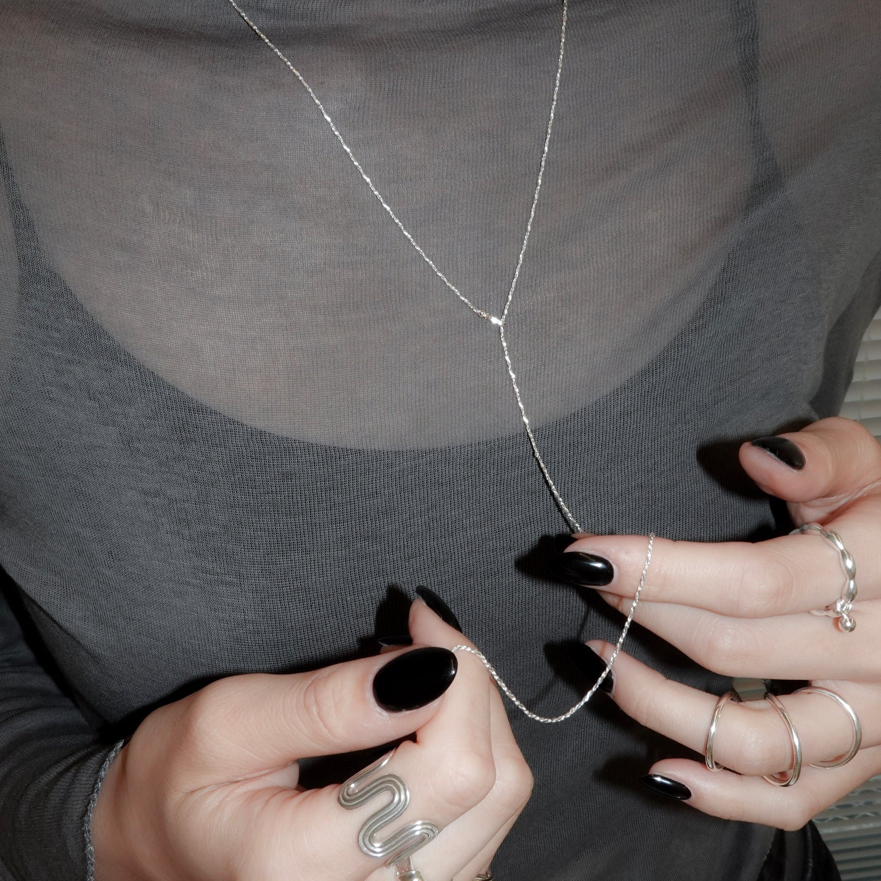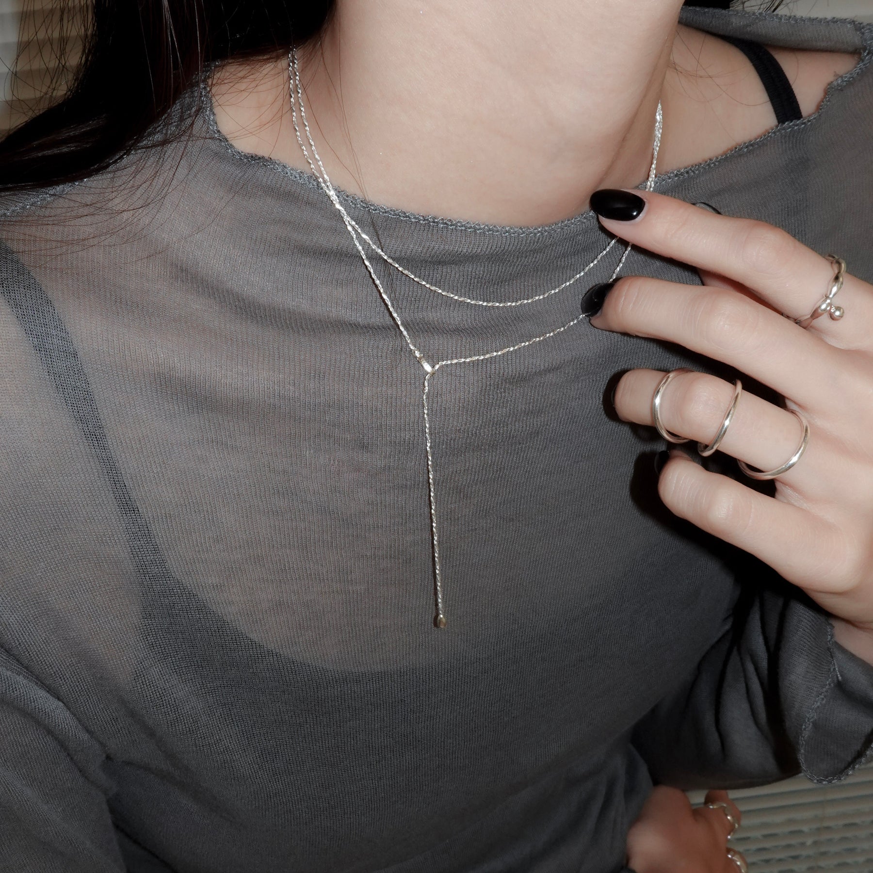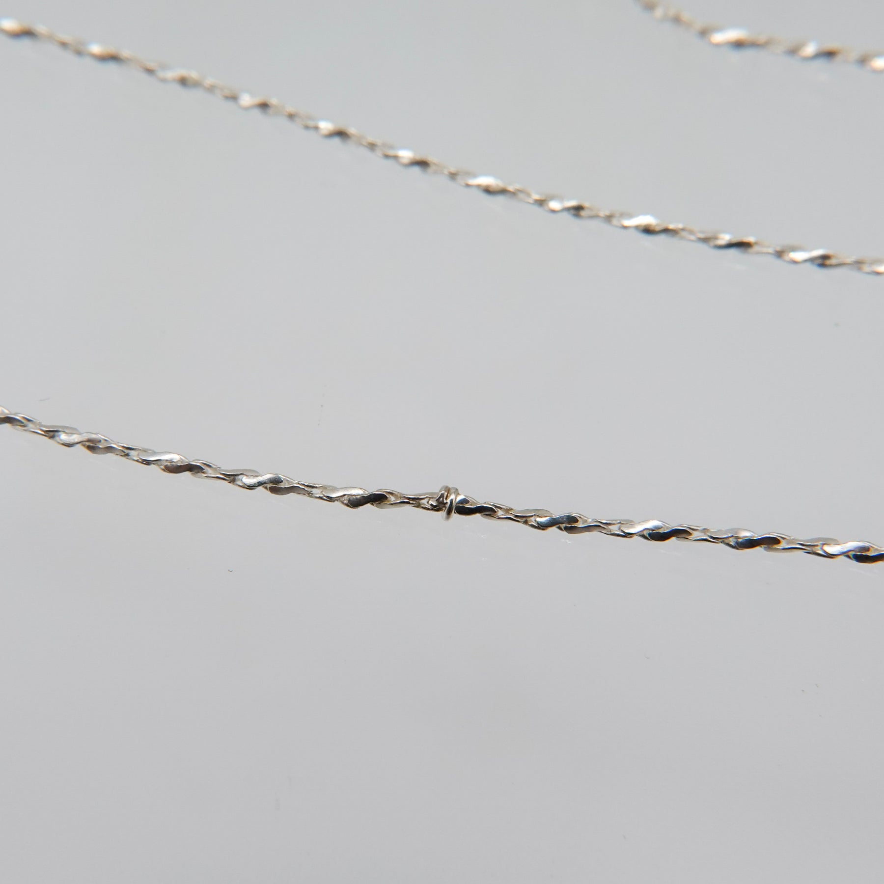 ツイストされた繊細なチェーンが魅力のロングネックレス。留め具にもこだわり、チェーンの自然な連なりを損なわないようデザインされています。長さを調整できる4WAY仕様で、様々なスタイルで多彩なアレンジが楽しめます。