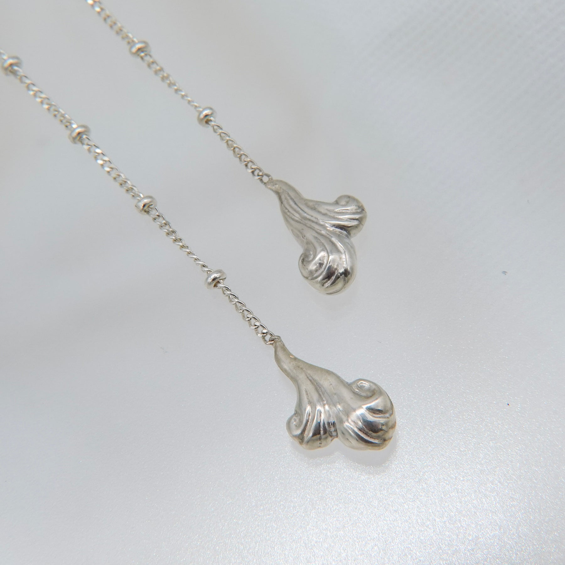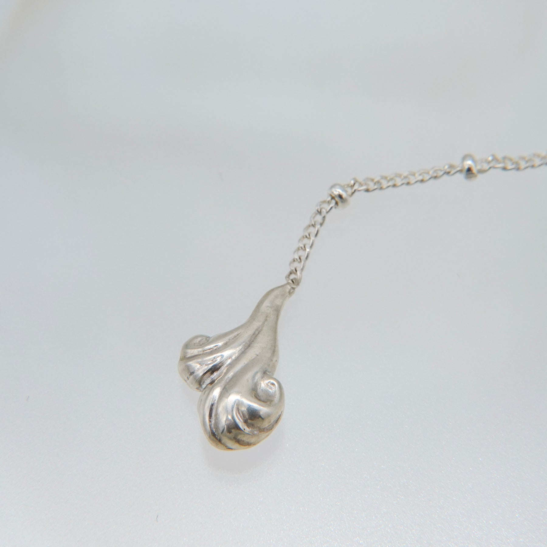 ケーキの上に絞った生クリームをイメージしたエンドパーツのロングネックレス。