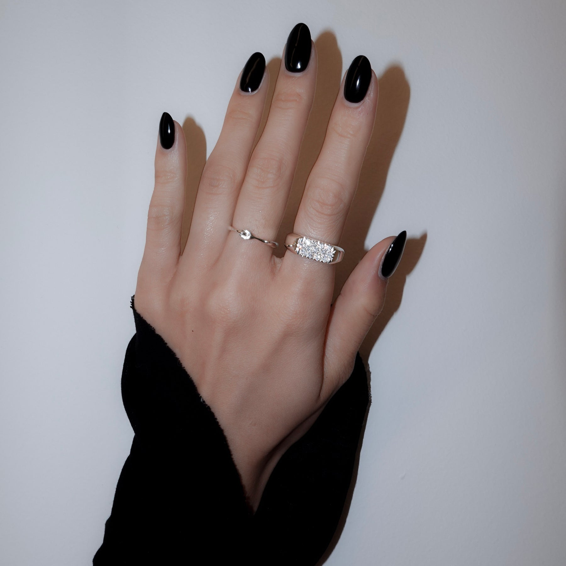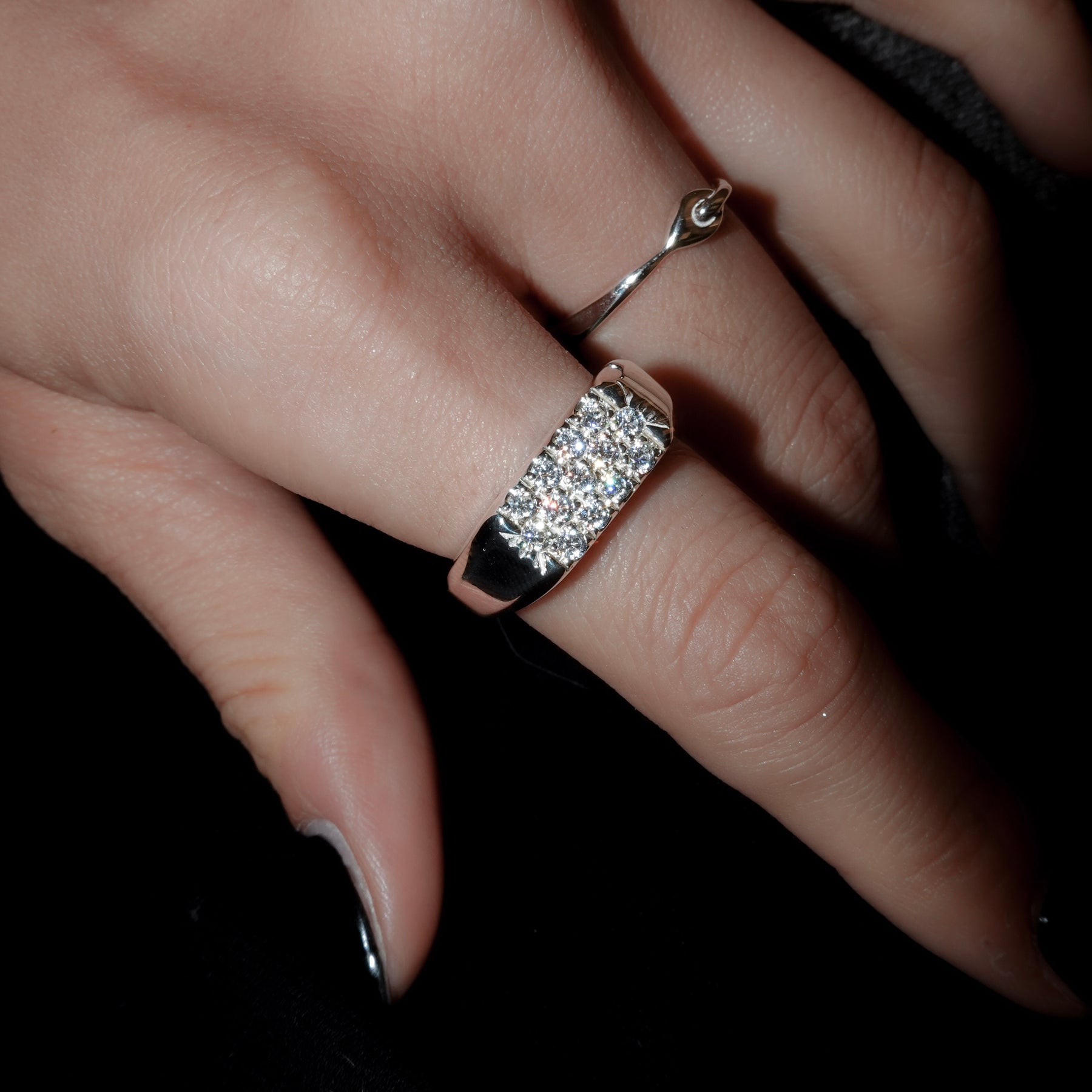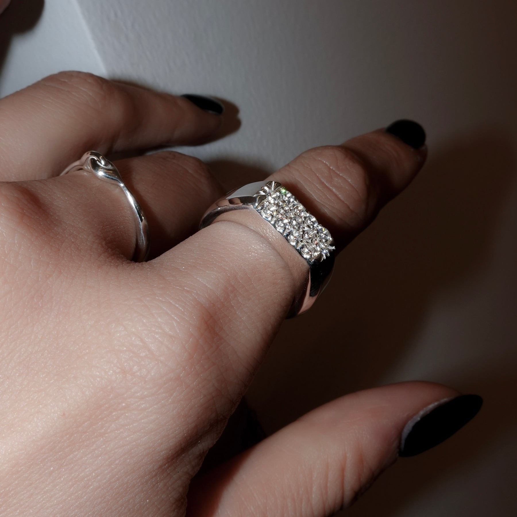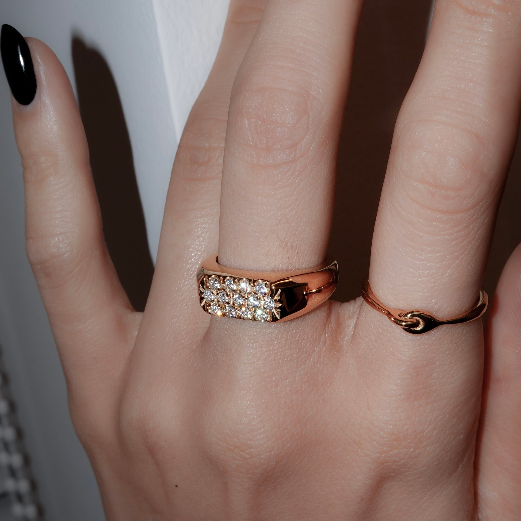 DOCKの名前に由来したuniverse collection。宇宙船内部で地上との通信やロボットアームの操作、地球観測などシャトルの操縦を行う、光り輝くフライトデッキをイメージしたリング。隙間なく広がるコントロールパネルの光を13個のジルコニアをパヴェセッティングすることで表現しています。