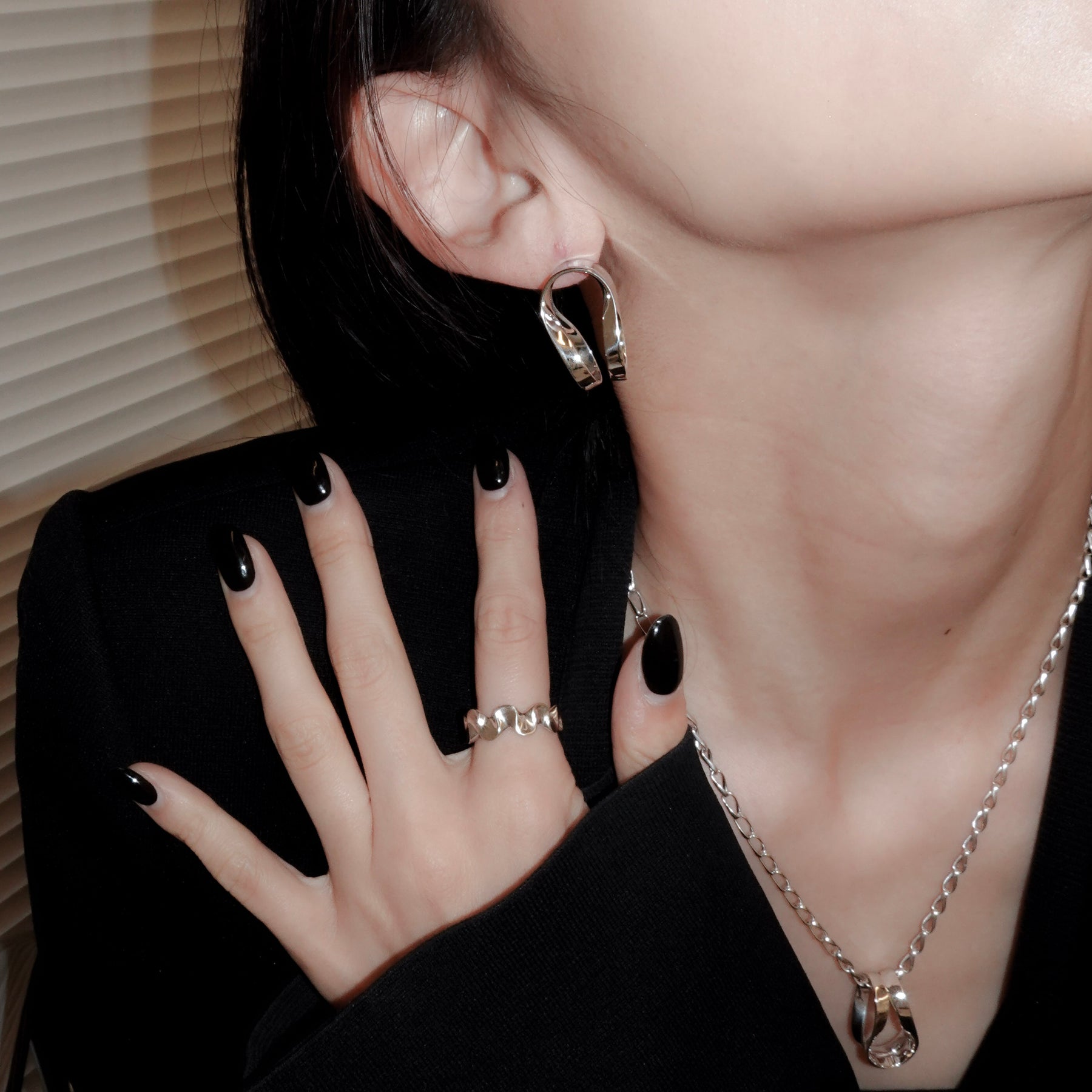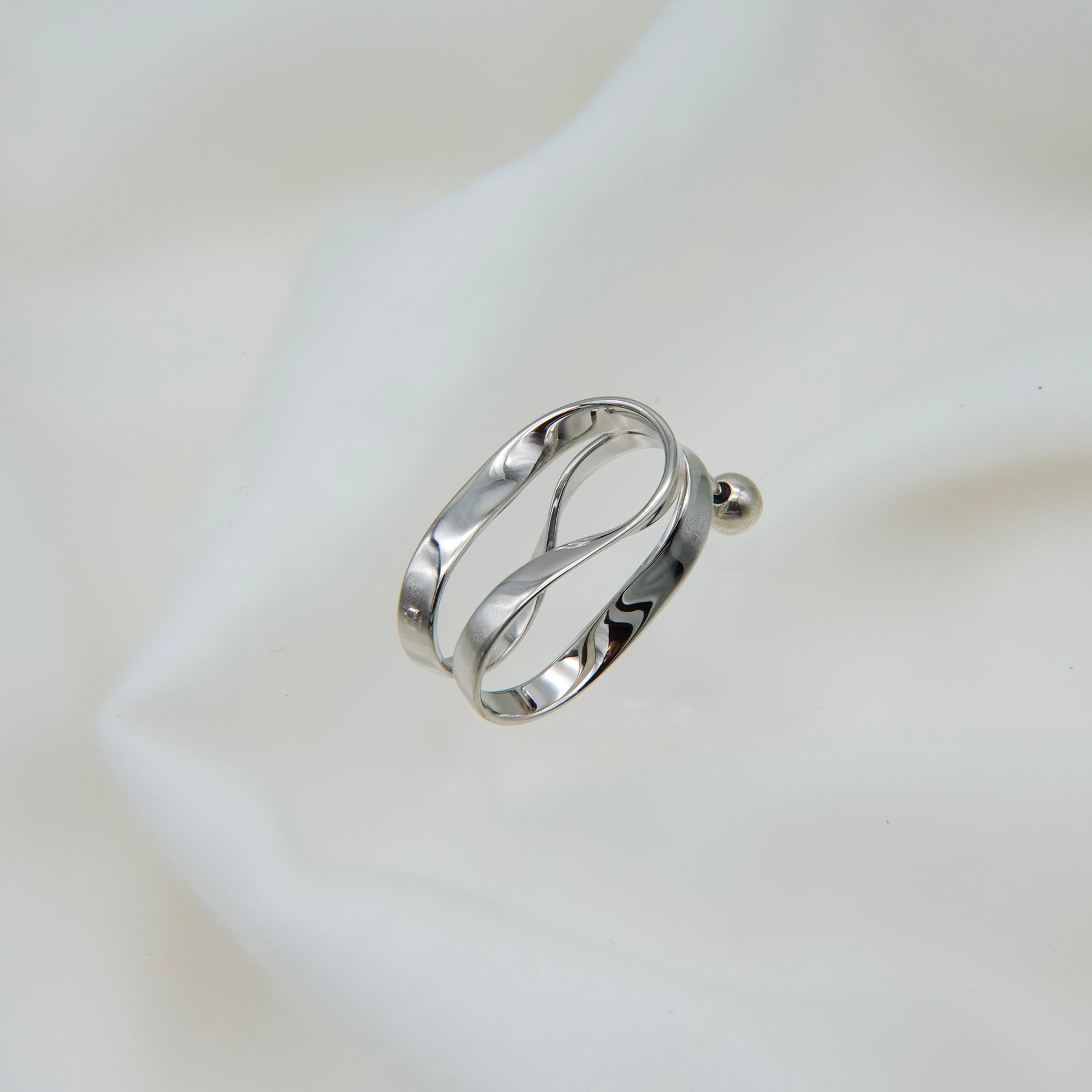 大・中・小のパーツからなるモチーフは、見る角度によって上下が反転して見える独特の造形が魅力。
