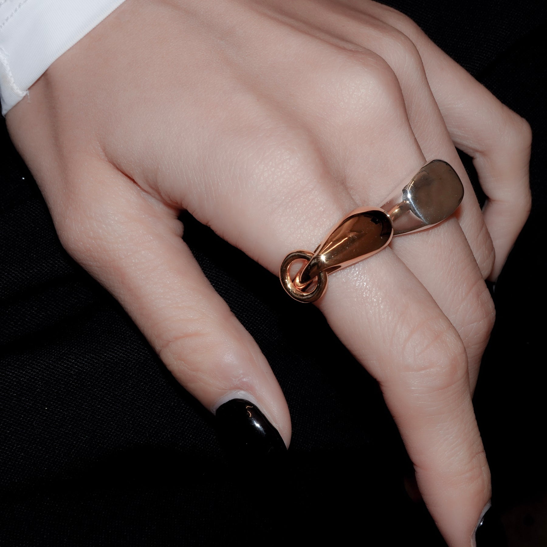 わずかに開いた余白の連なりが、輪の内側で花のようにひらく構成。丸みのあるデザインと丸カンが、視線を誘います。