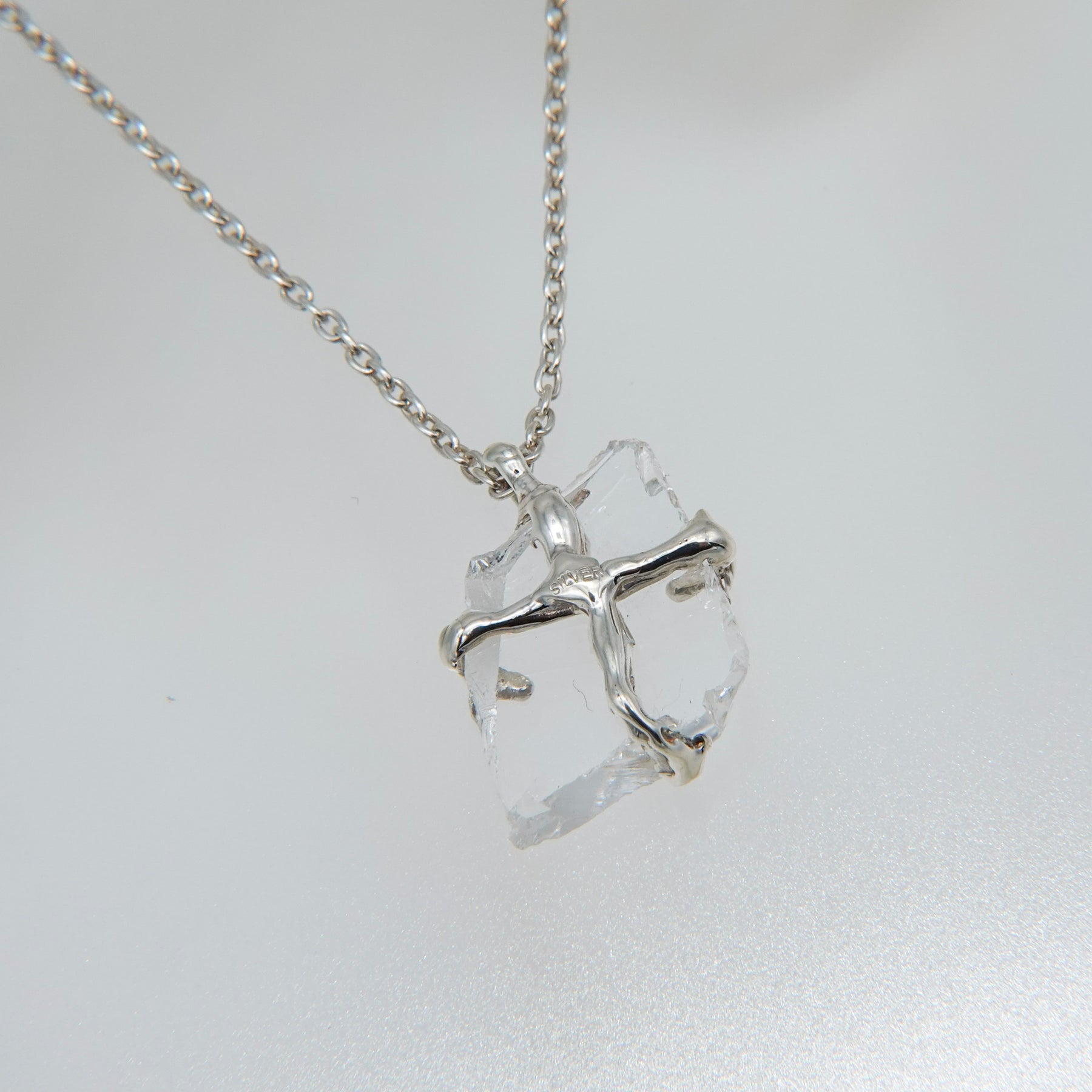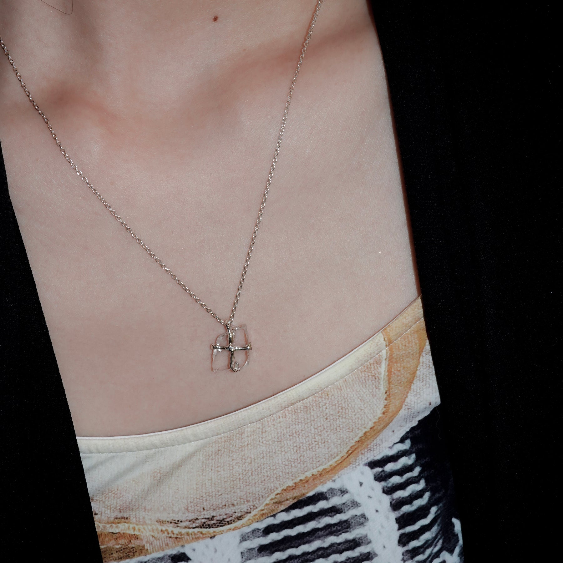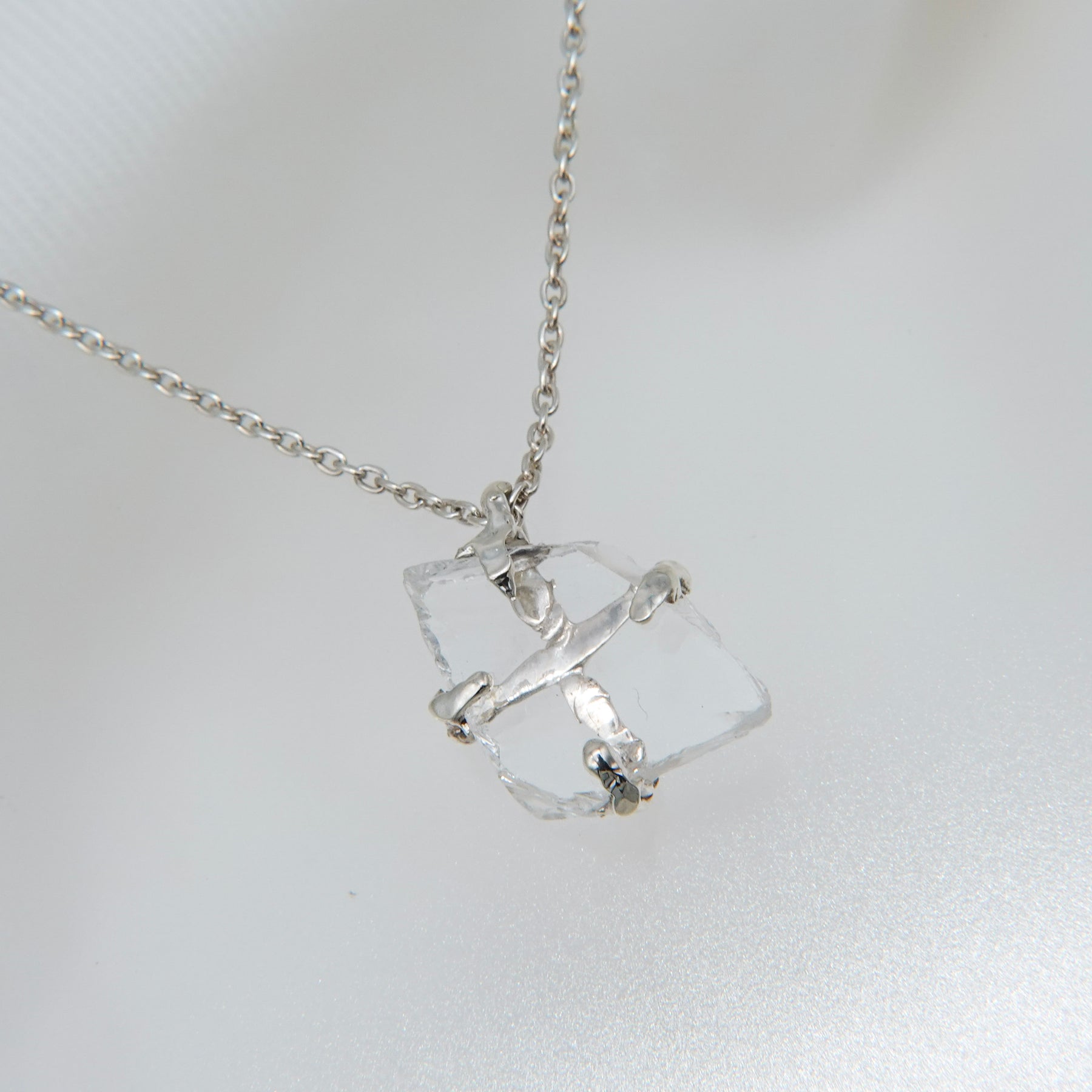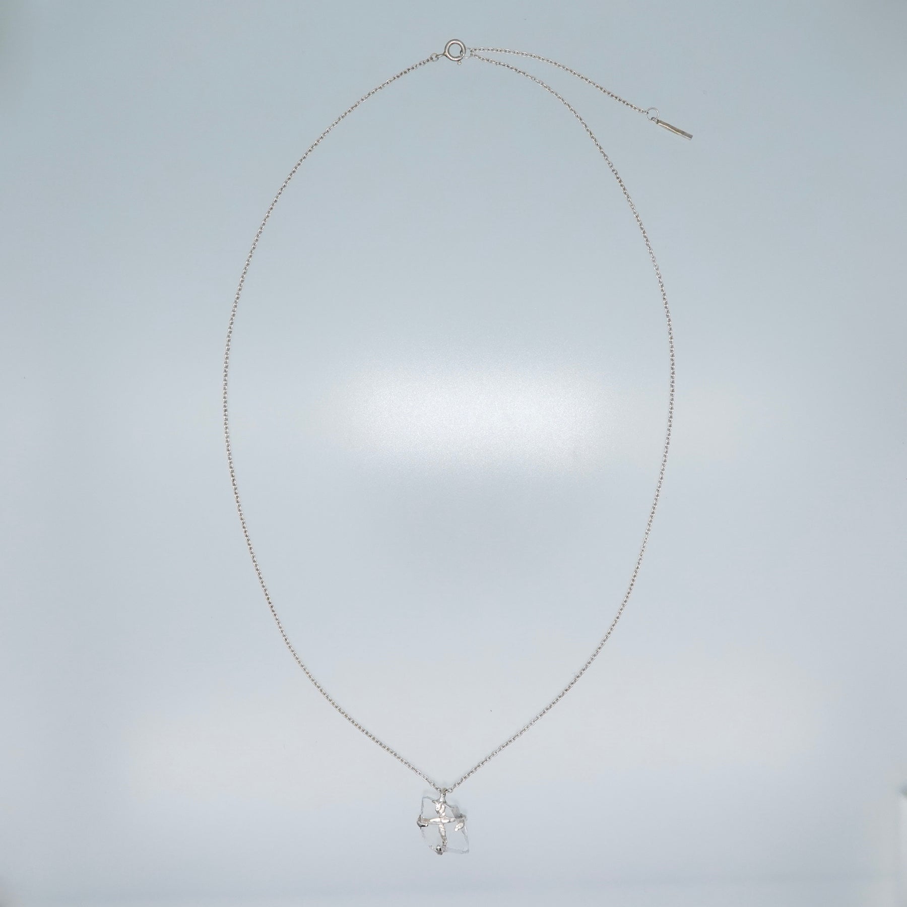 甲府の熟練彫刻職人が一点一点削り出した水晶スライスを使用したクロスネックレス。
