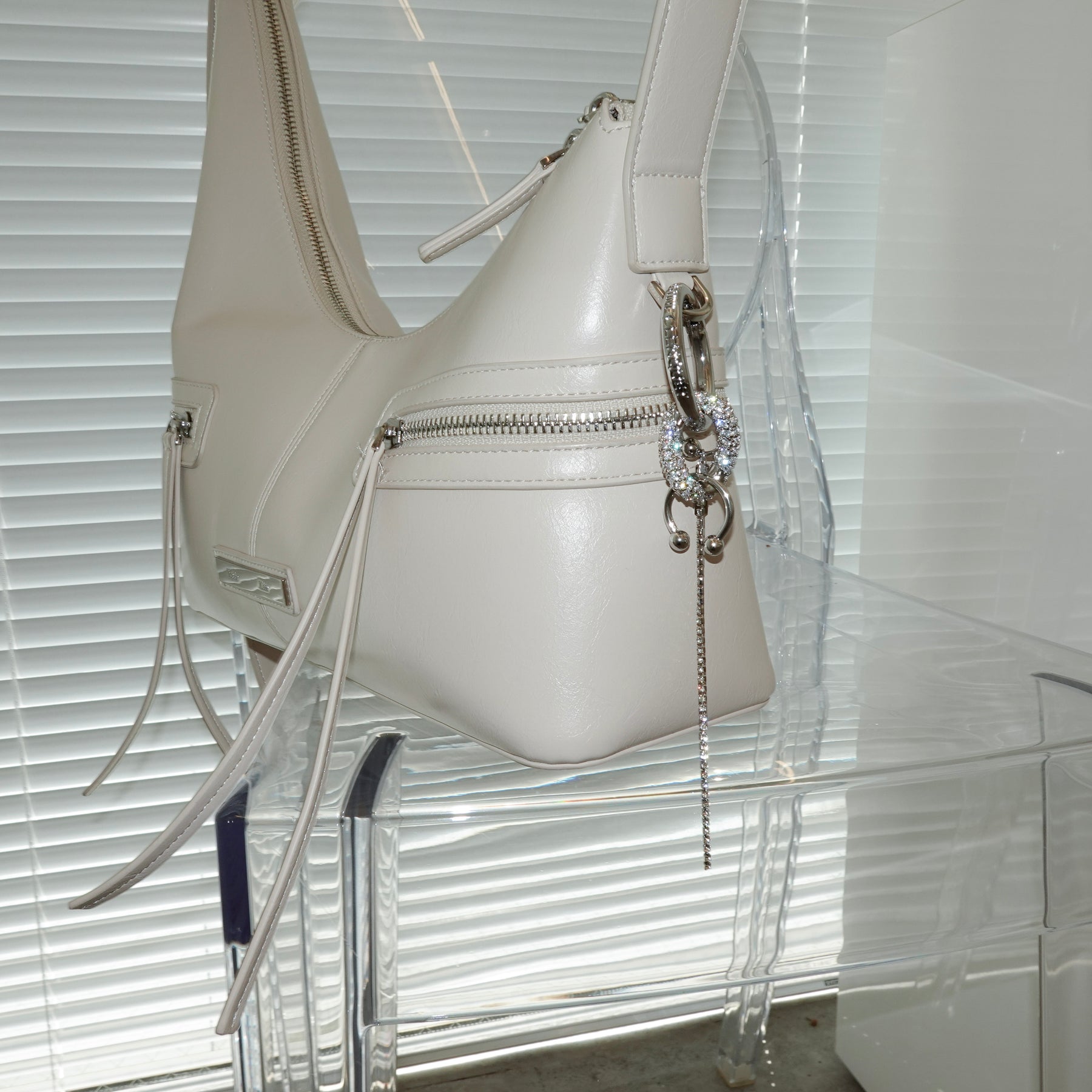 チェーンの垂れるデザインの大ぶりなキーホルダー。バッグへのアクセントにもおすすめです。