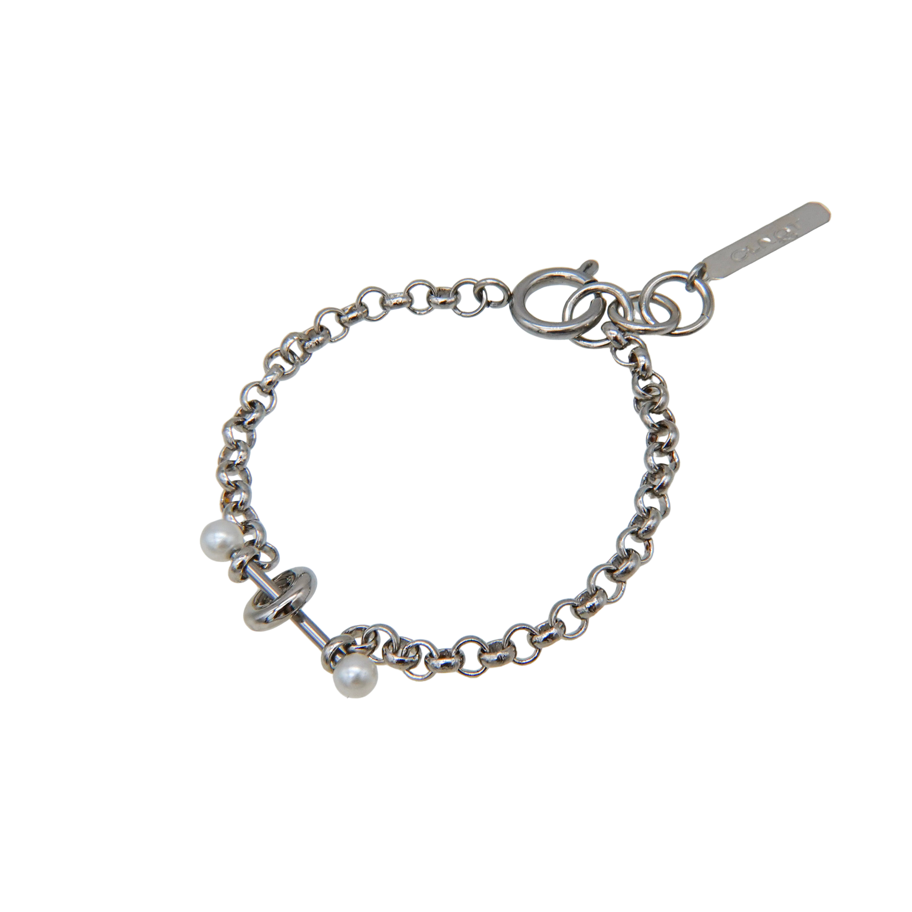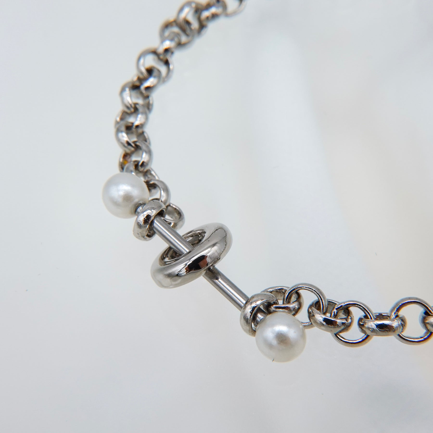 クリスタルパールのついたボディピアスがポイントのシンプルなブレスレット。