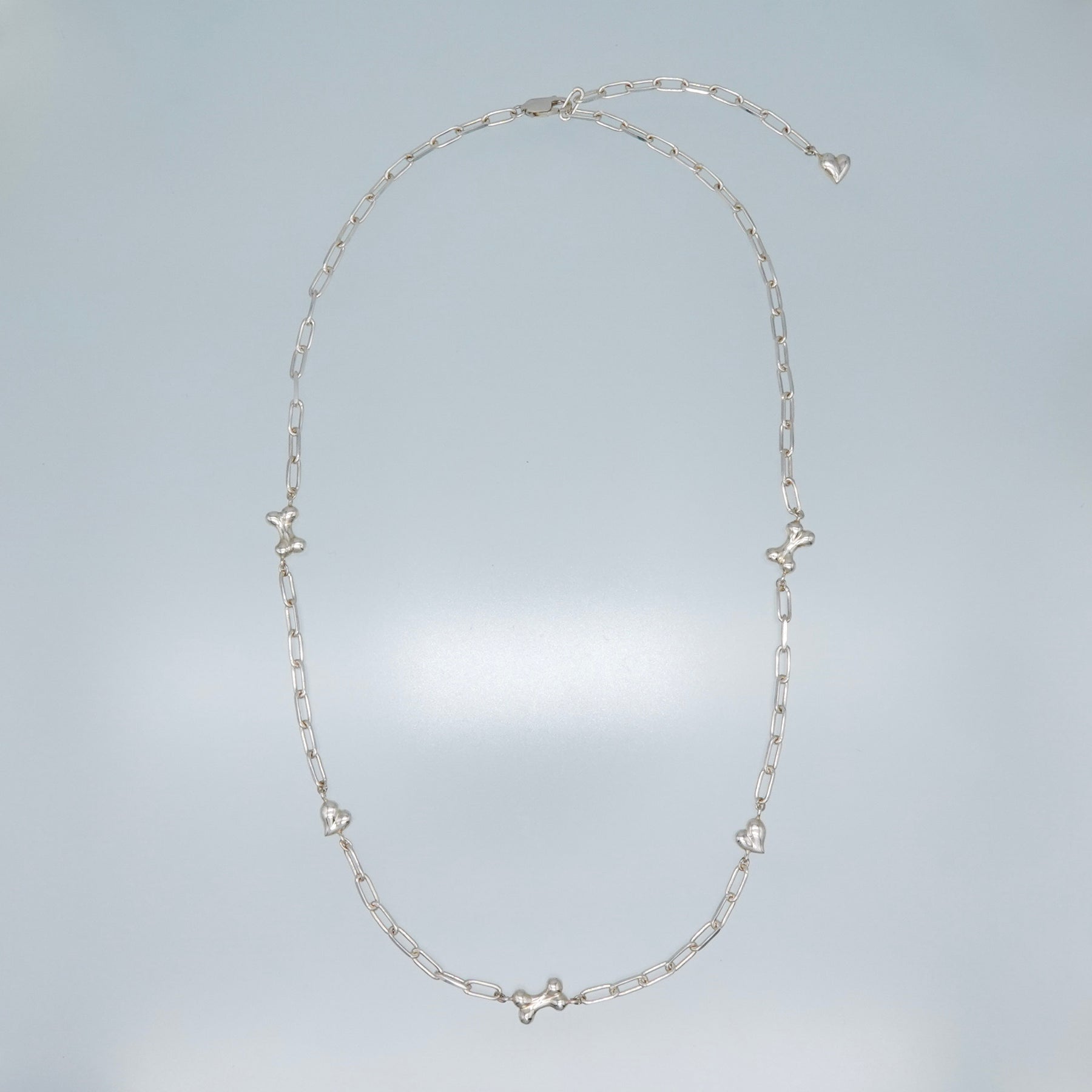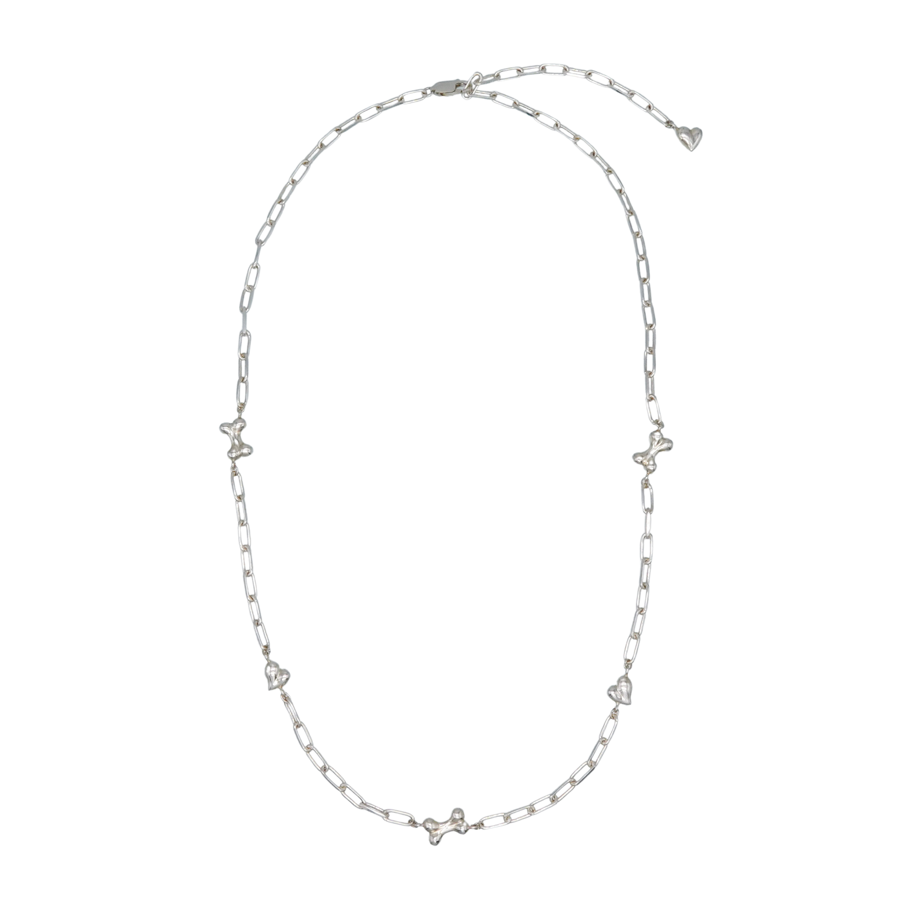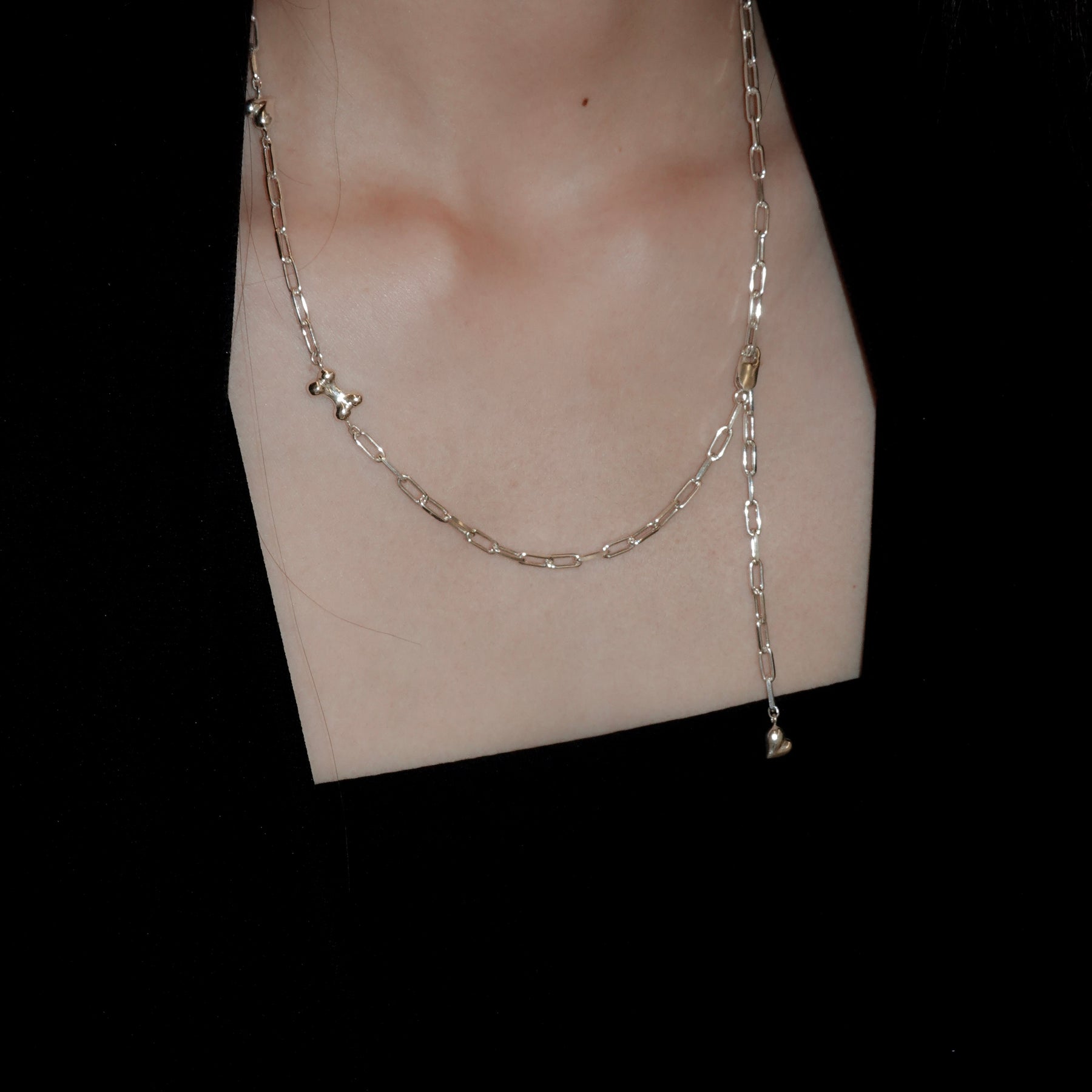 不滅のアイコン、骨やハートを再構築したRE:PARTSコレクション。 モチーフとほぼ同サイズのチェーンを合わせ、程よい存在感を追求したデザインです。 お好みの長さでご着用いただけ、ラリアット風のアレンジもお楽しみいただけます。