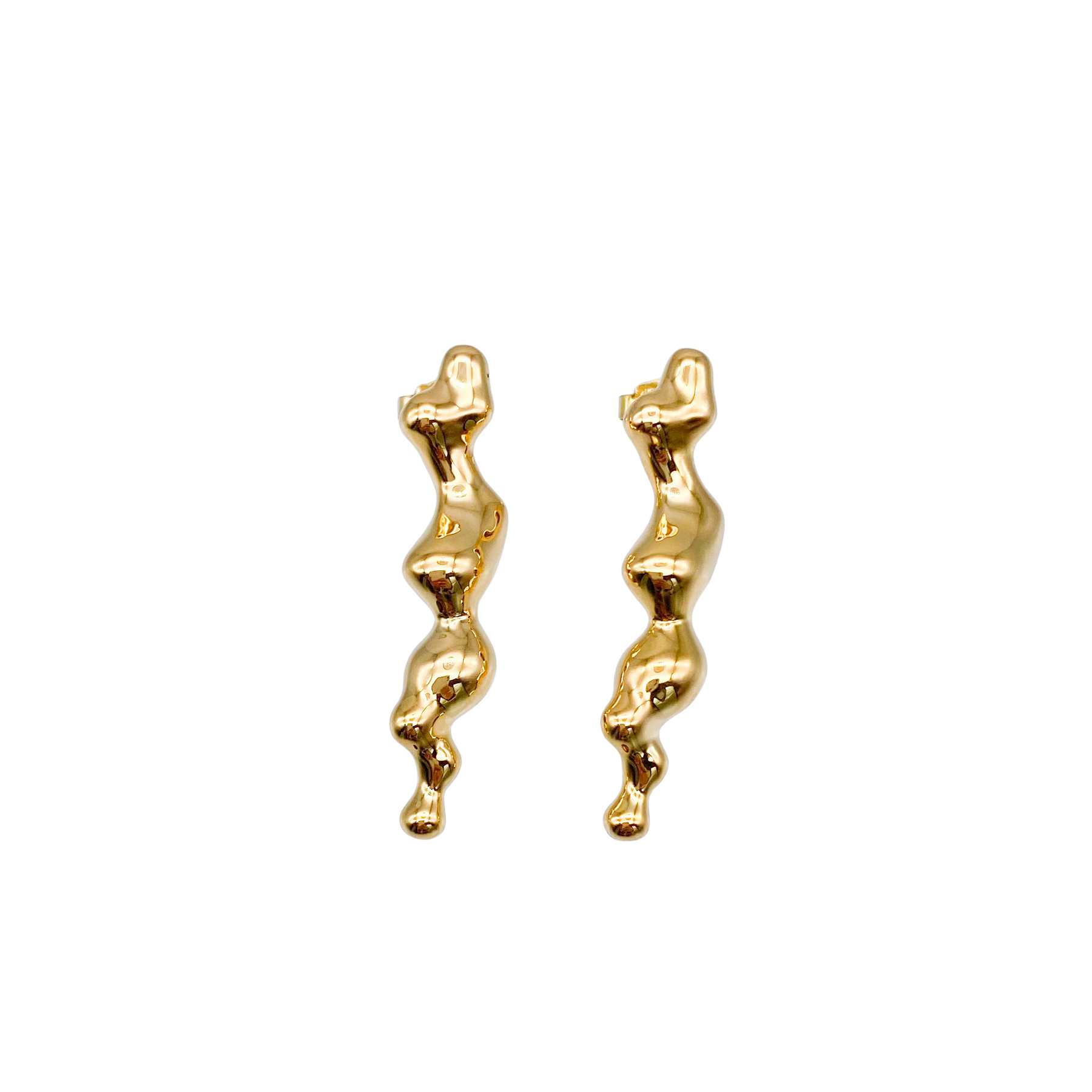 流れる水が凍りつく瞬間を表現したピアス。カジュアルな装いにもさりげなくラグジュアリー感を漂わせてくれるアイテムです。