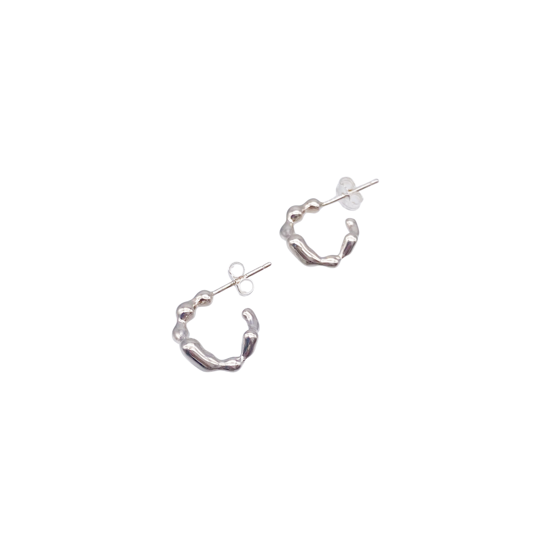 デイリーユースにぴったりの、彫刻のようなシルエットのフープピアス。