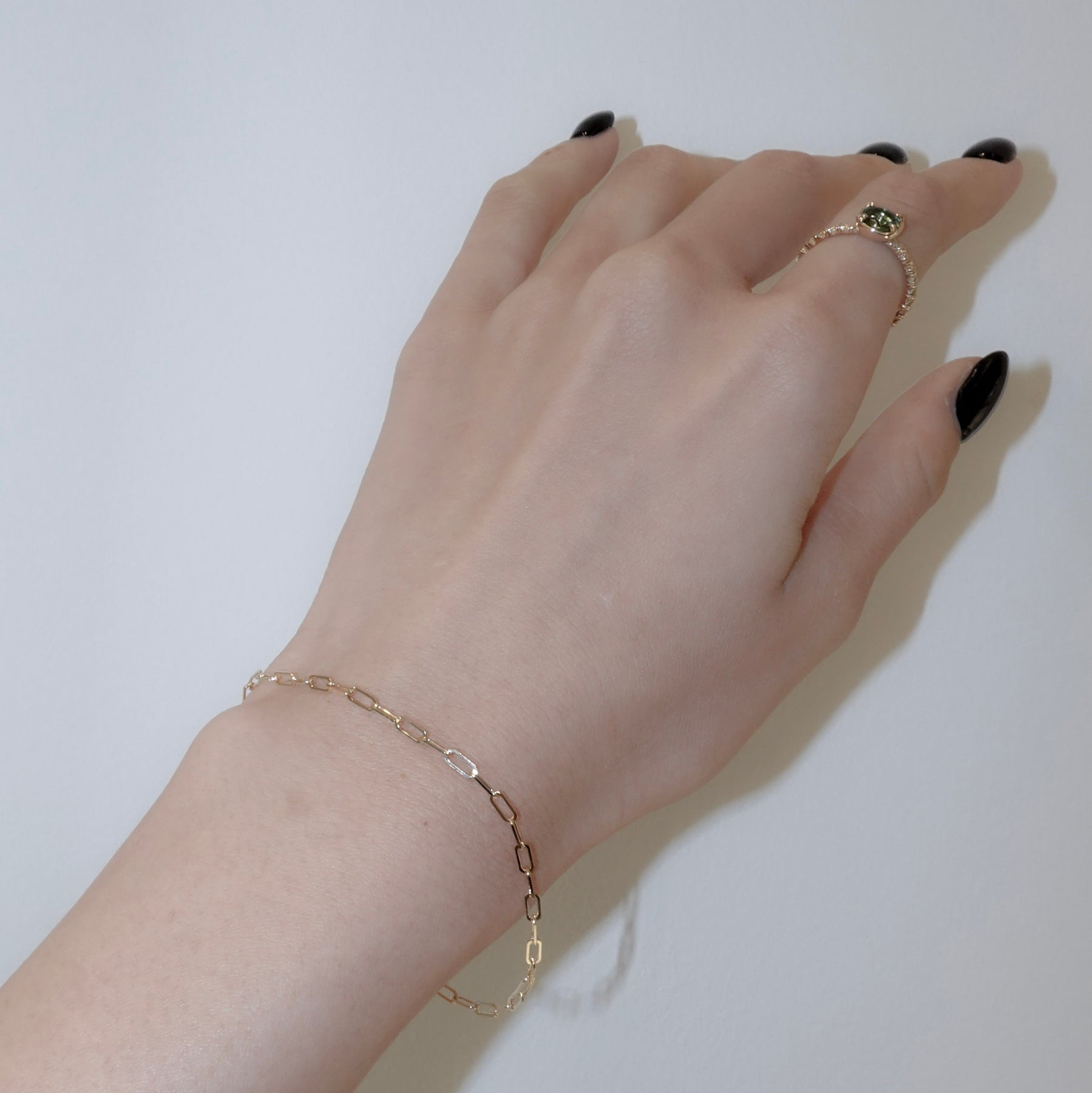 K10の優しいゴールドが肌に馴染み、手元のさりげない華やかさを添えます。