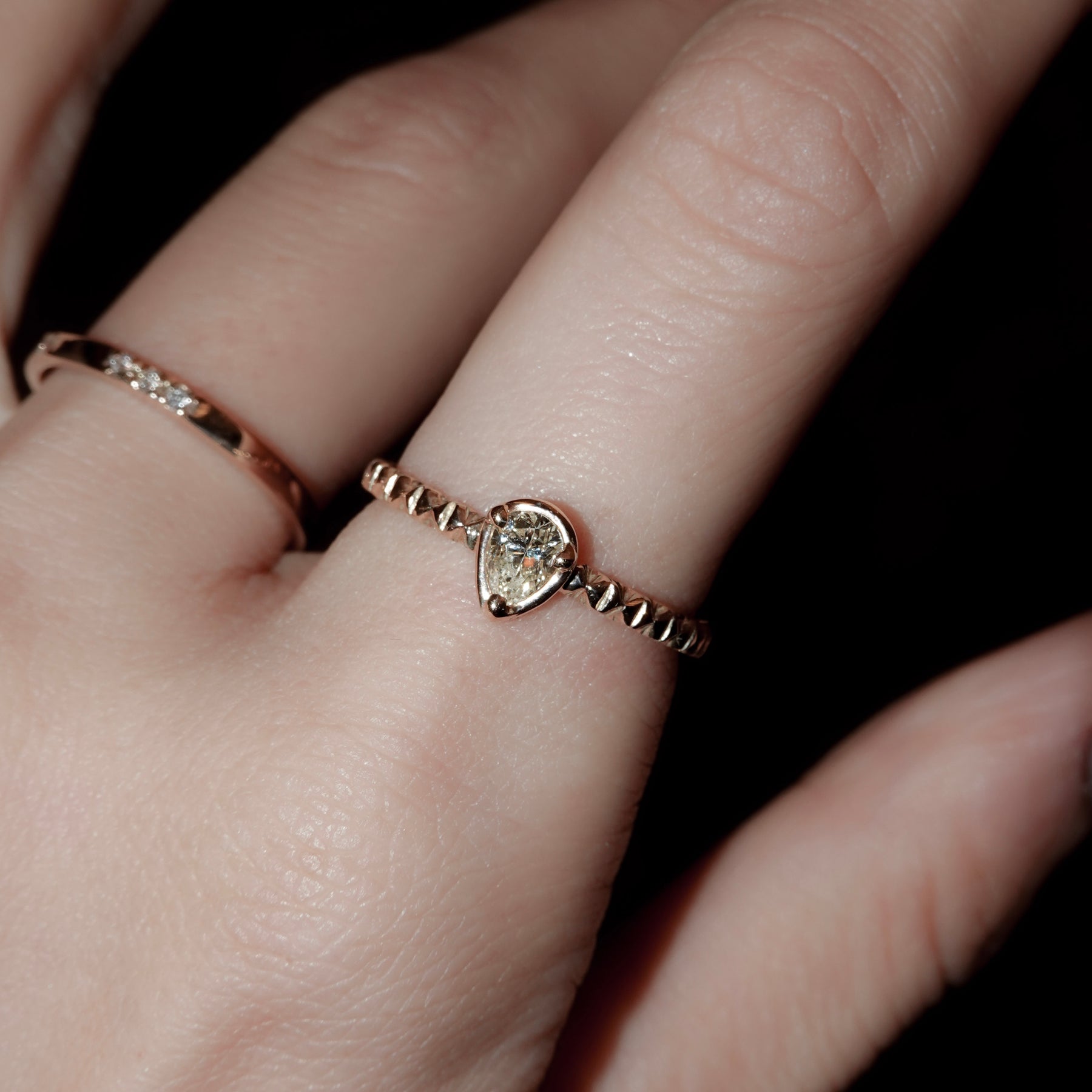 0.258ctのボリュームのある少しイエローが入ったドロップ型のファンシーカラーダイヤモンド。
