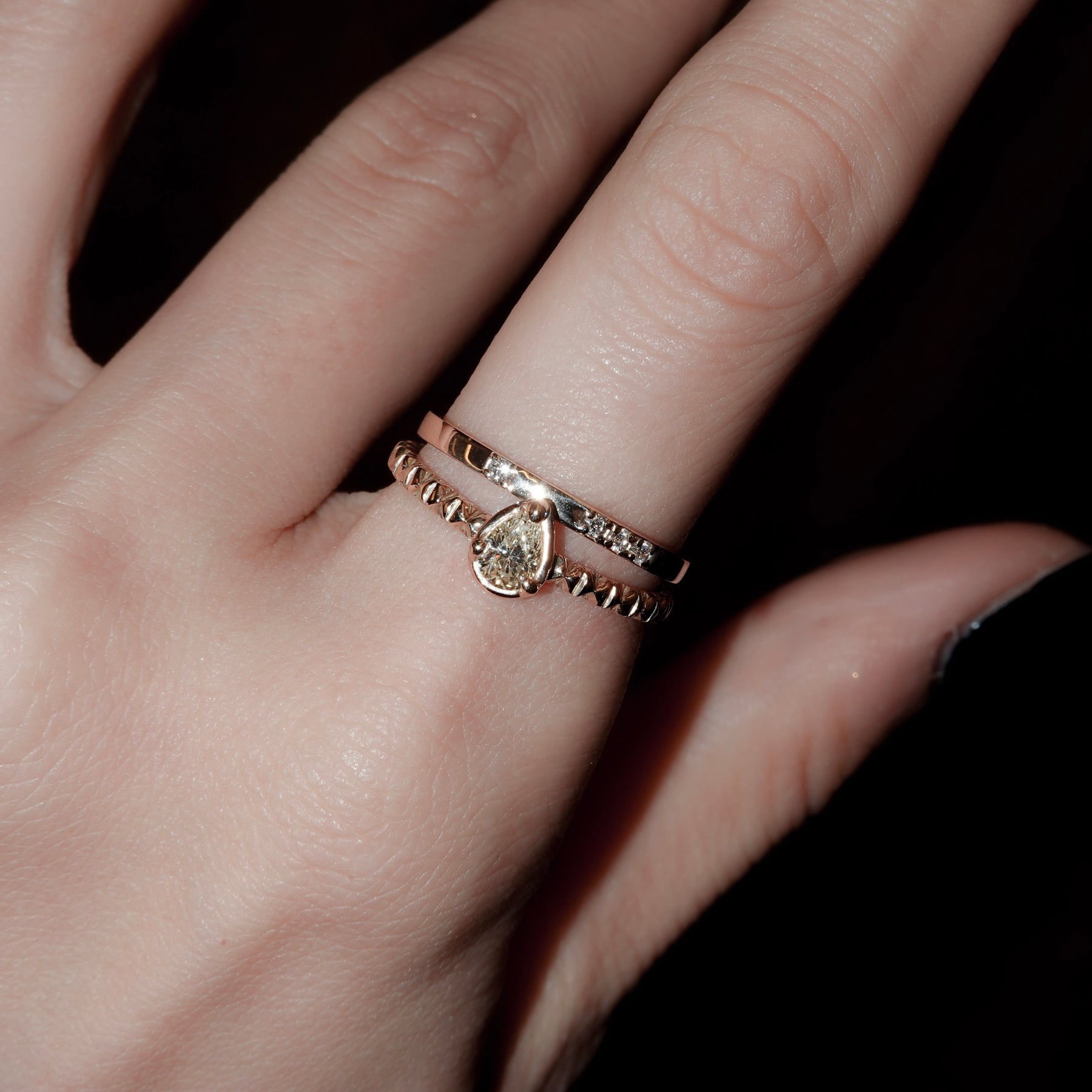 イタリア・フィレンツェの伝統技法、フィレンツェ彫りを施したダイヤリング。