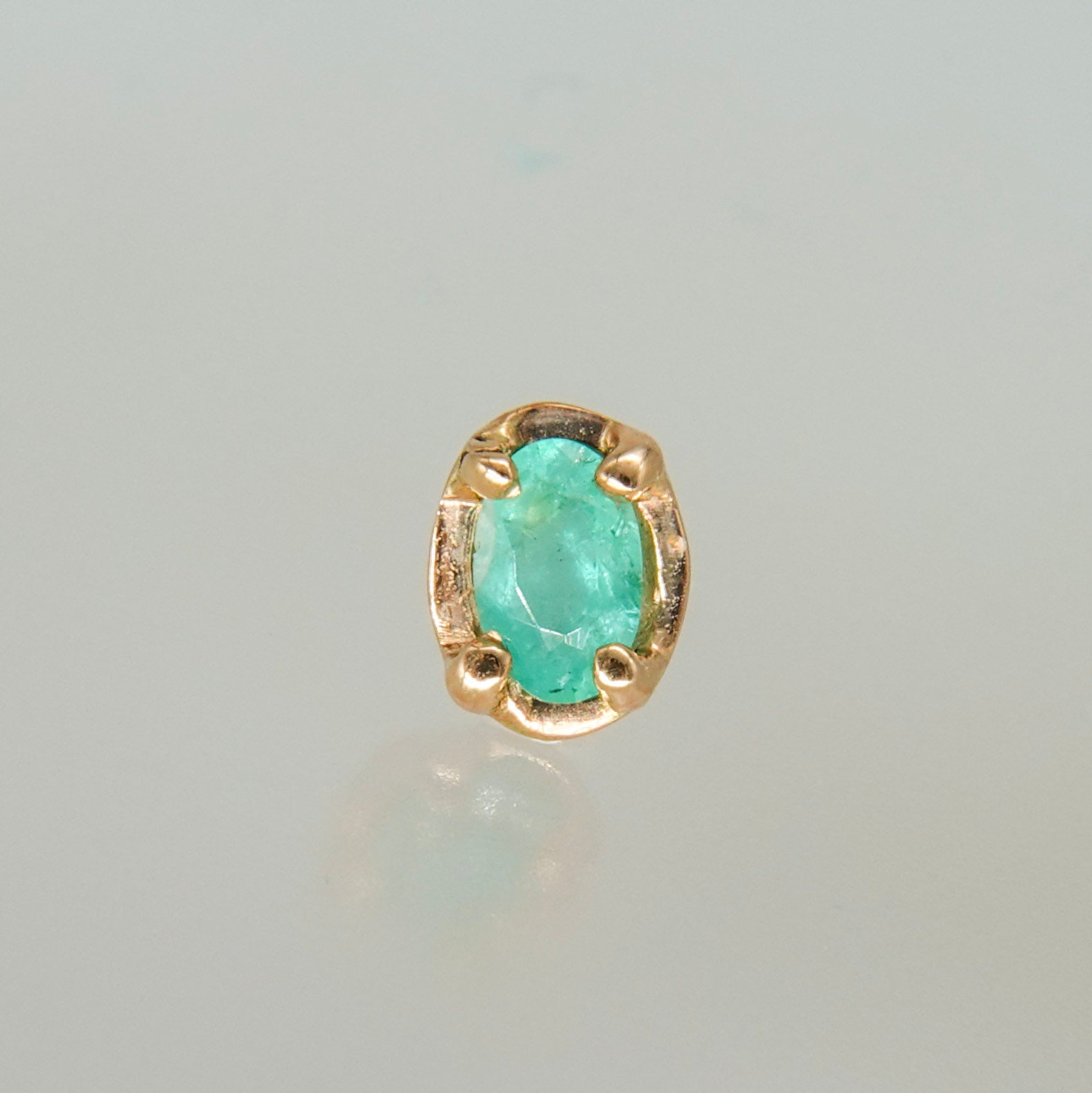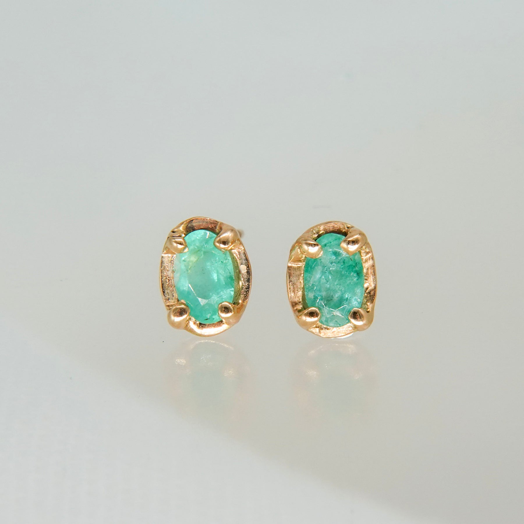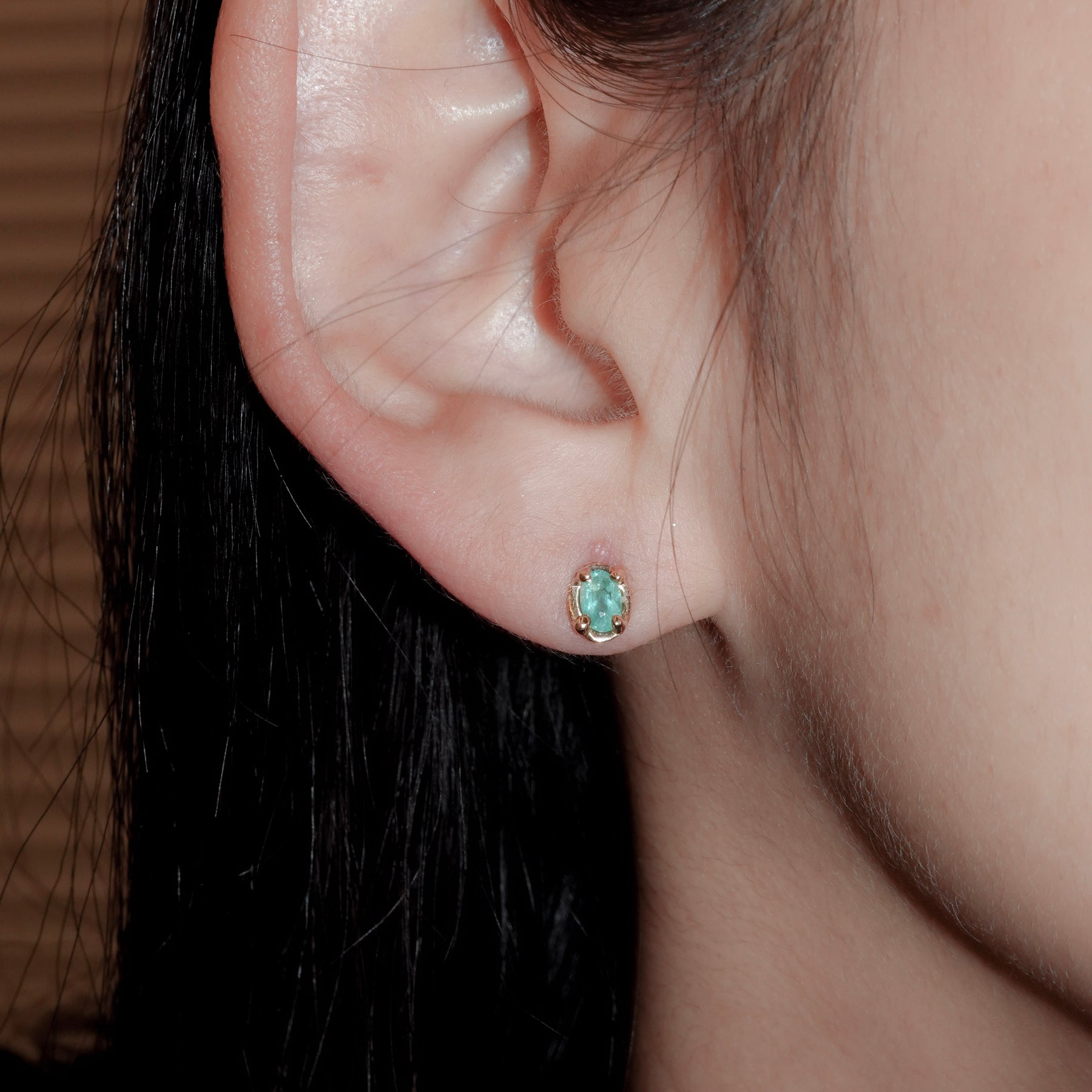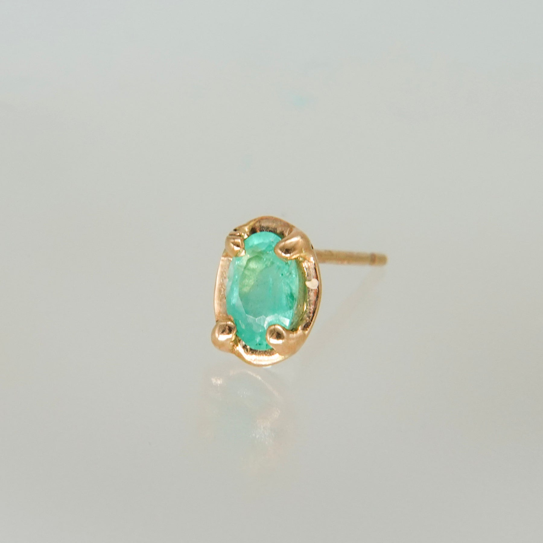 オーバルカットの淡いグリーンのエメラルドを使用したK10のピアス。