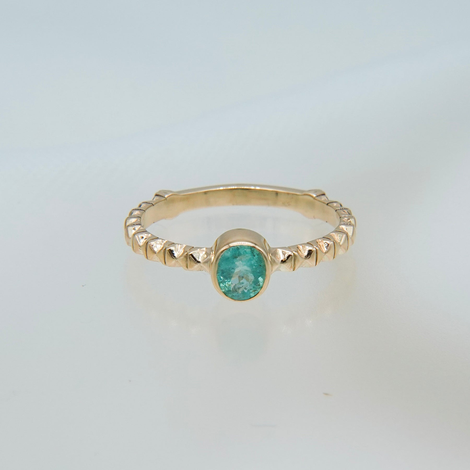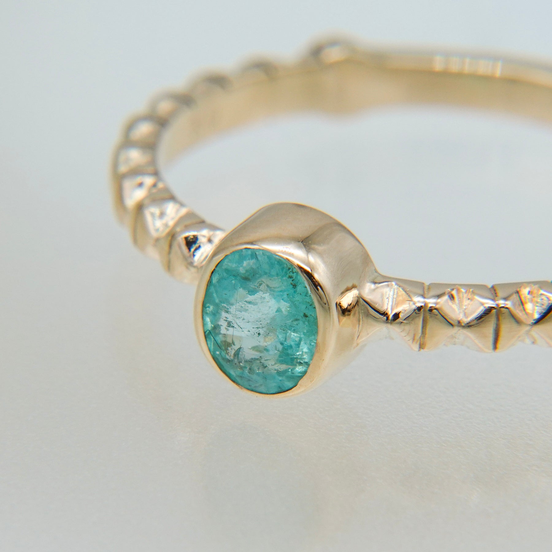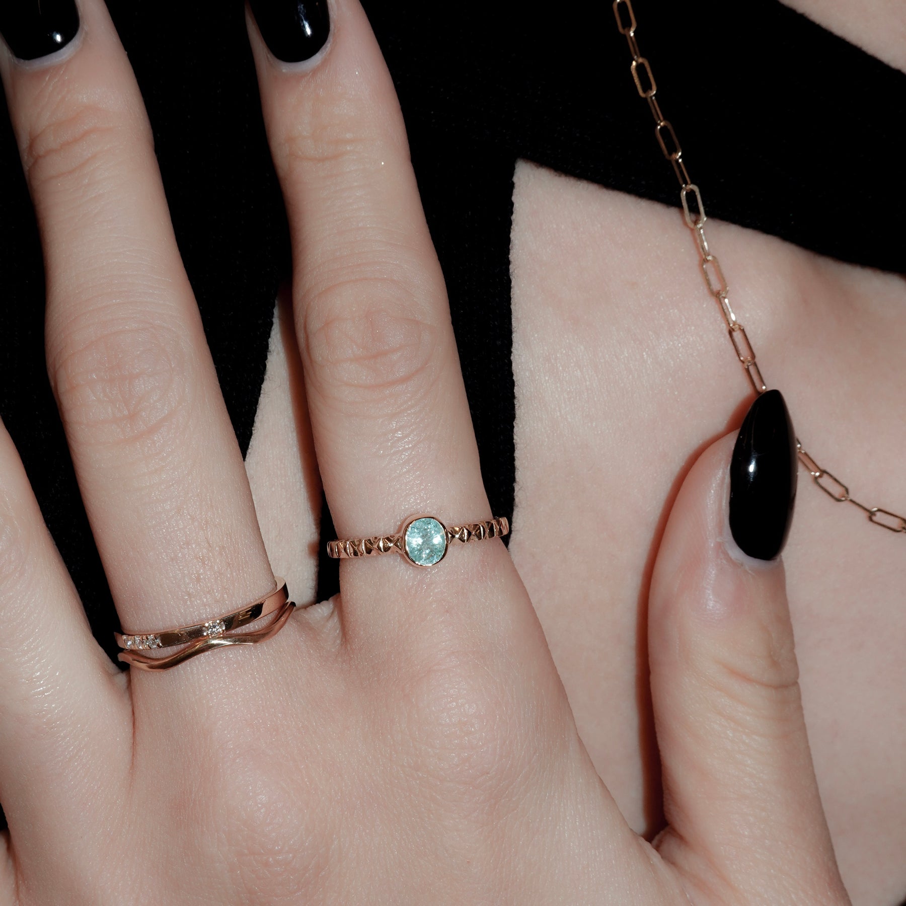 イタリア・フィレンツェの伝統技法、フィレンツェ彫りを施したパライバトルマリンのリング。 オーバルカットの美しいネオンブルーのパライバトルマリン。 アームには全ての仕上げ後に手彫りによる彫りが施されており、全体に石が入っている様な煌めきがあります。 8号〜16号までサイズ直しが可能です(納期約1ヶ月)。ご希望の場合はお問い合わせください。
