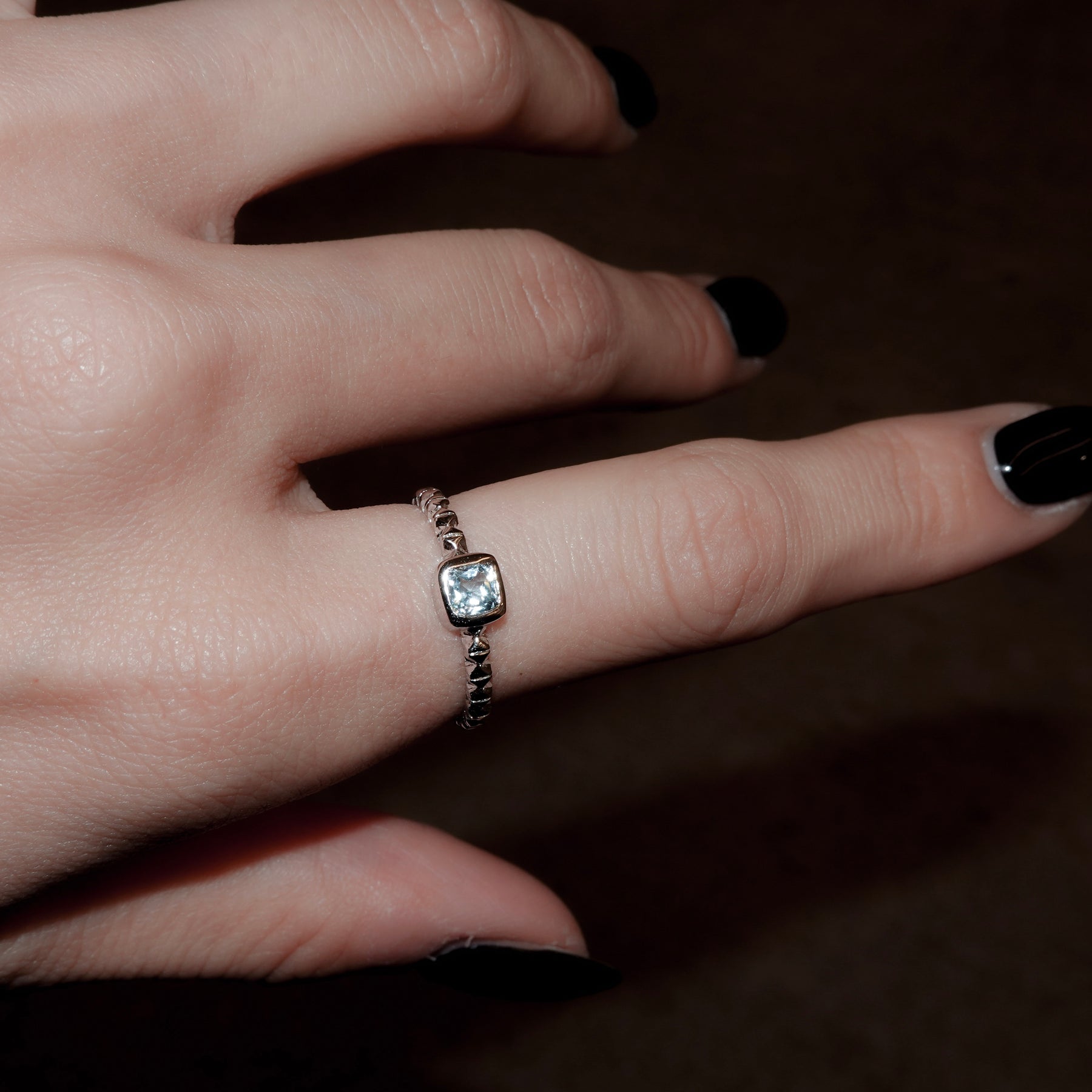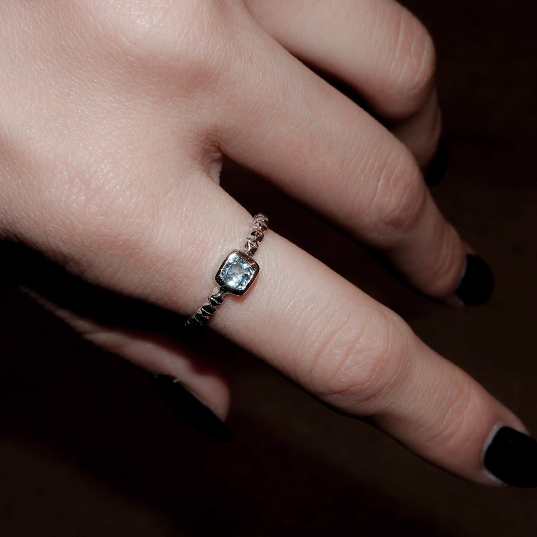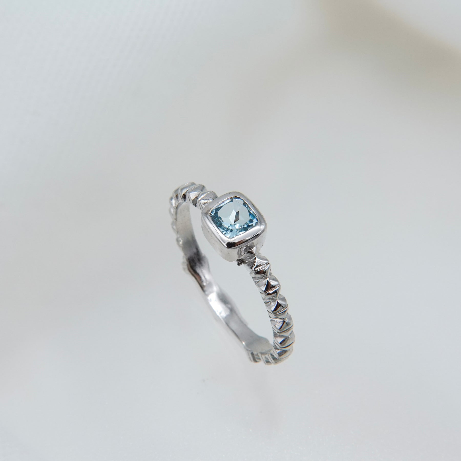イタリア・フィレンツェの伝統技法、フィレンツェ彫りを施したブルートパーズのリング。