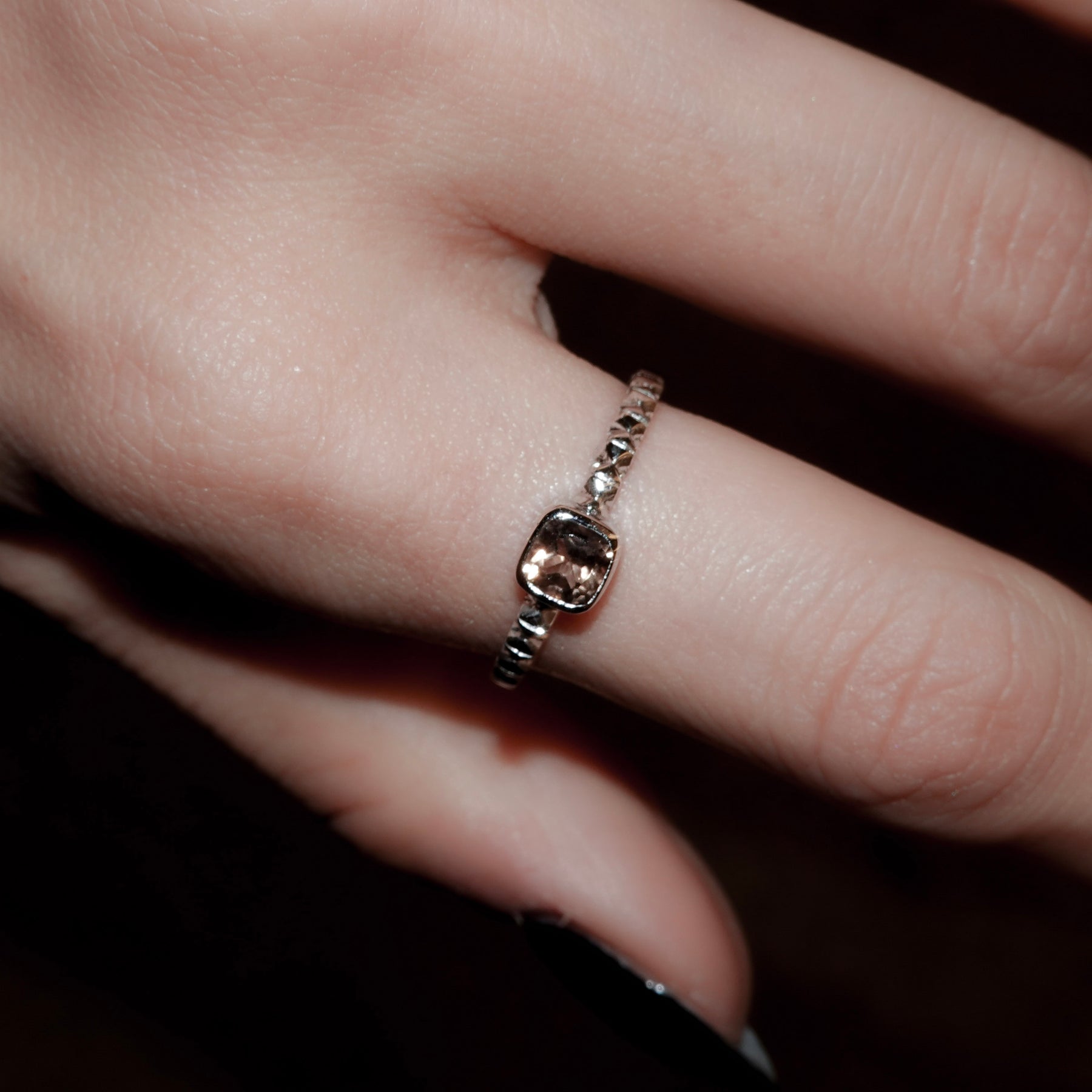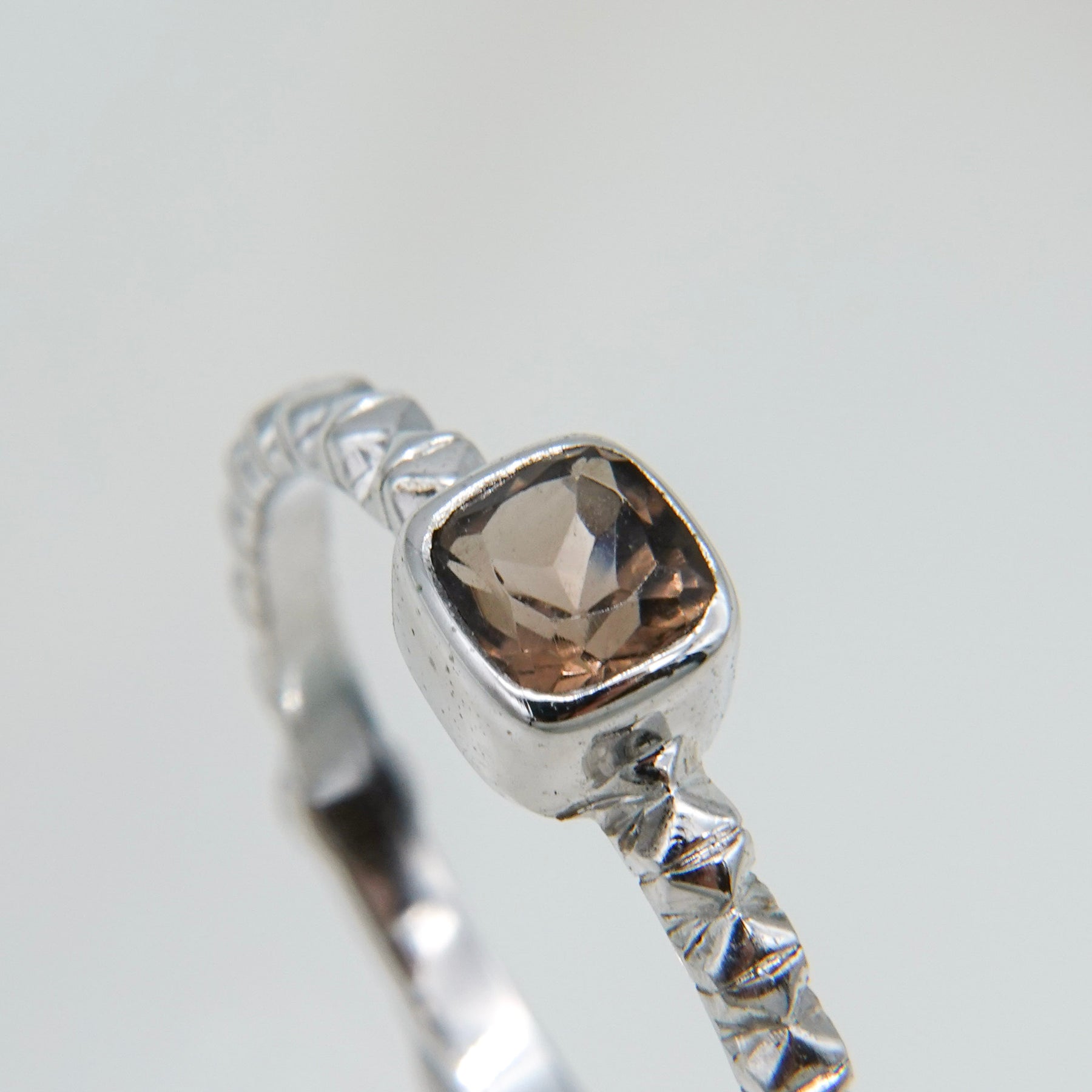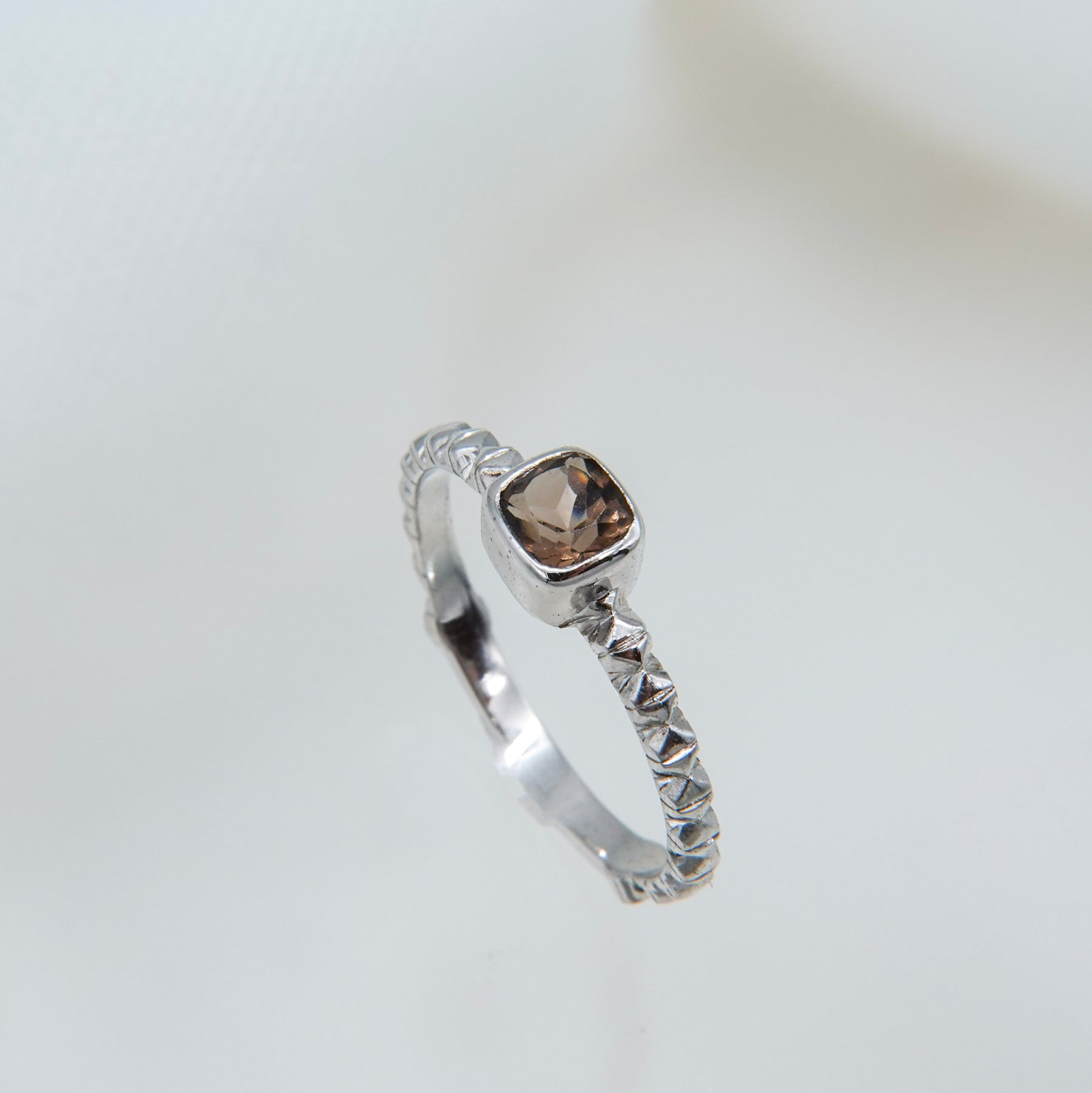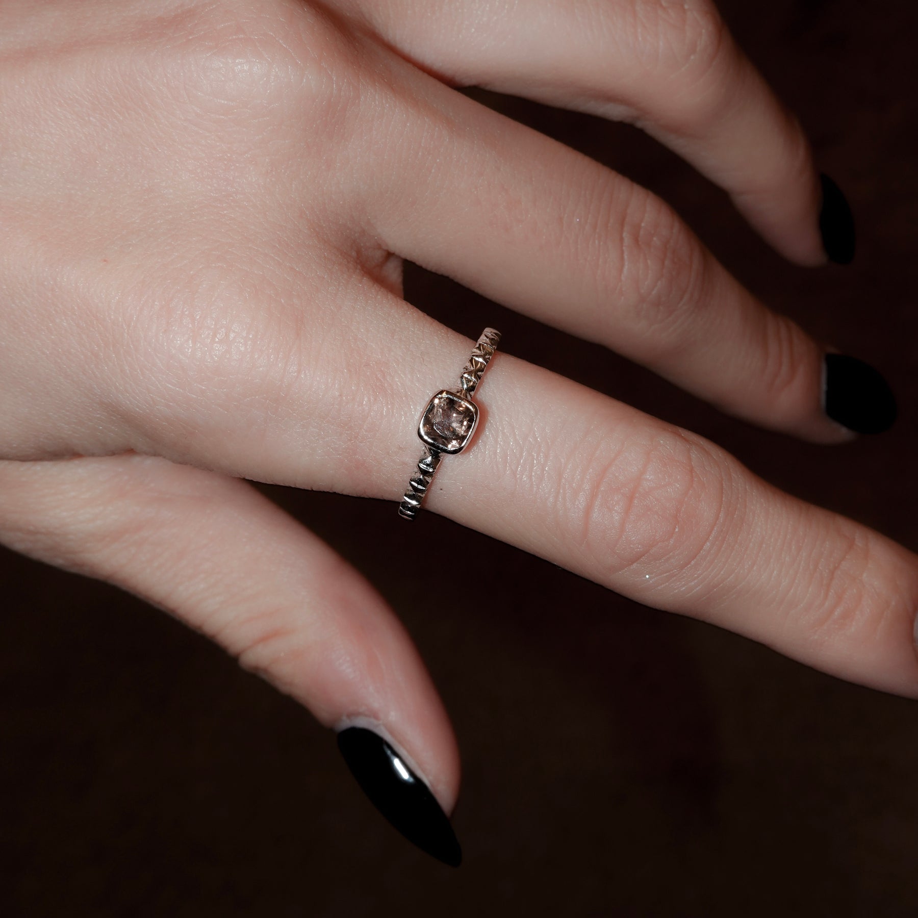 クッションカットの肌馴染みの良いブラウンのスモーキークオーツ。