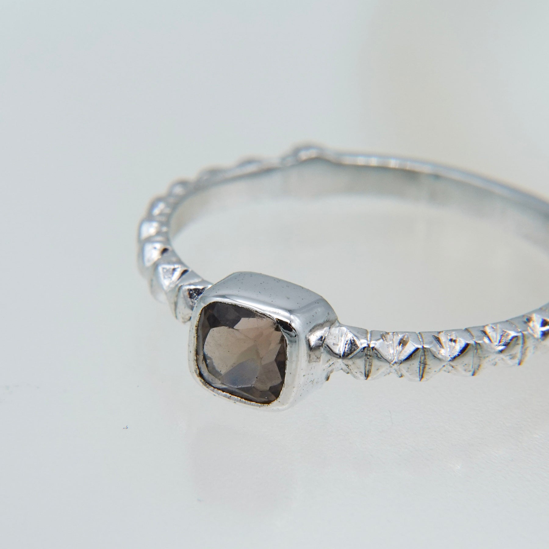 イタリア・フィレンツェの伝統技法、フィレンツェ彫りを施したスモーキークオーツのリング。