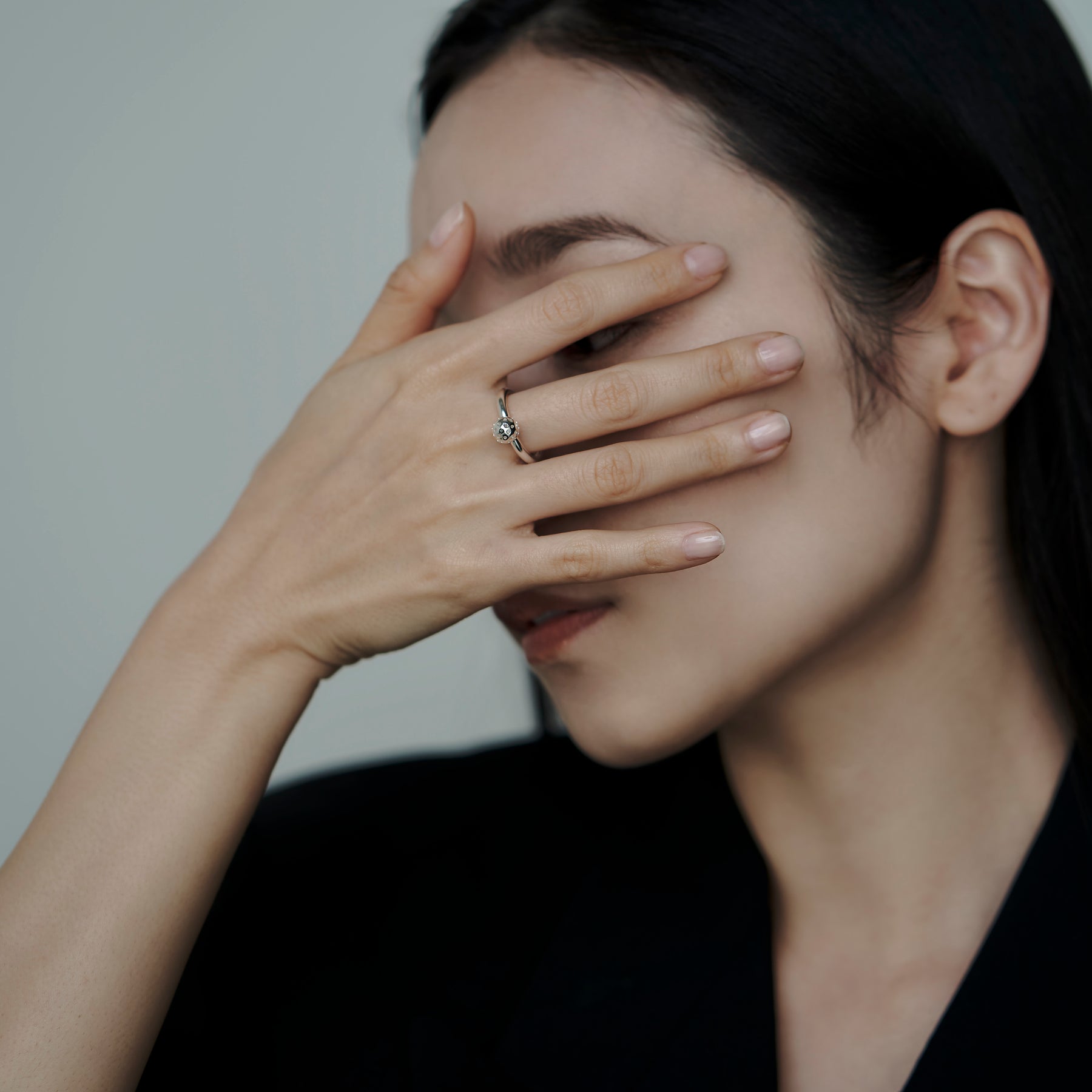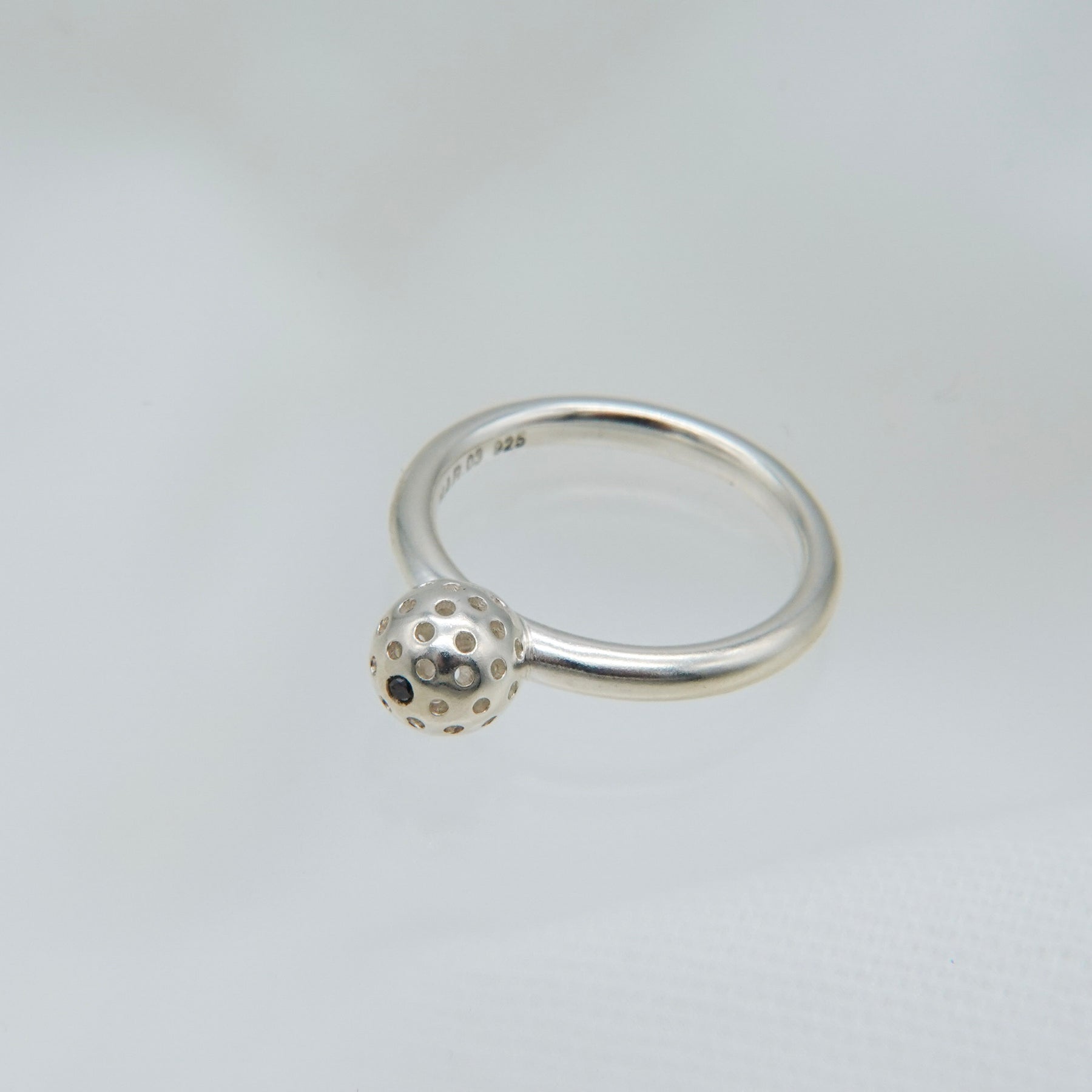 ブランドのアイコニックとなるパンチングデザインが施されたリング。ボール状のパンチング部分にはブラックダイアモンド(0.012ct/約1.5mm)をセッティングし、手元に上品な存在感を添えます。
