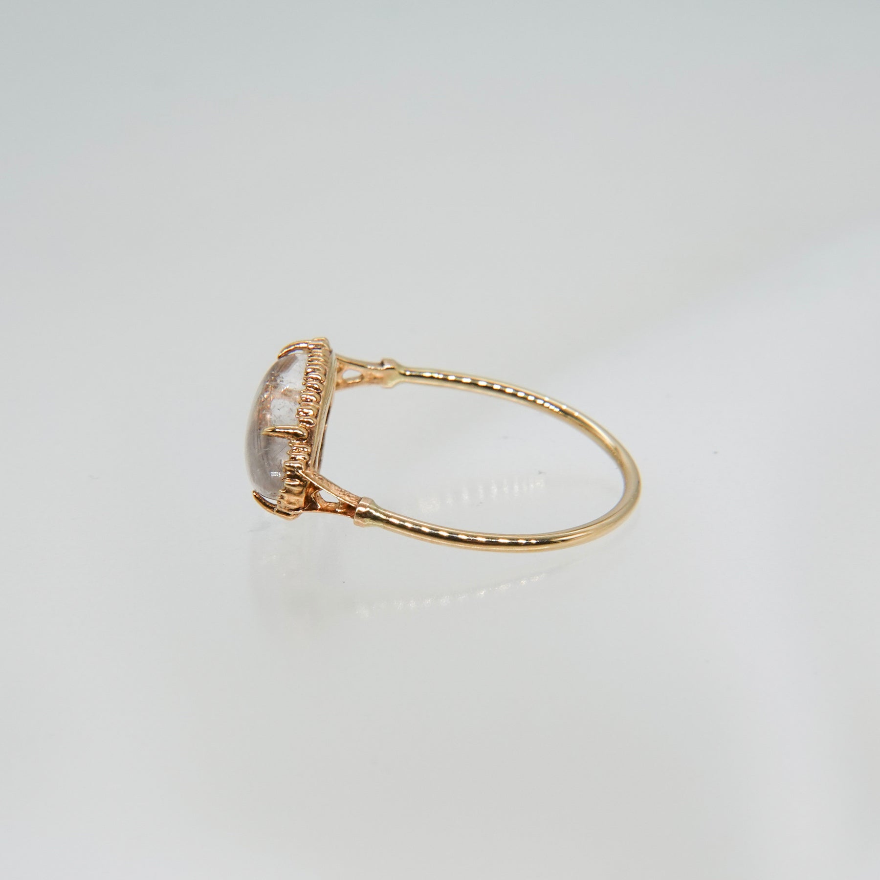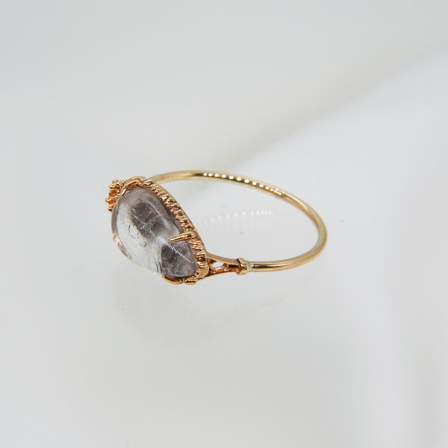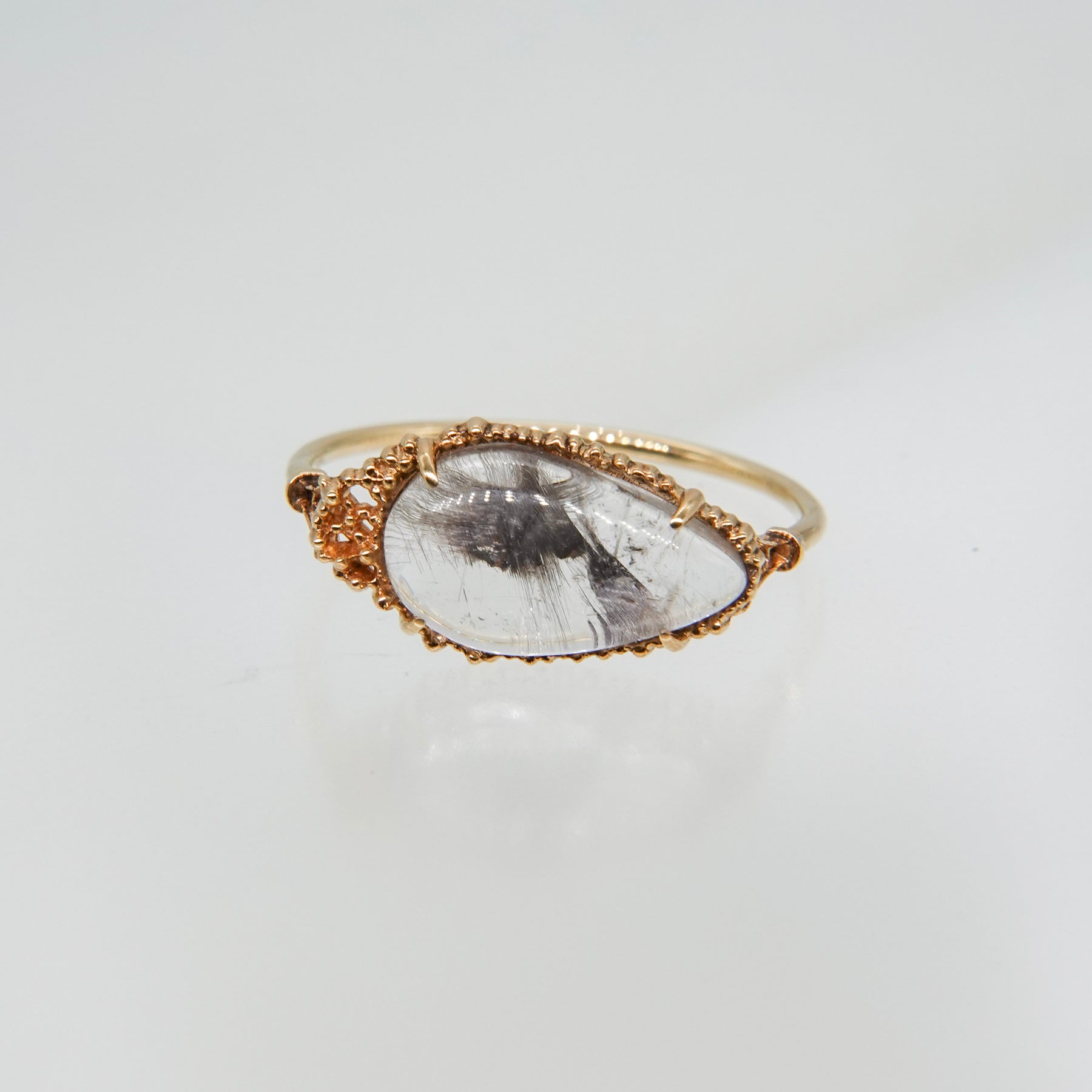 みずみずしい透明感と繊細な輝きを湛える、ペアシェイプ型のプラチナルチルクォーツのリング。