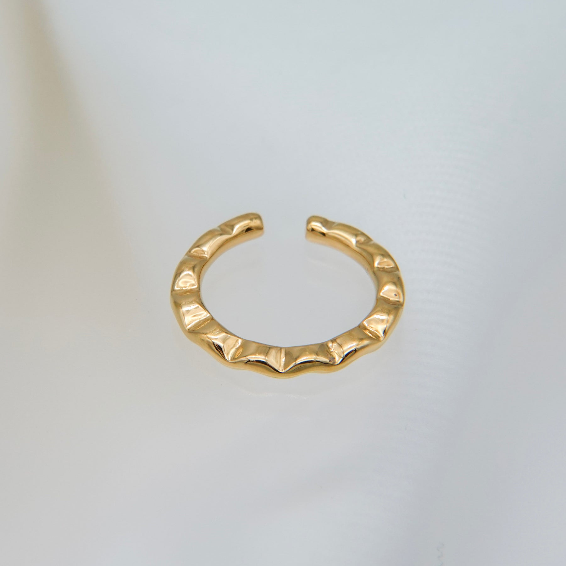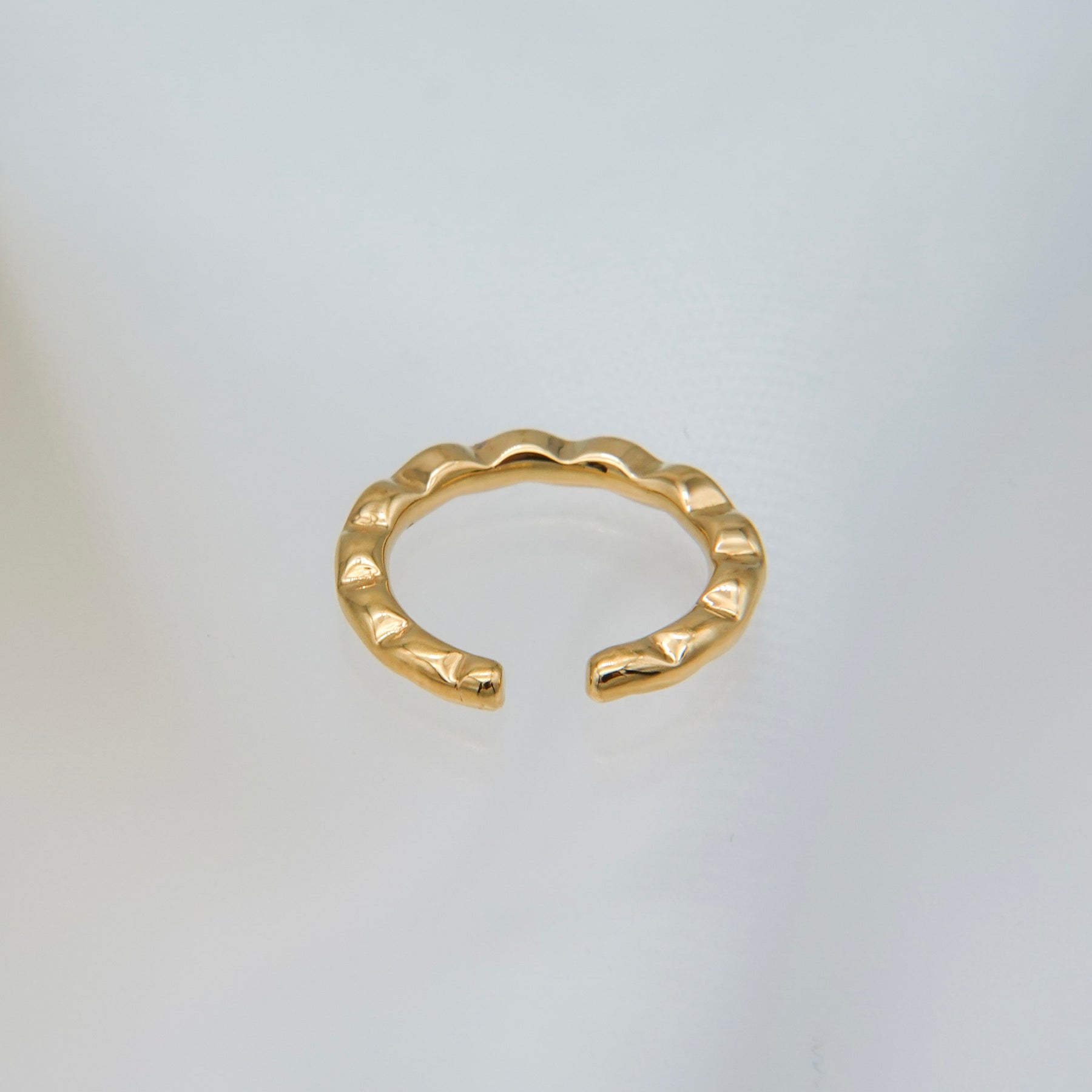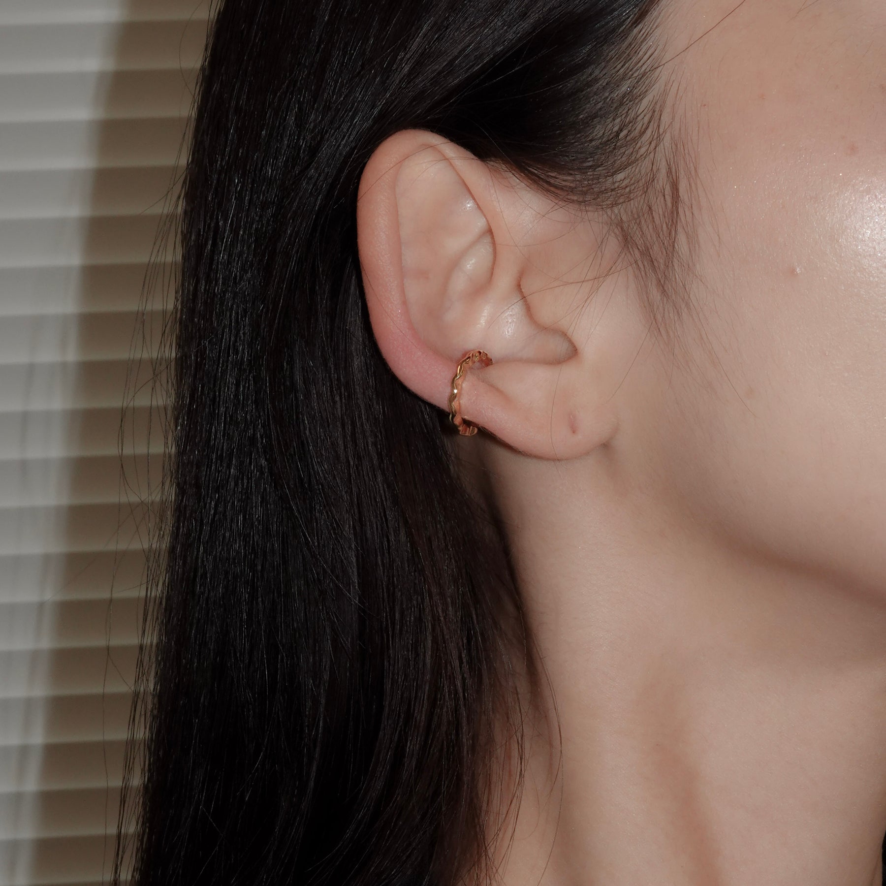 クラフト感のあるパターンが施されたイヤカフ。 控えめなサイズで他のイヤージュエリーとの重ねづけもしやすく、デイリーに使い回すことができます。