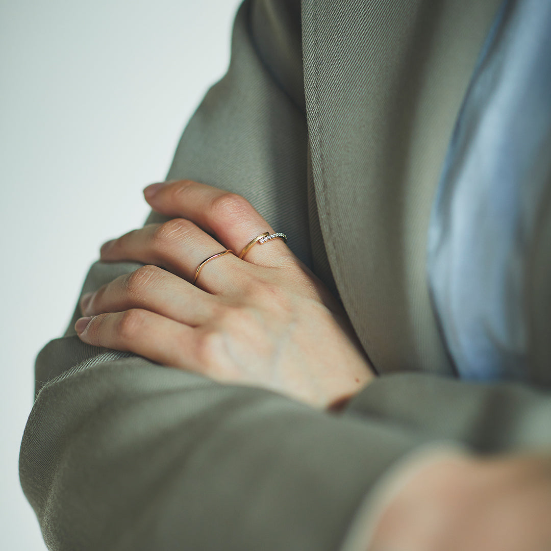 シンプルで日常に溶け込むデザインと、一流の職人たちによるこだわり抜かれたやわらかなカーブ、繊細な輝き、身体により添う着け心地を味わうことができる。
