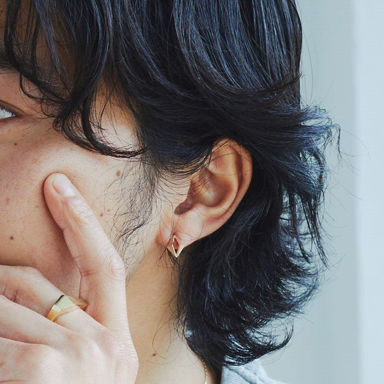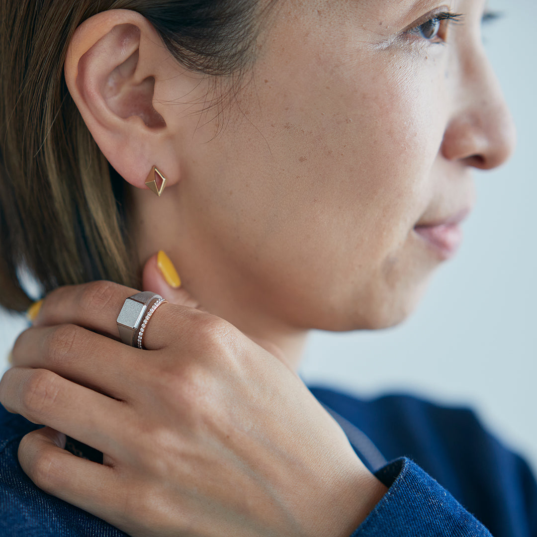 面とサイドのラインの異なる質感がしっかりと存在感を与えてくれるピアス。