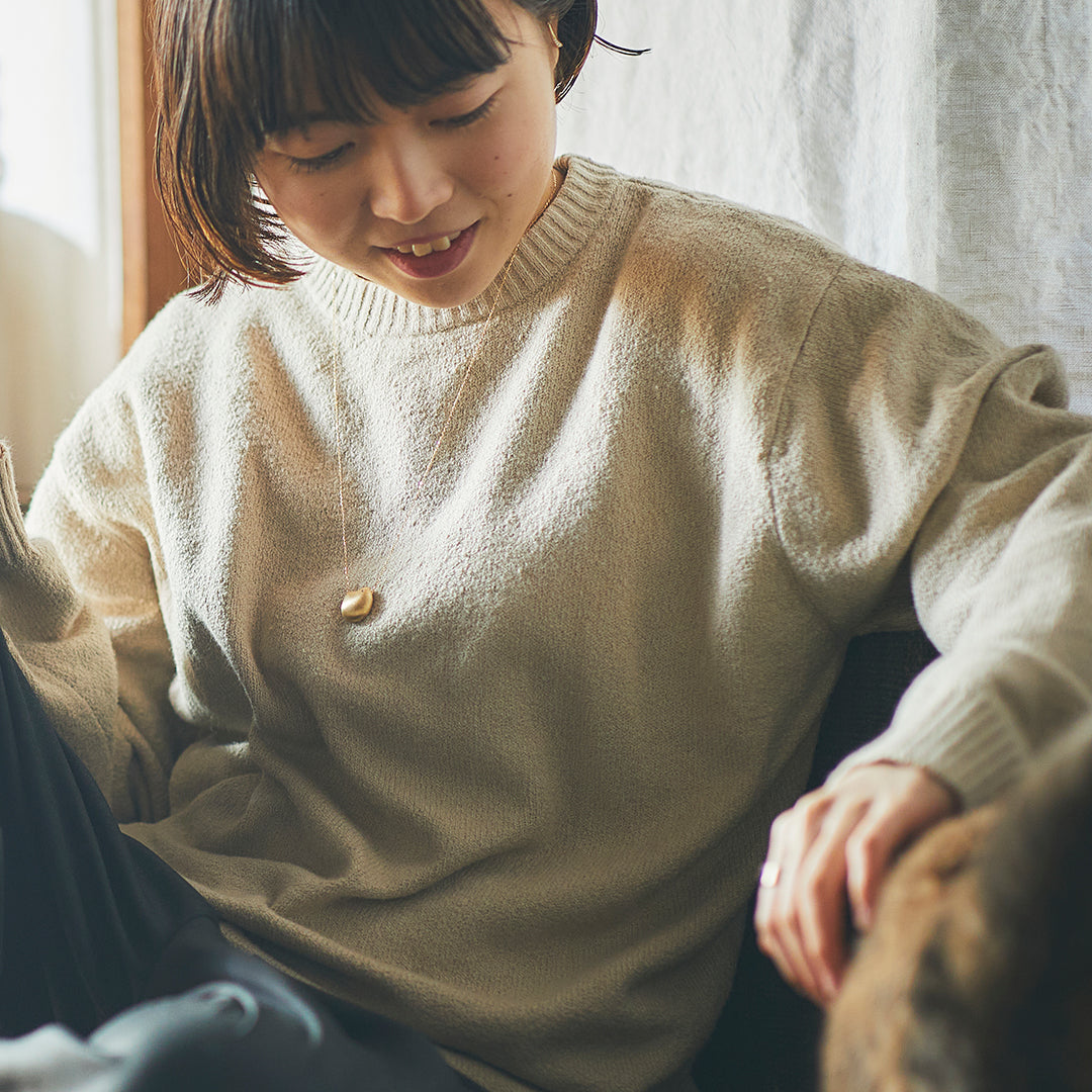 丸みがあるからこそゴールドの良さが引き立つデザインはロングネックレスで細い線と丸みの新しいバランスを生み出します。