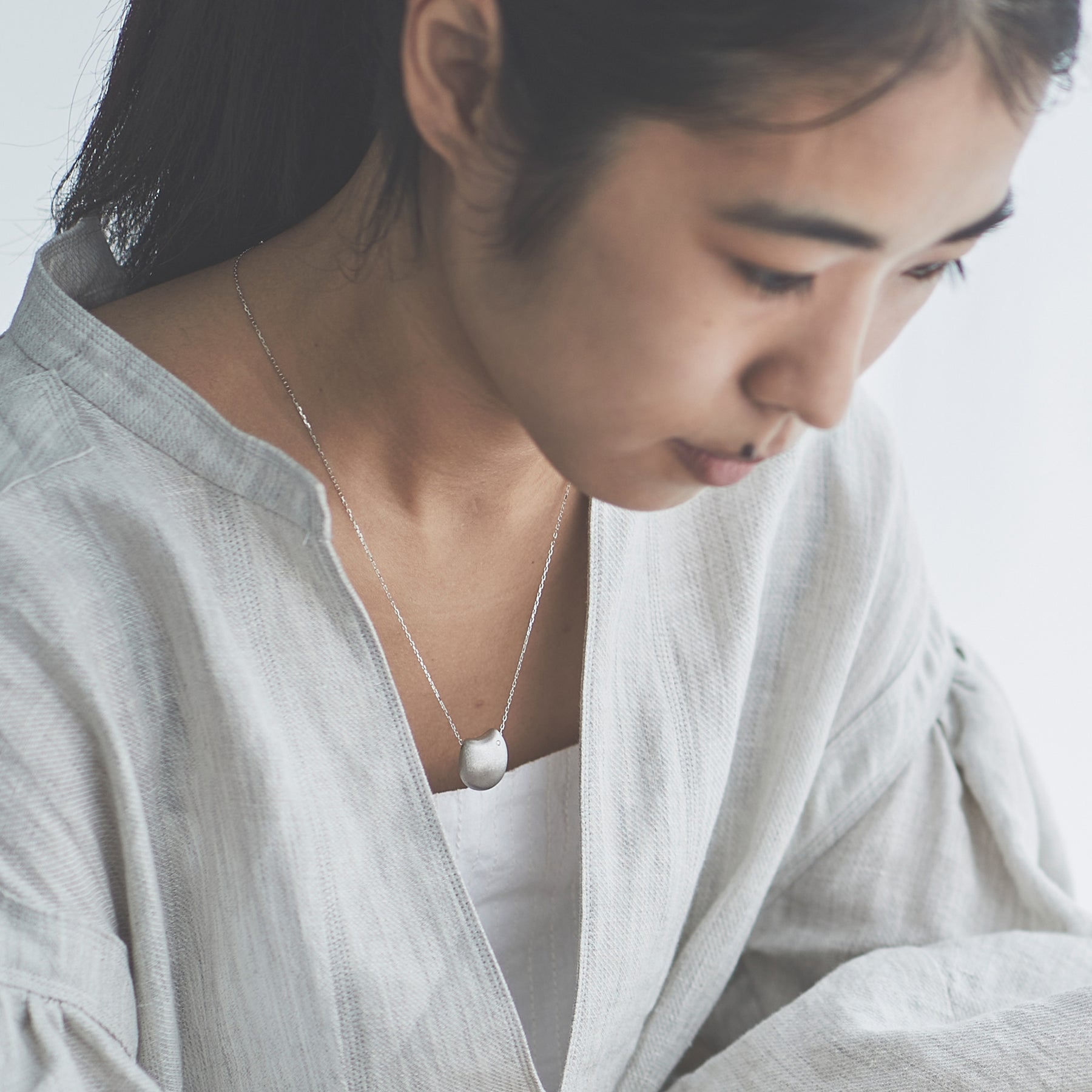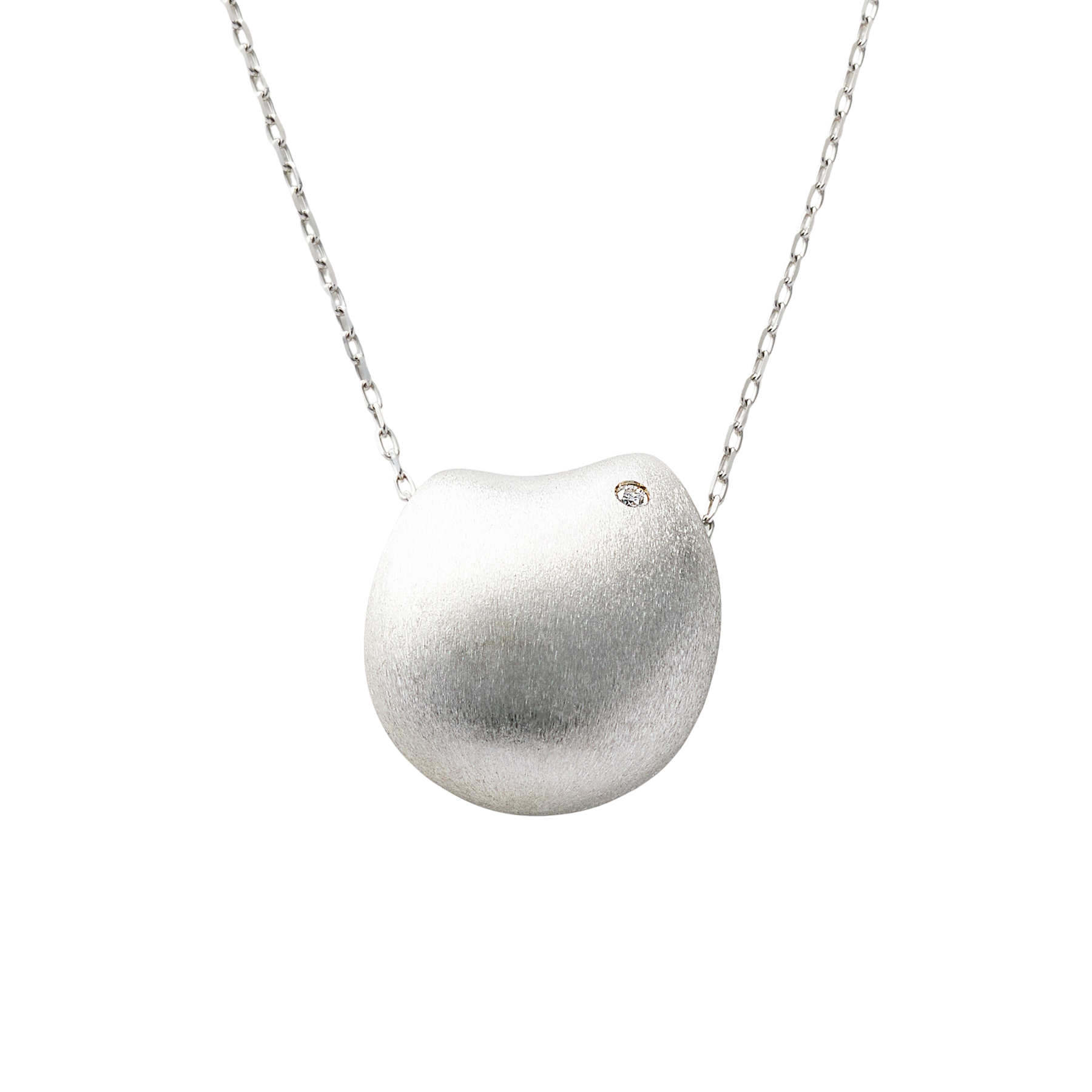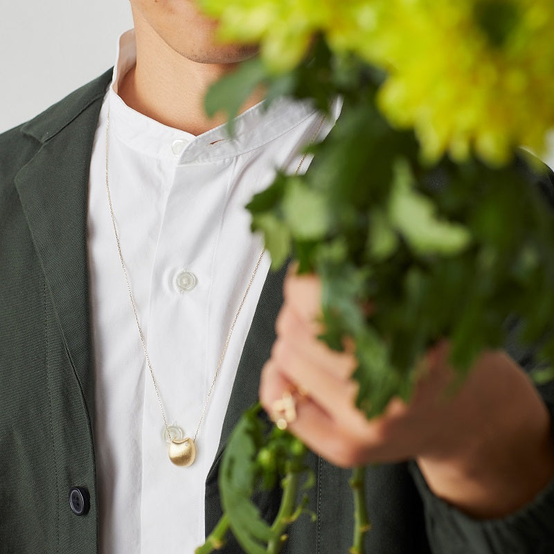 ぽってりとした丸みを生み出すために360°全面をムラなく艶消しのヘアラインで仕上げているペンダント。
