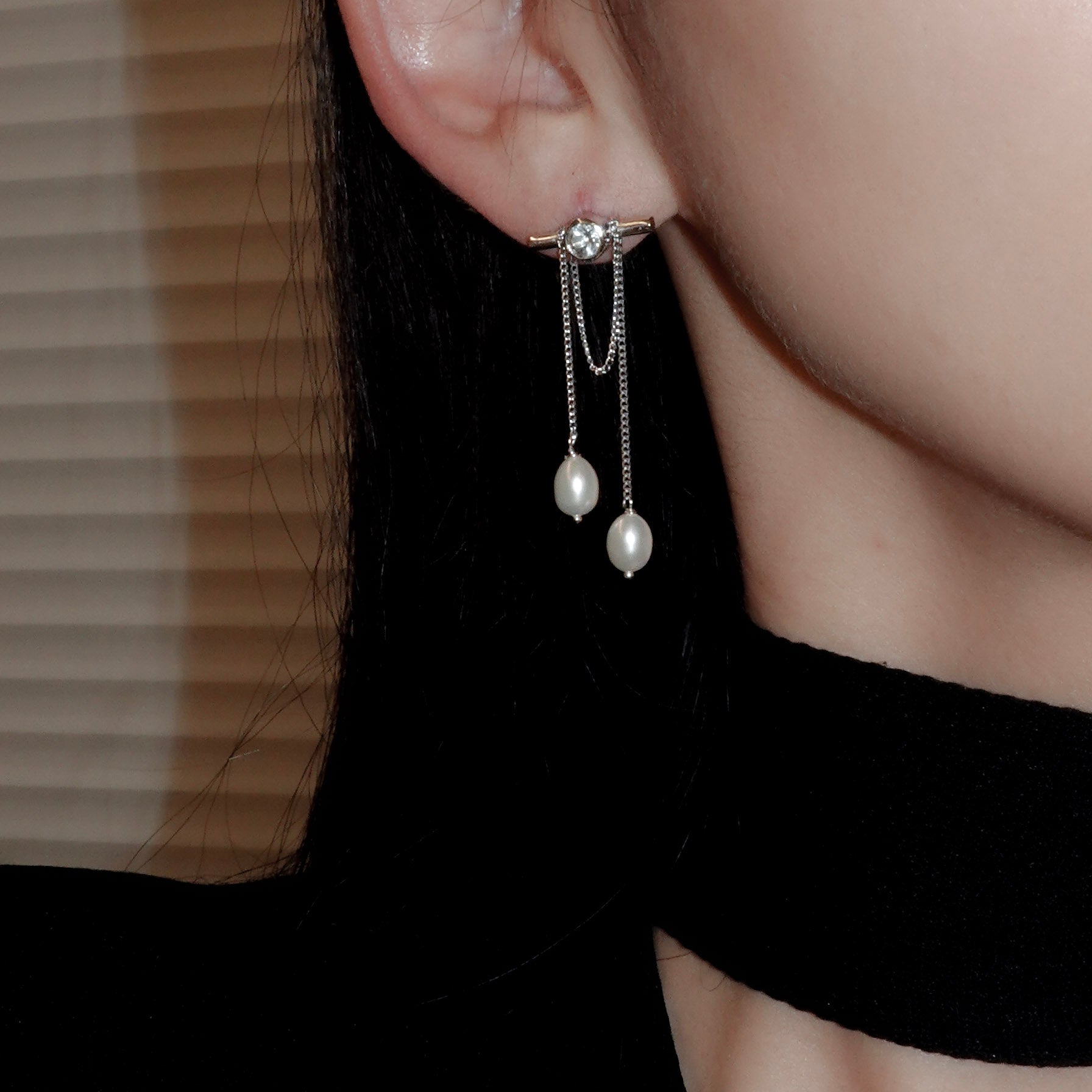 Axis earring with pearl chain