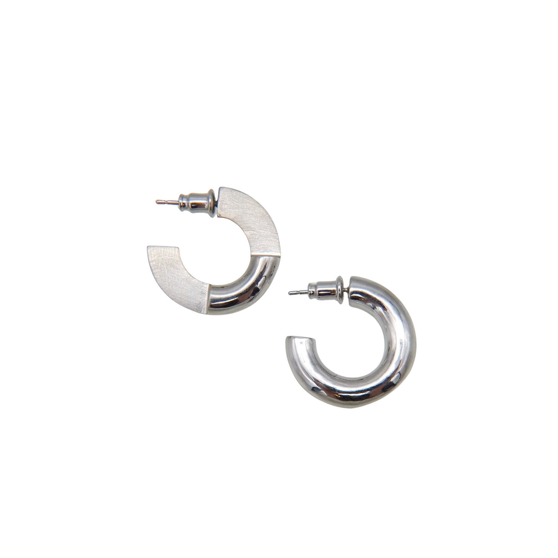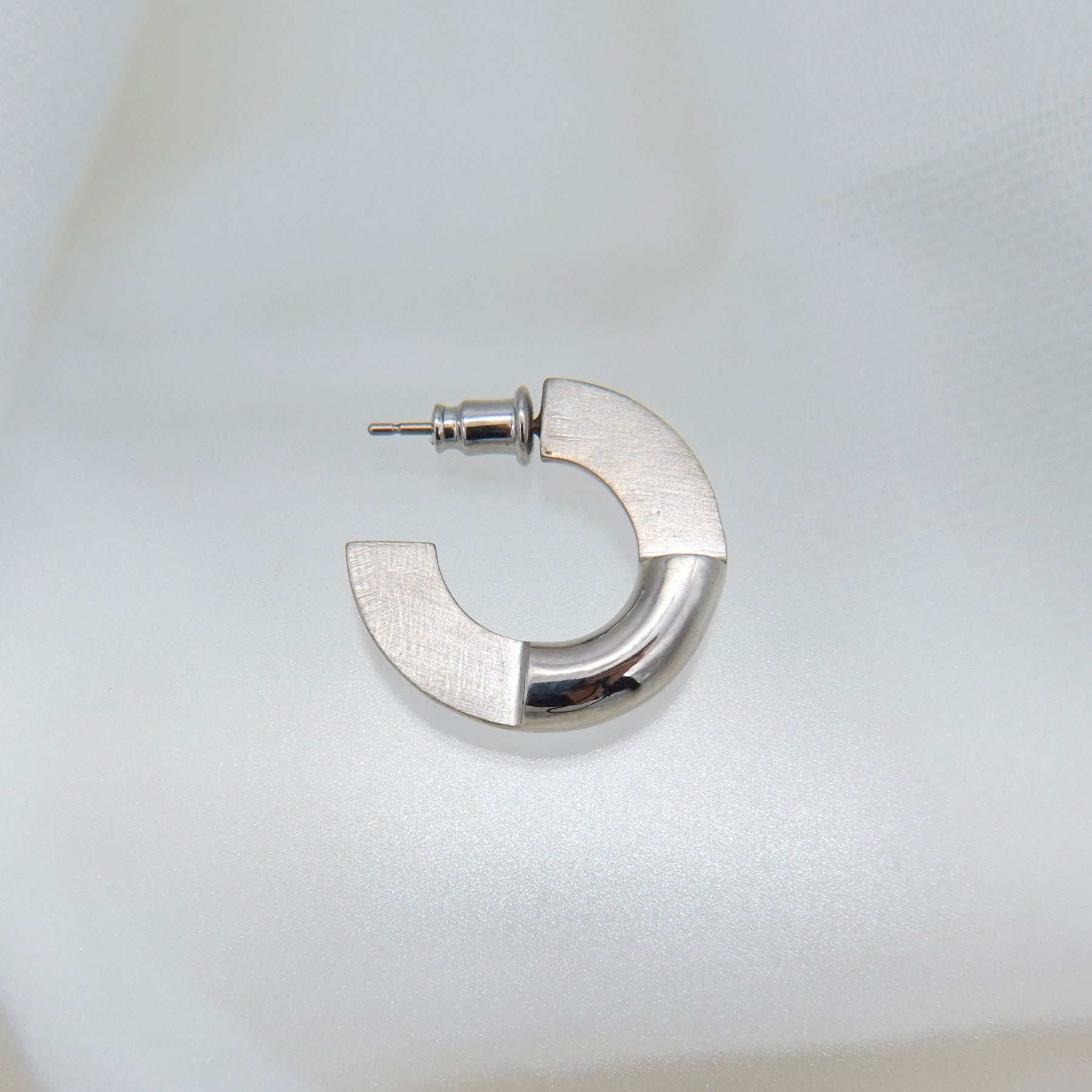 片面の一部を削りマットな質感を持たせたフープピアス。表にする面を変えていただくことで、2wayでお使いいただけます。