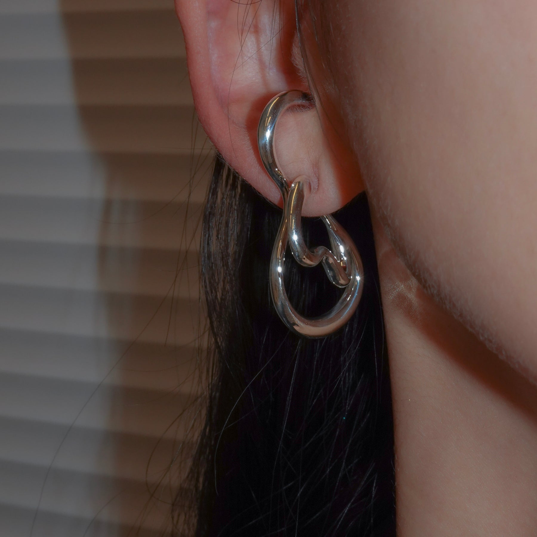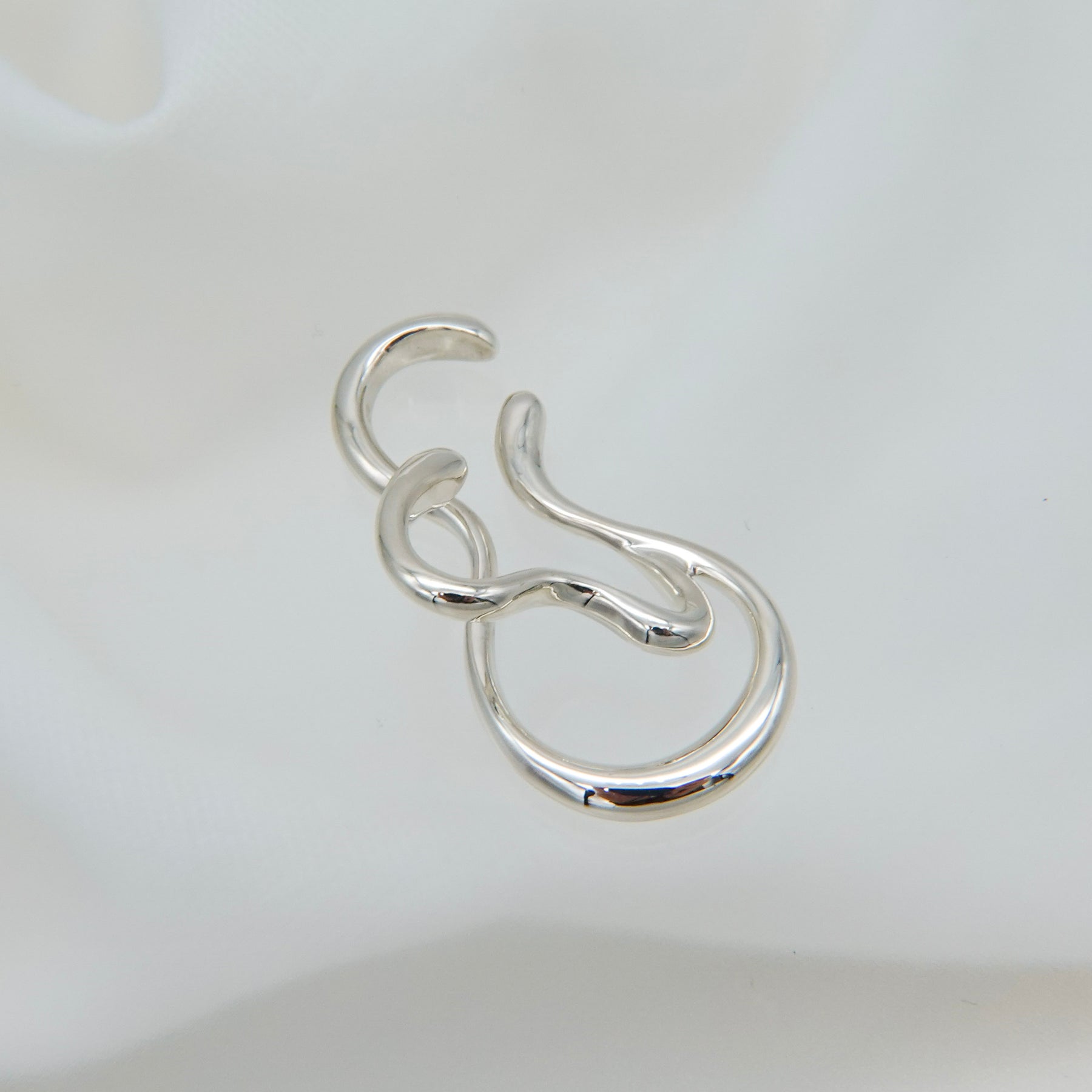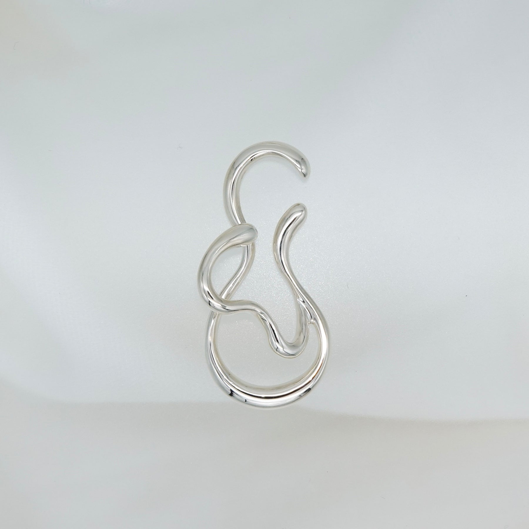 耳の輪郭に沿う縦長フォルムが印象的な、立体構造のイヤーカフです。