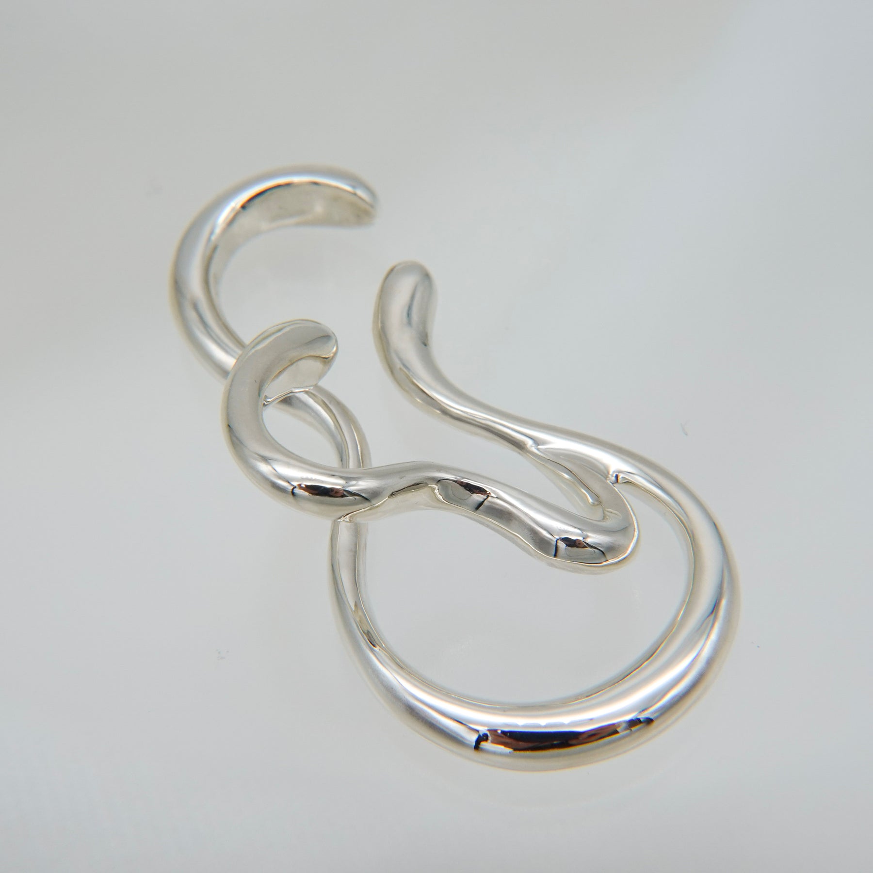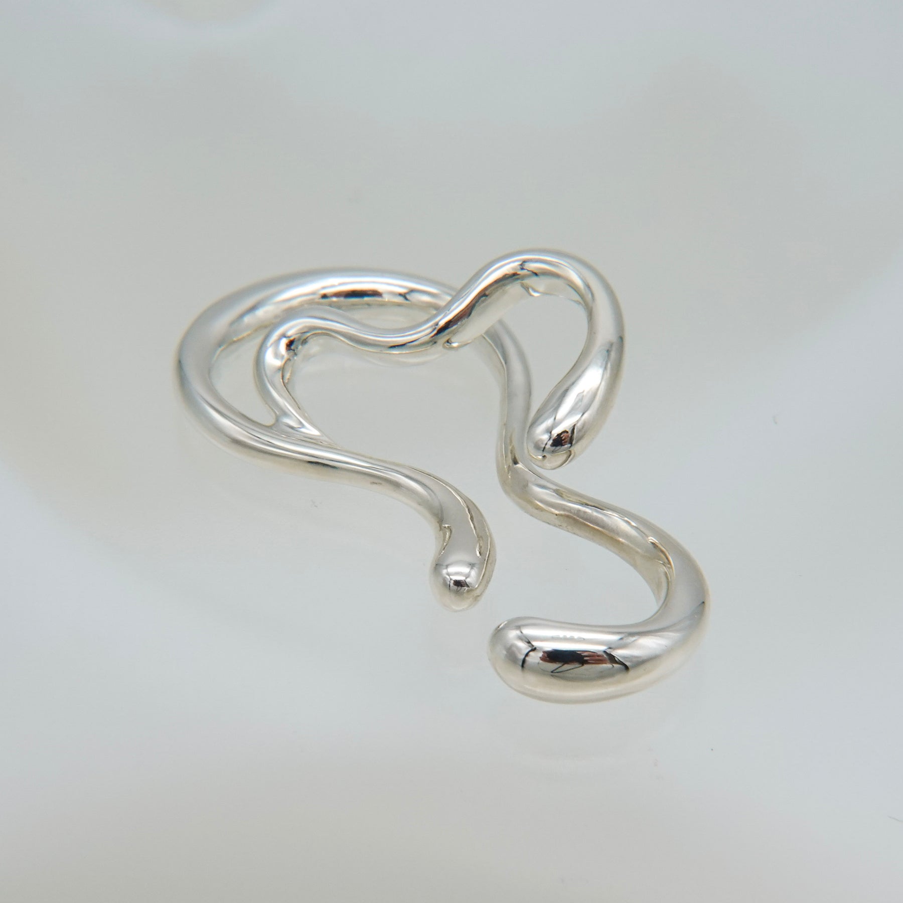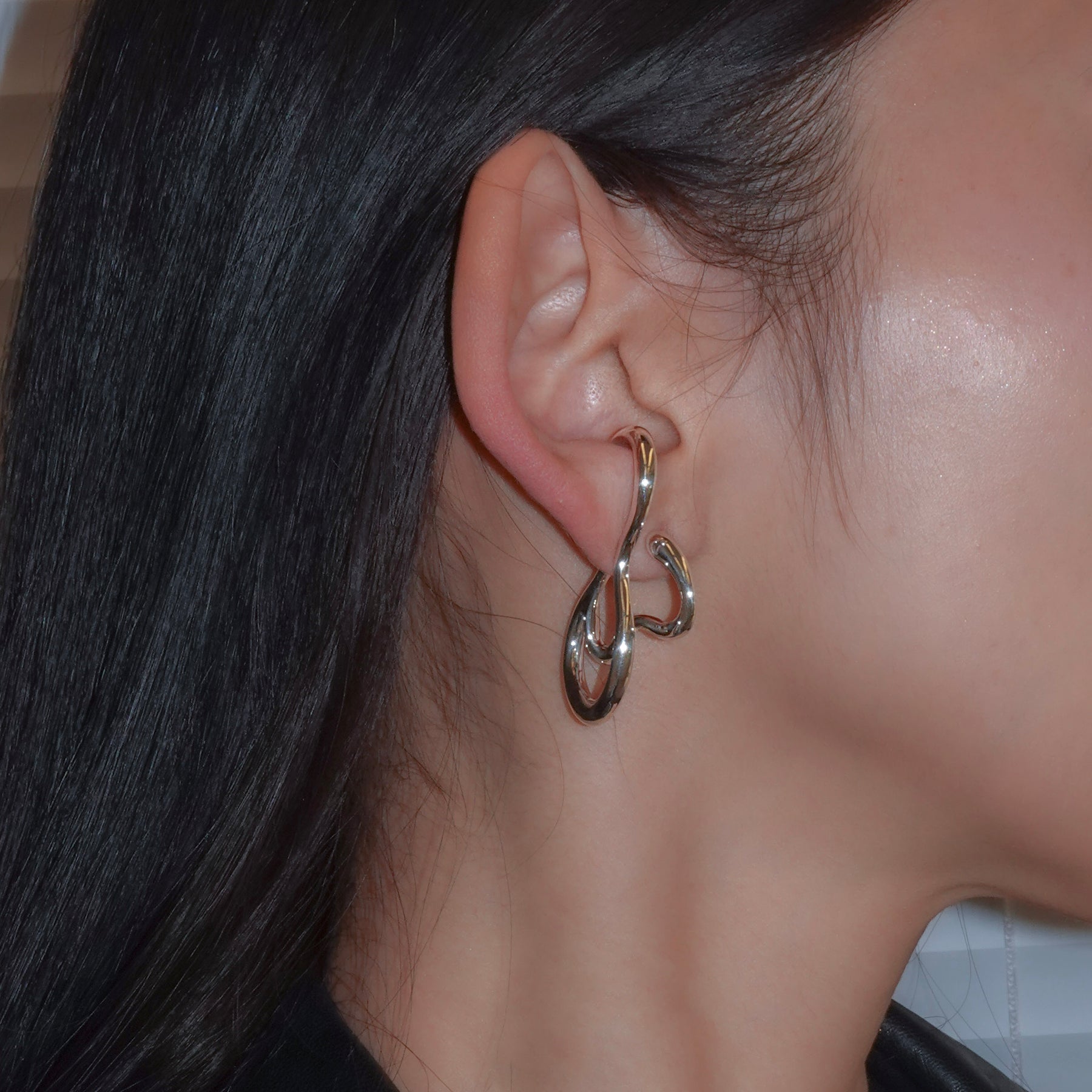 耳の輪郭に沿う縦長フォルムが印象的な、立体構造のイヤーカフです。